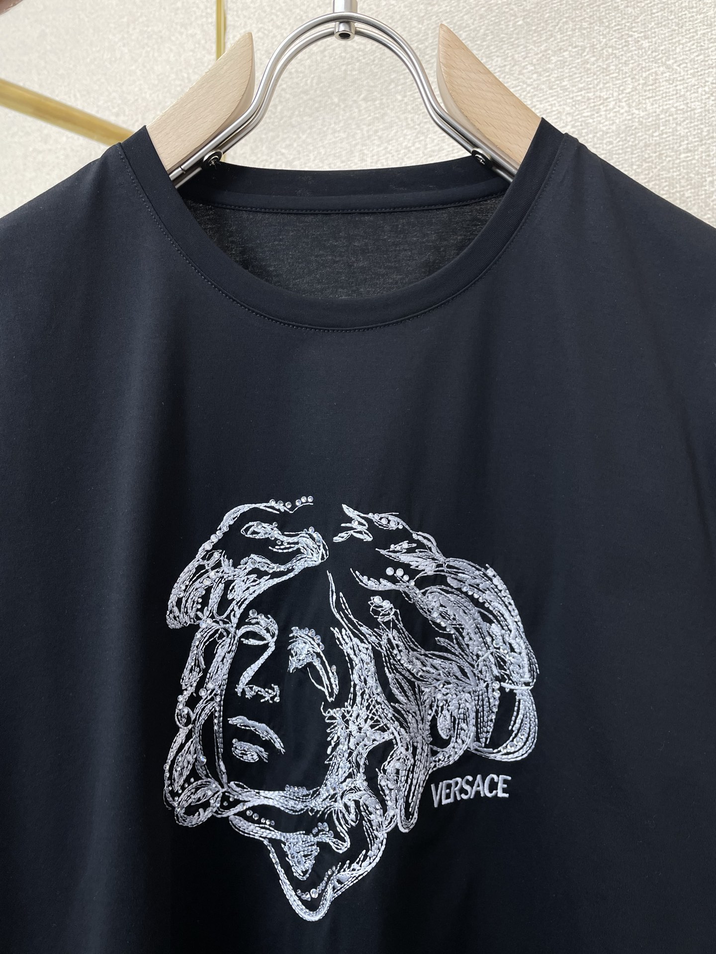 这款衣服是AAAAA 1:1 质量 (非常棒). 使用了和原版一模一样的材料. 商标部分也保持了和范思哲/Versace一样. 图片拍摄是实物衣服拍摄, 您所收到的实物保证和我们图片一模一样.