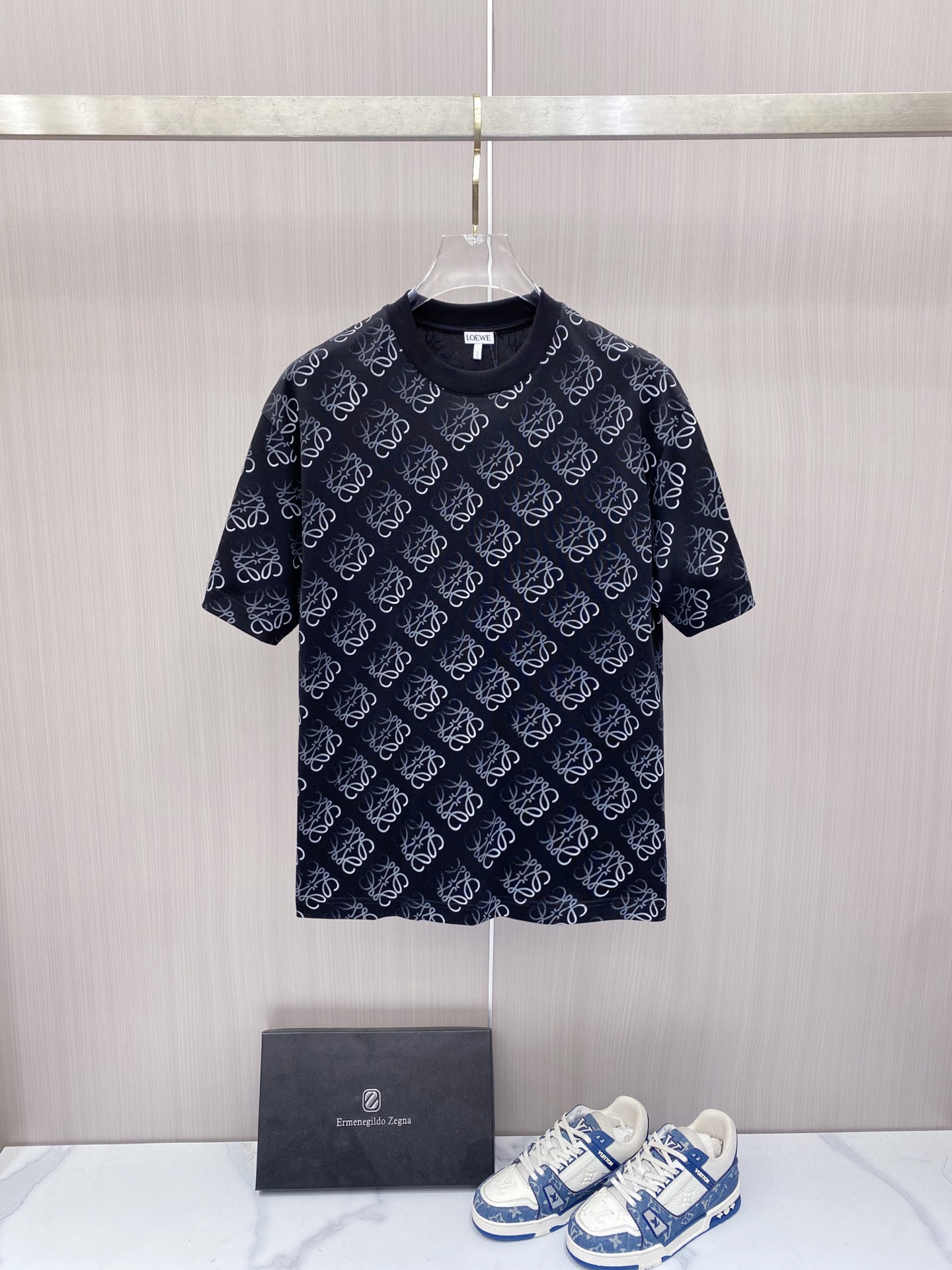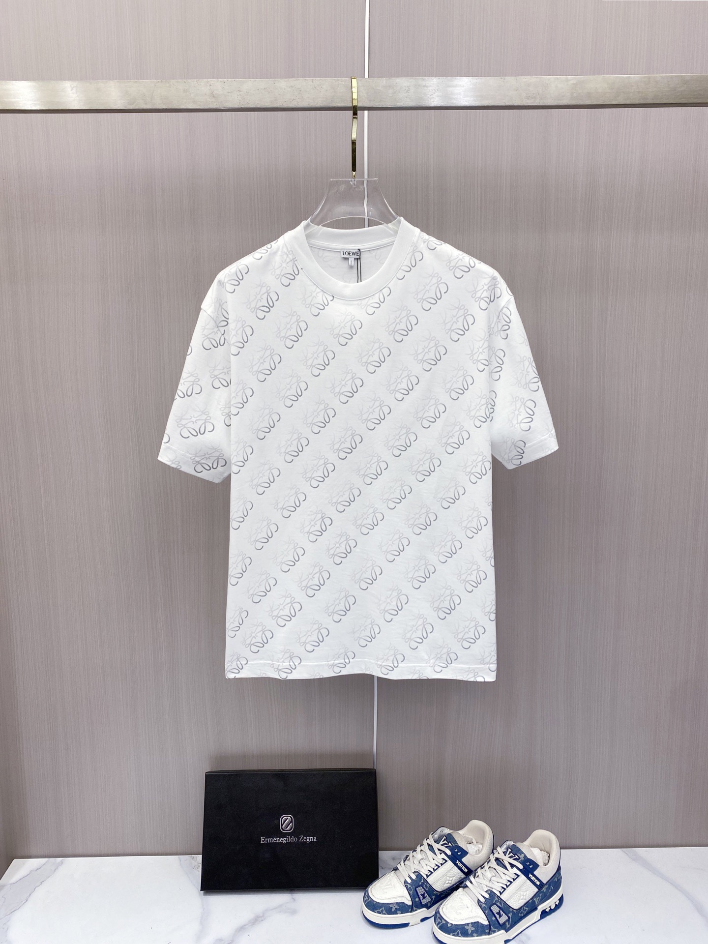 这款衣服是AAAAA 1:1 质量 (非常棒). 使用了和原版一模一样的材料. 商标部分也保持了和罗意威/Loewe一样. 图片拍摄是实物衣服拍摄, 您所收到的实物保证和我们图片一模一样.