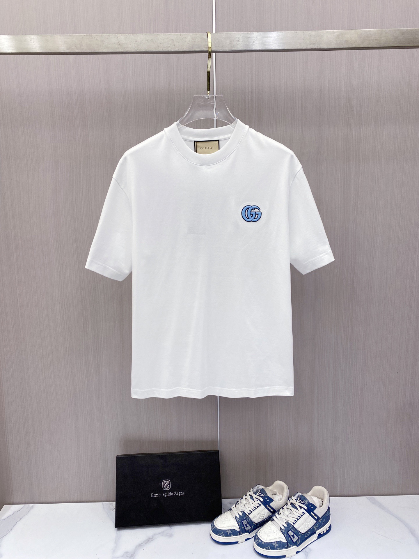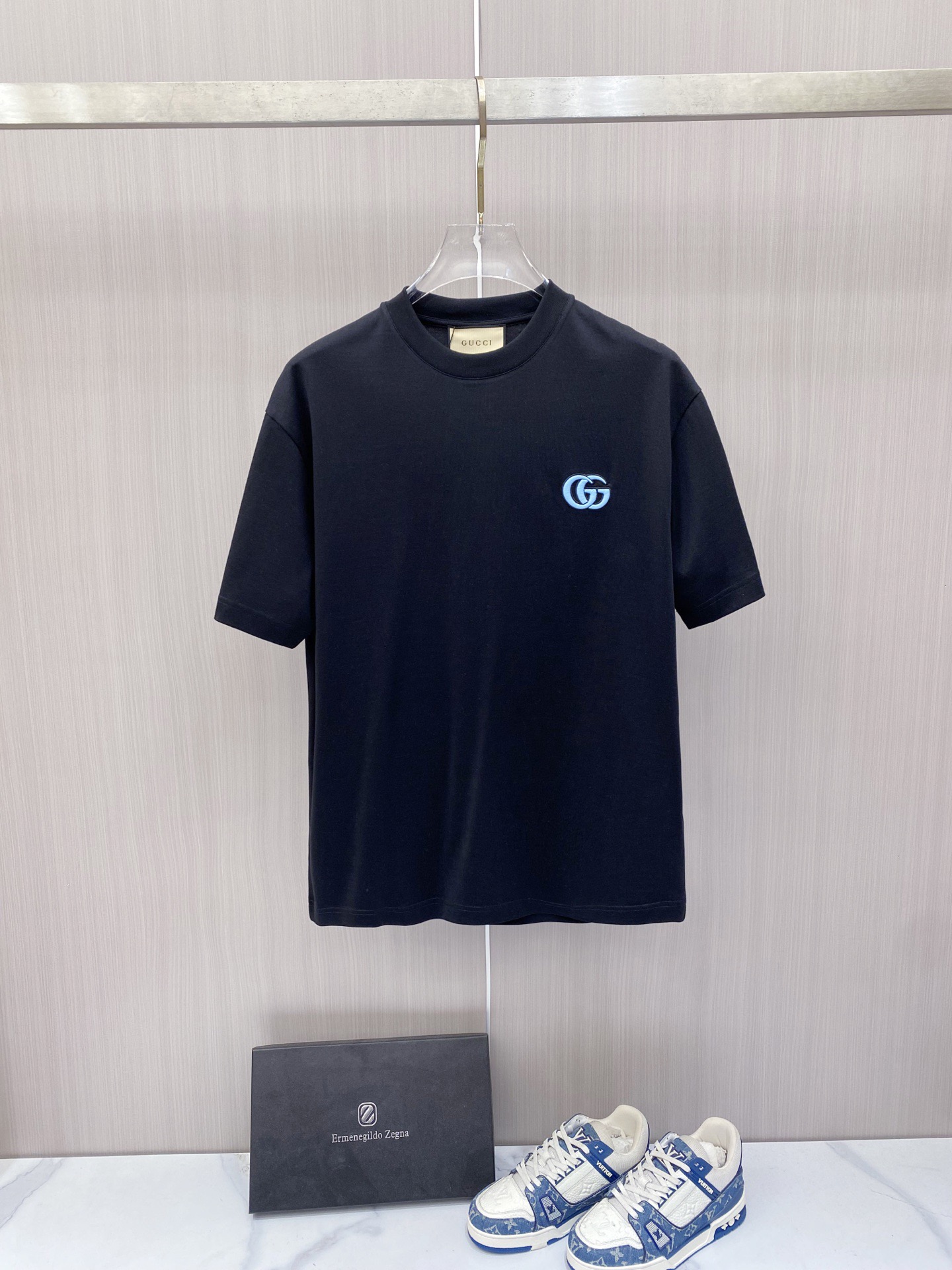 这款衣服是AAAAA 1:1 质量 (非常棒). 使用了和原版一模一样的材料. 商标部分也保持了和古奇/Gucci一样. 图片拍摄是实物衣服拍摄, 您所收到的实物保证和我们图片一模一样.