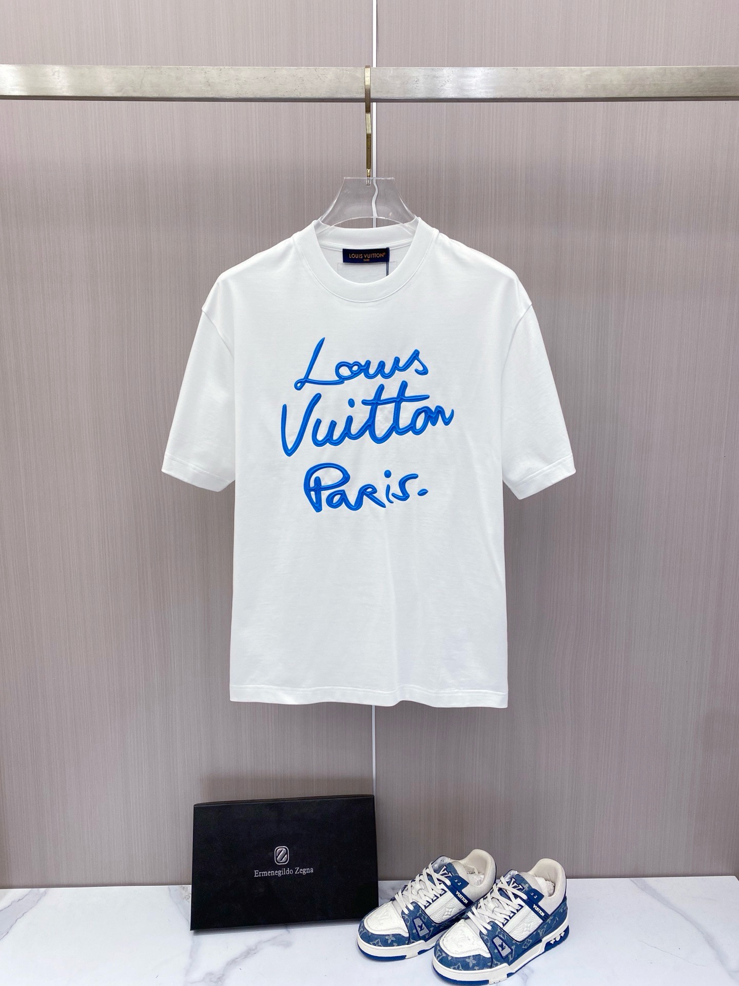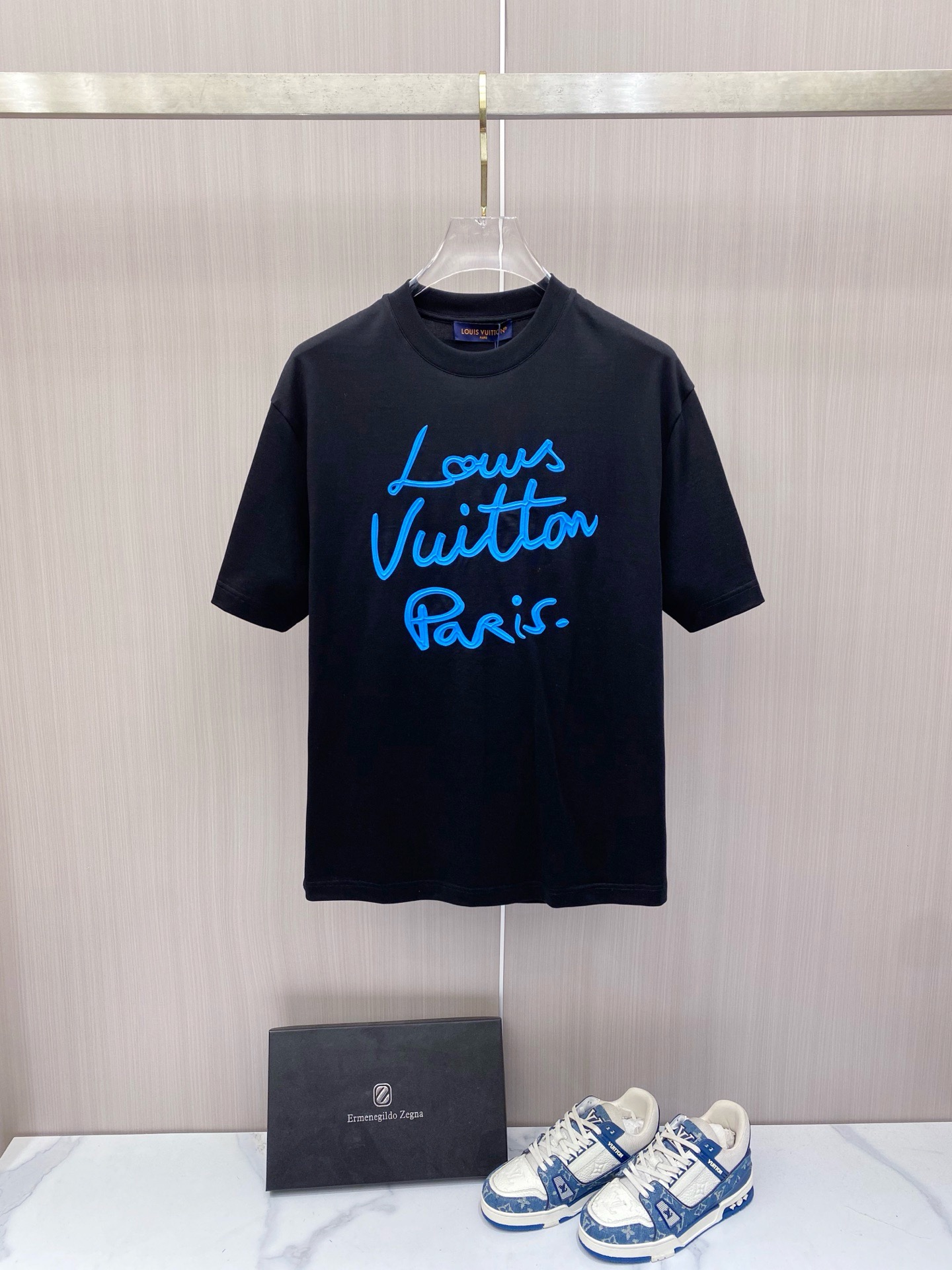 这款衣服是AAAAA 1:1 质量 (非常棒). 使用了和原版一模一样的材料. 商标部分也保持了和路易威登/Louis Vuitton一样. 图片拍摄是实物衣服拍摄, 您所收到的实物保证和我们图片一模一样.