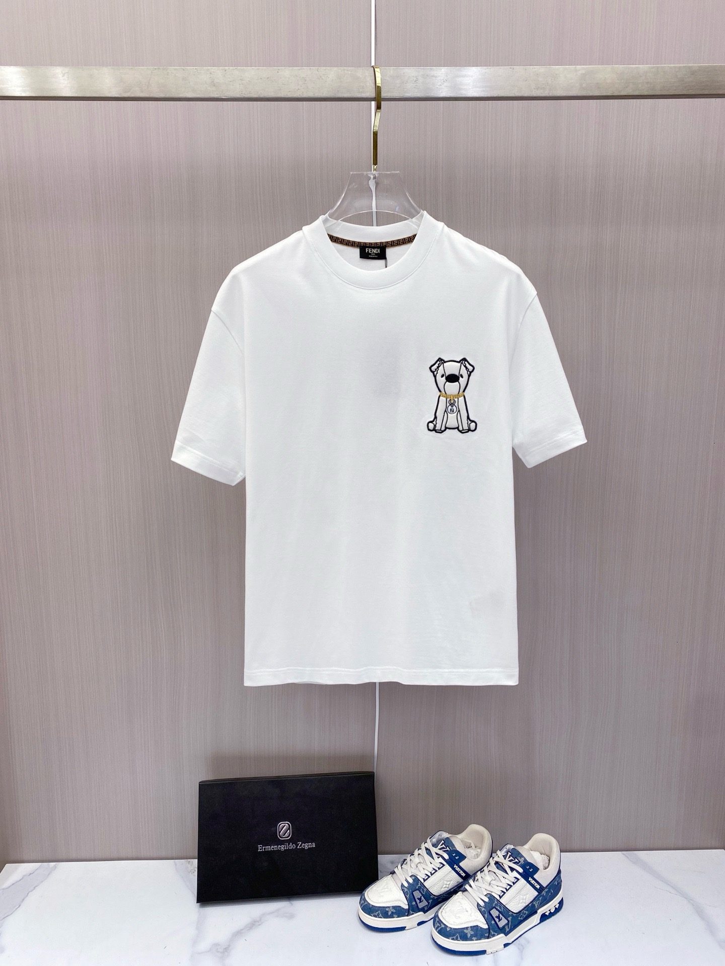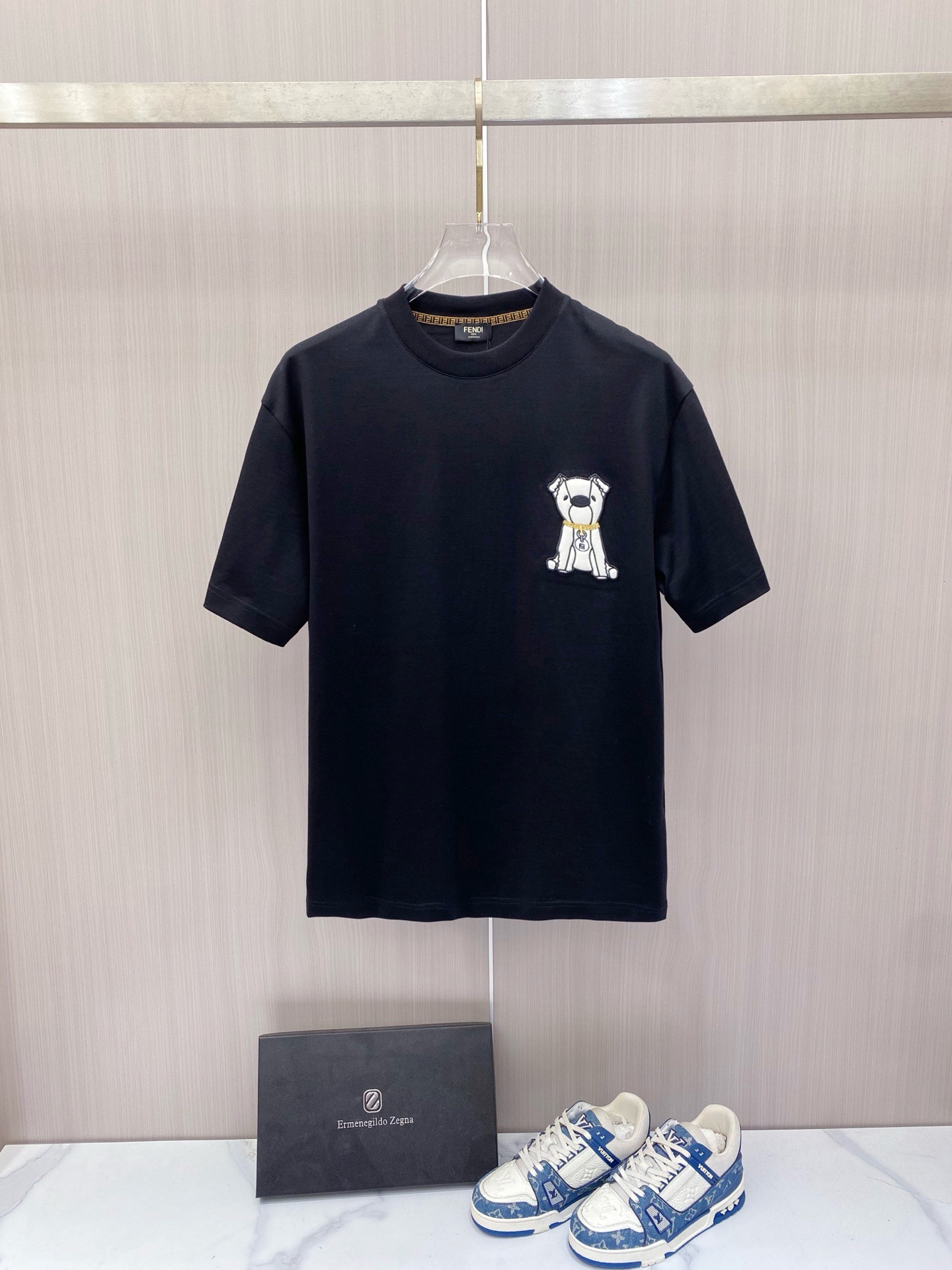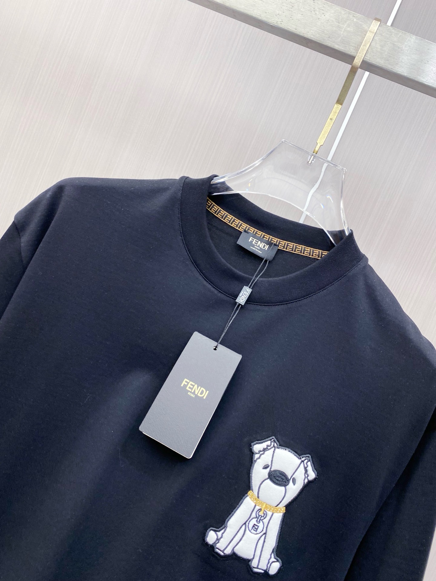 这款衣服是AAAAA 1:1 质量 (非常棒). 使用了和原版一模一样的材料. 商标部分也保持了和芬迪/Fendi一样. 图片拍摄是实物衣服拍摄, 您所收到的实物保证和我们图片一模一样.