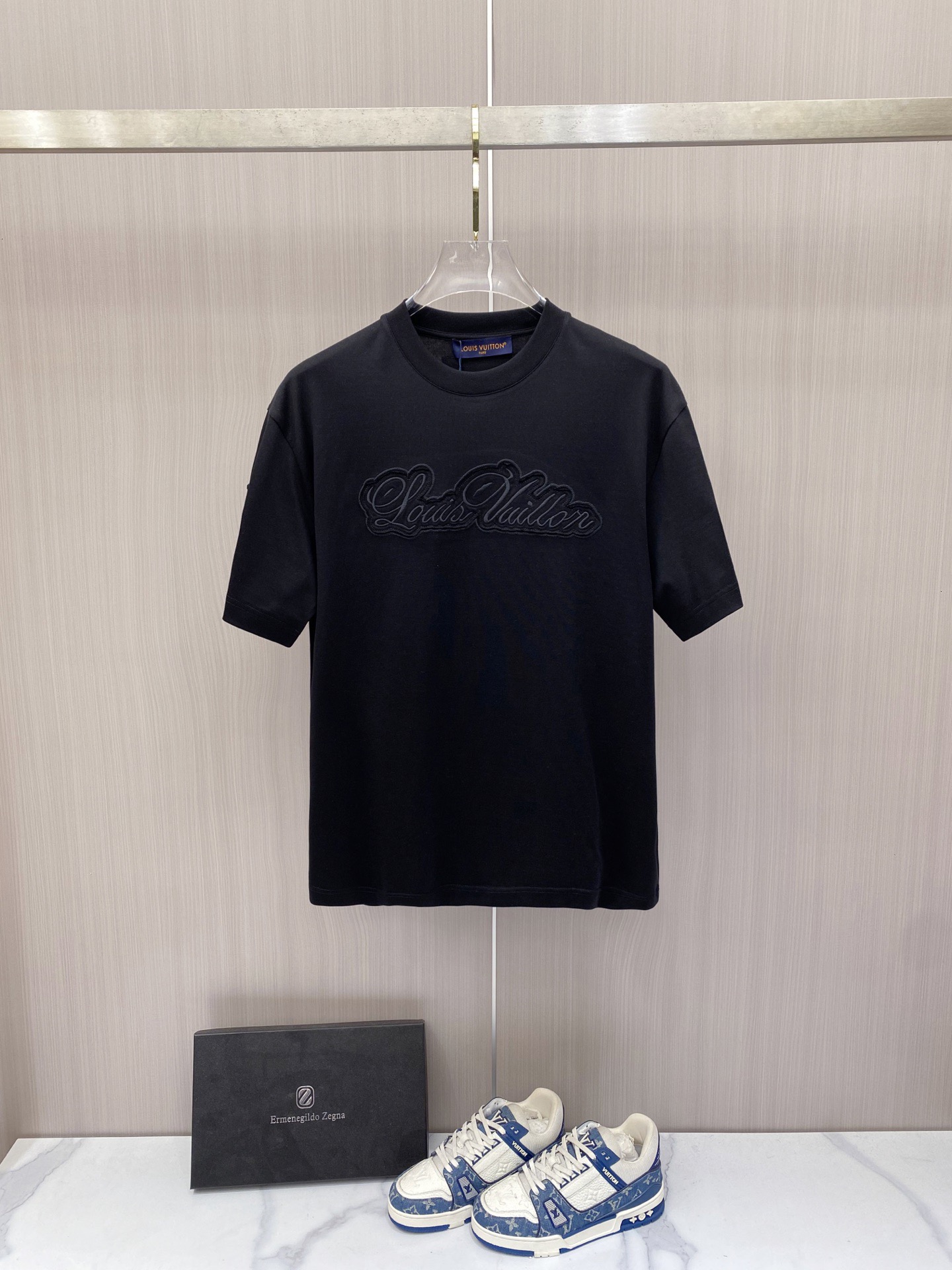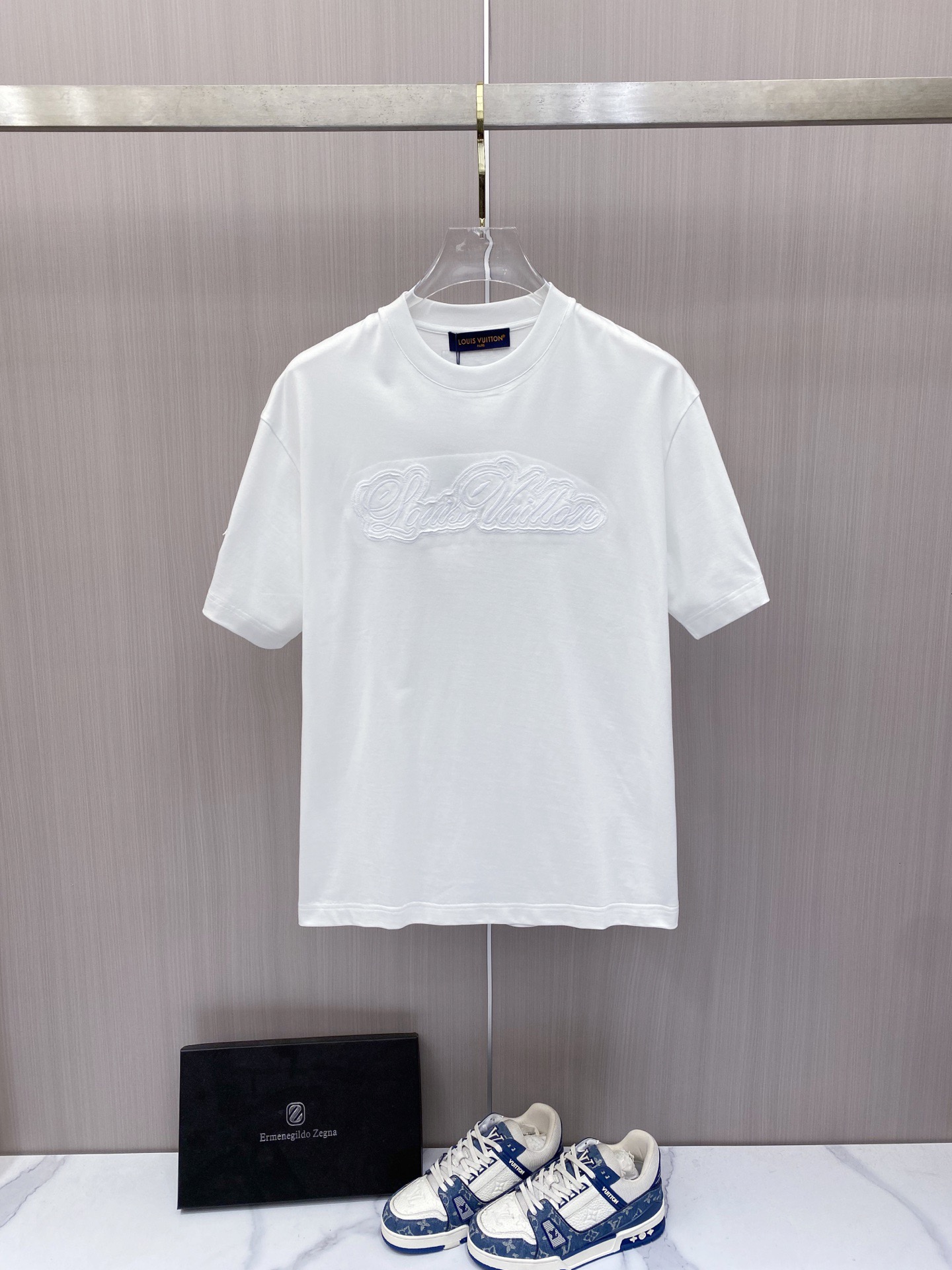 这款衣服是AAAAA 1:1 质量 (非常棒). 使用了和原版一模一样的材料. 商标部分也保持了和路易威登/Louis Vuitton一样. 图片拍摄是实物衣服拍摄, 您所收到的实物保证和我们图片一模一样.