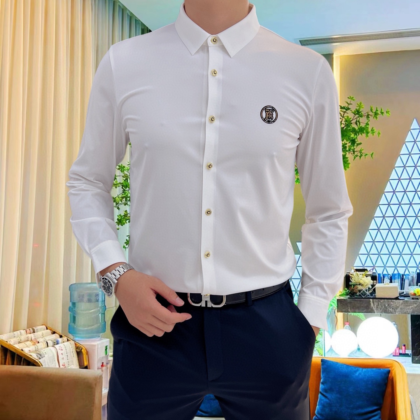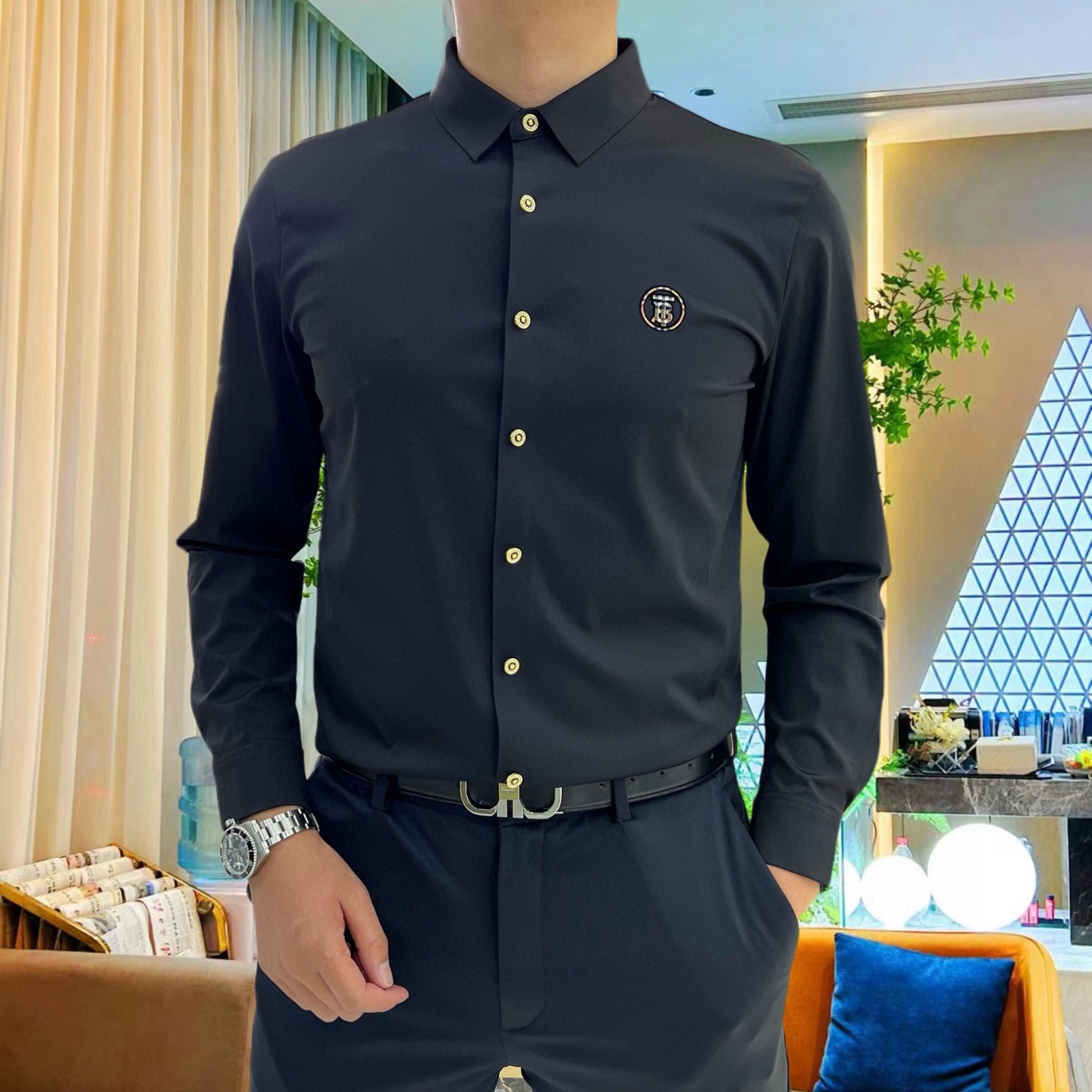 这款衣服是AAAAA 1:1 质量 (非常棒). 使用了和原版一模一样的材料. 商标部分也保持了和巴宝莉/Burberry一样. 图片拍摄是实物衣服拍摄, 您所收到的实物保证和我们图片一模一样.