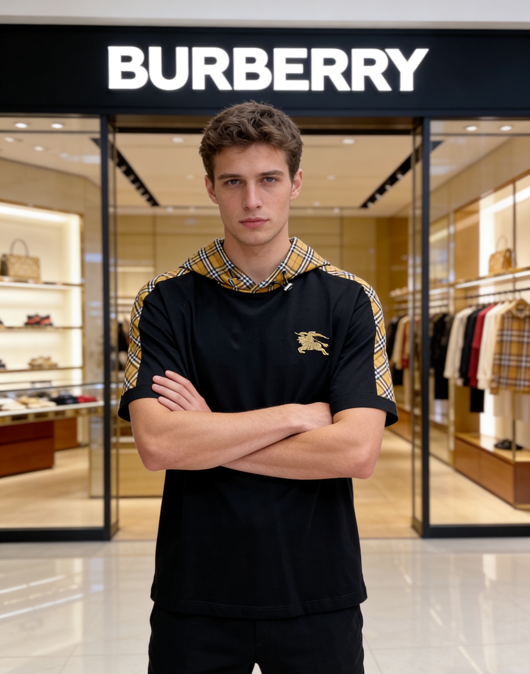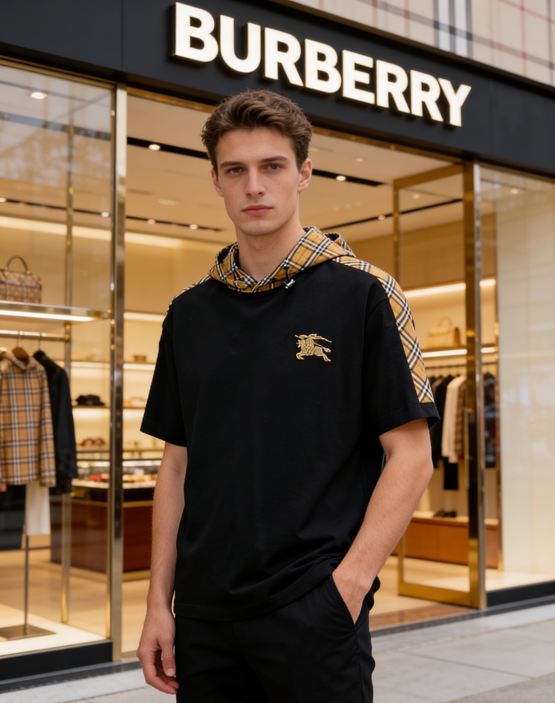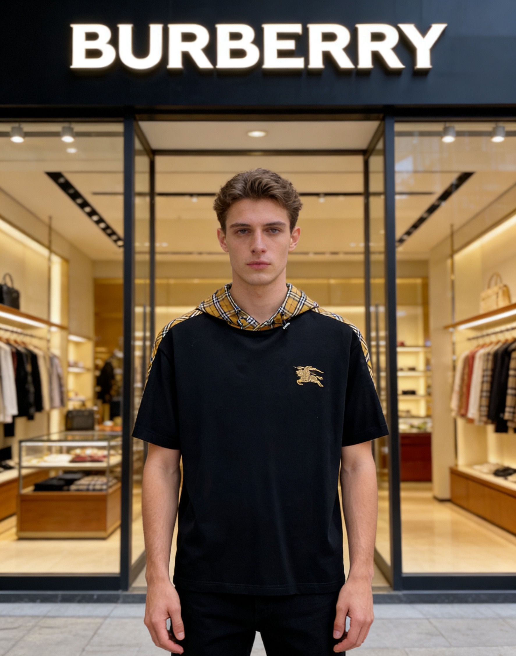 这款衣服是AAAAA 1:1 质量 (非常棒). 使用了和原版一模一样的材料. 商标部分也保持了和巴宝莉/Burberry一样. 图片拍摄是实物衣服拍摄, 您所收到的实物保证和我们图片一模一样.