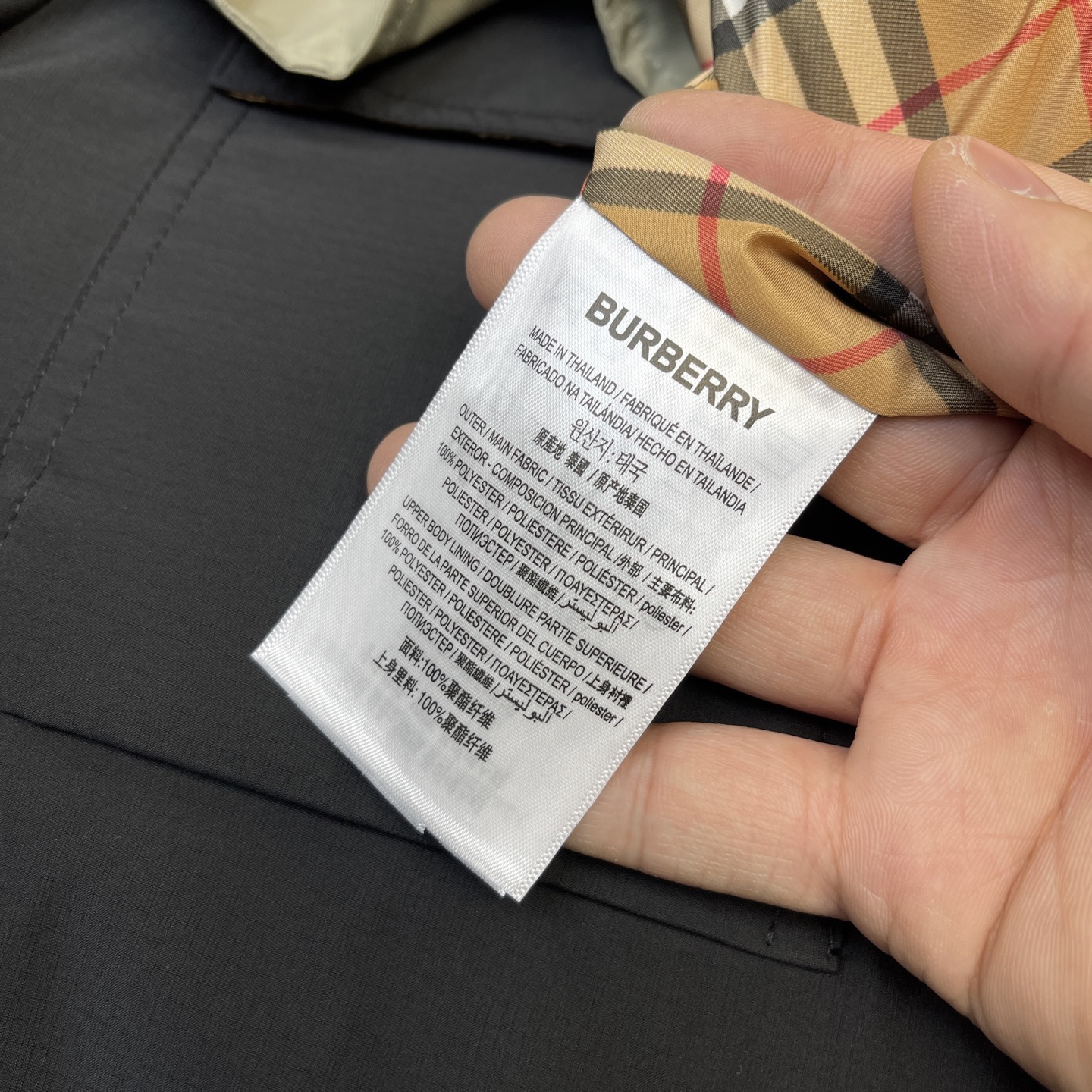 这款衣服是AAAAA 1:1 质量 (非常棒). 使用了和原版一模一样的材料. 商标部分也保持了和巴宝莉/Burberry一样. 图片拍摄是实物衣服拍摄, 您所收到的实物保证和我们图片一模一样.