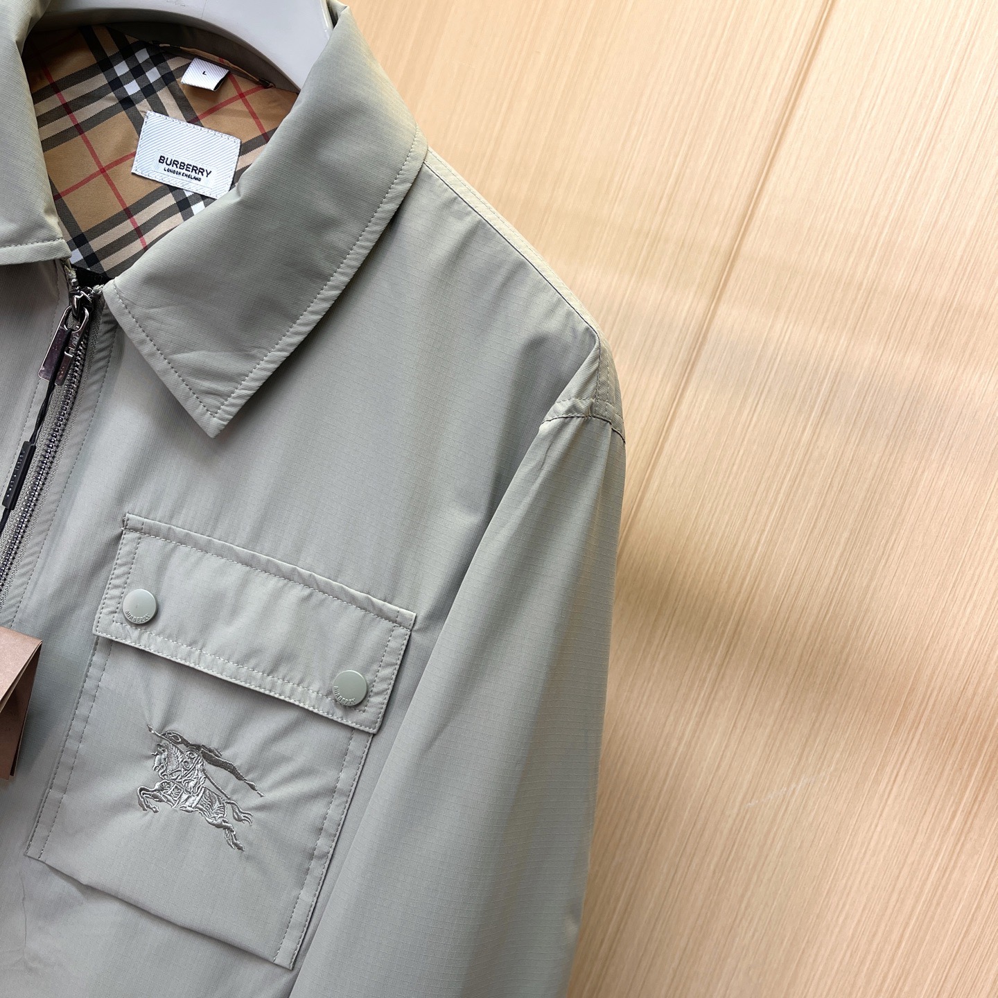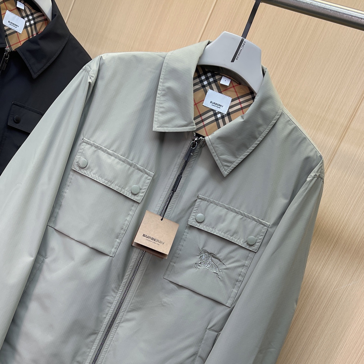 这款衣服是AAAAA 1:1 质量 (非常棒). 使用了和原版一模一样的材料. 商标部分也保持了和巴宝莉/Burberry一样. 图片拍摄是实物衣服拍摄, 您所收到的实物保证和我们图片一模一样.