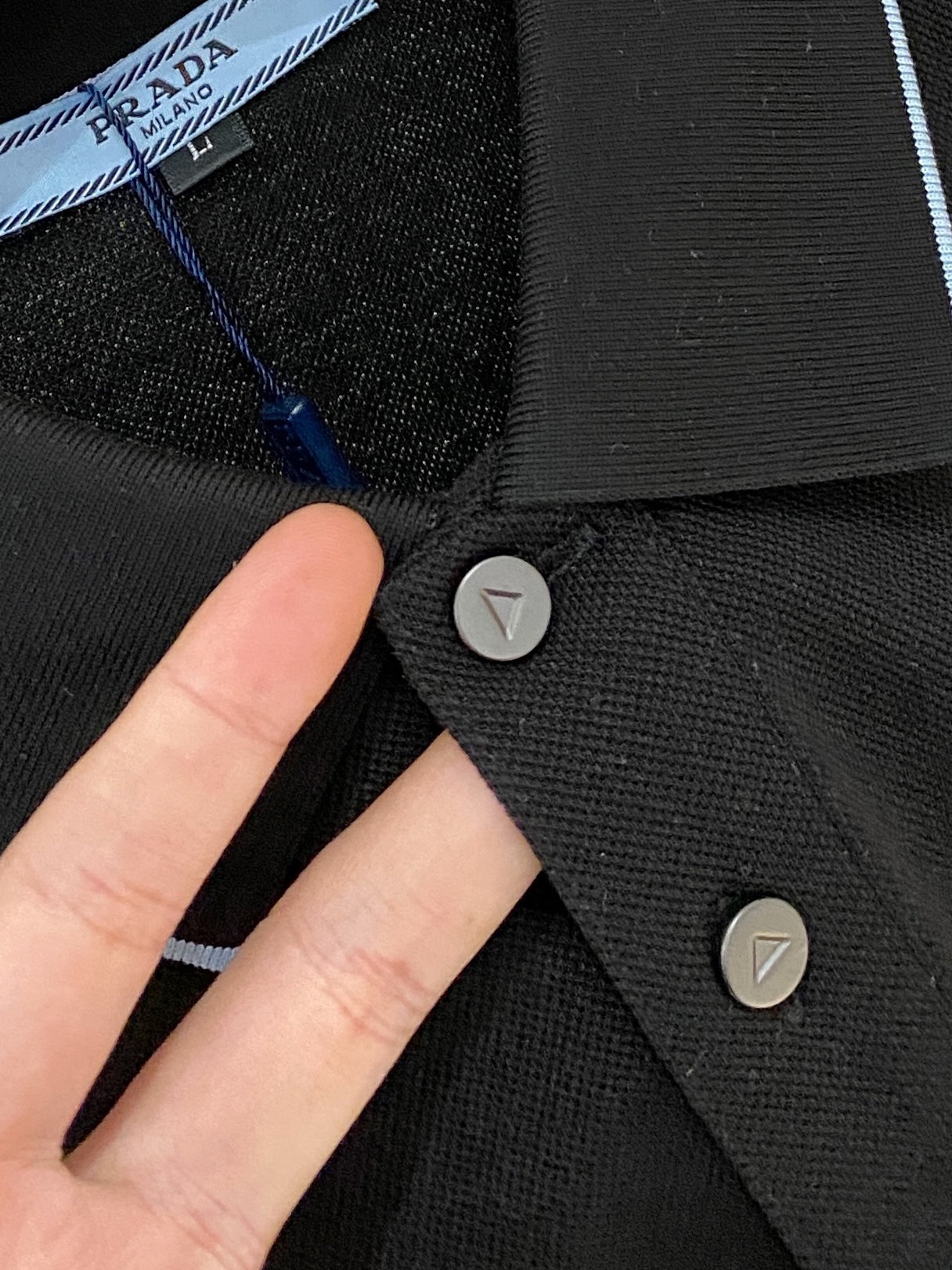这款衣服是AAAAA 1:1 质量 (非常棒). 使用了和原版一模一样的材料. 商标部分也保持了和普拉达/Prada一样. 图片拍摄是实物衣服拍摄, 您所收到的实物保证和我们图片一模一样.