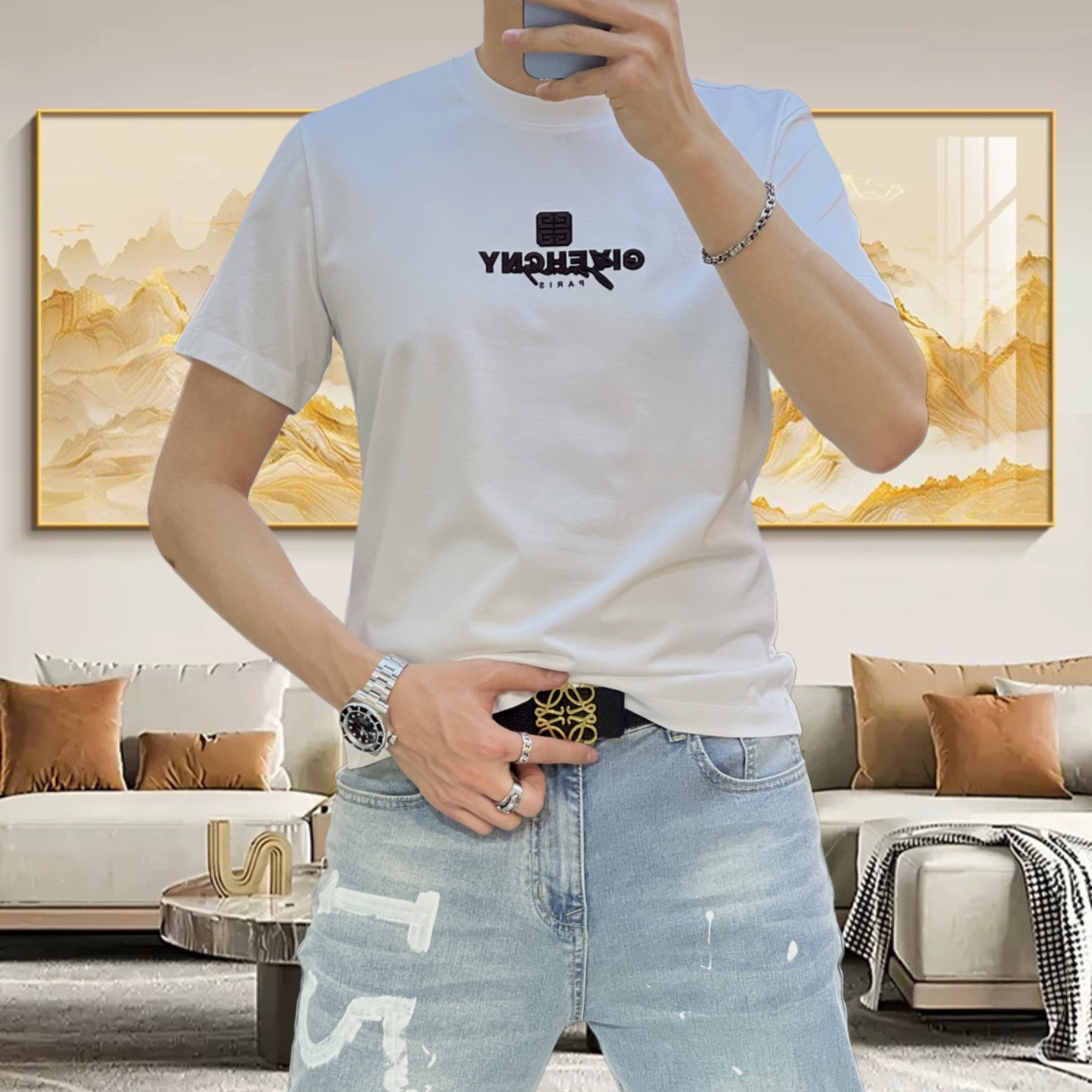 这款衣服是AAAAA 1:1 质量 (非常棒). 使用了和原版一模一样的材料. 商标部分也保持了和纪梵希/Givenchy一样. 图片拍摄是实物衣服拍摄, 您所收到的实物保证和我们图片一模一样.