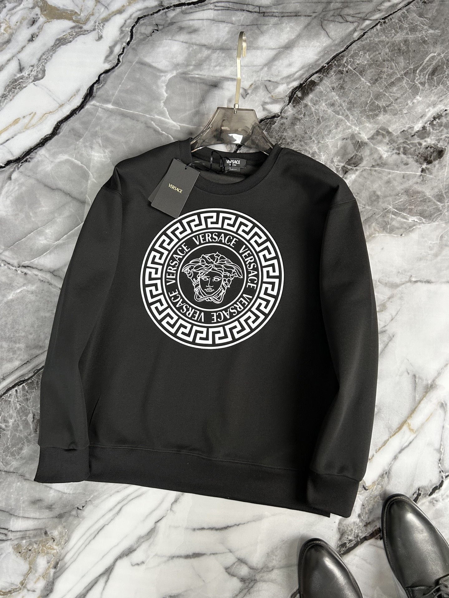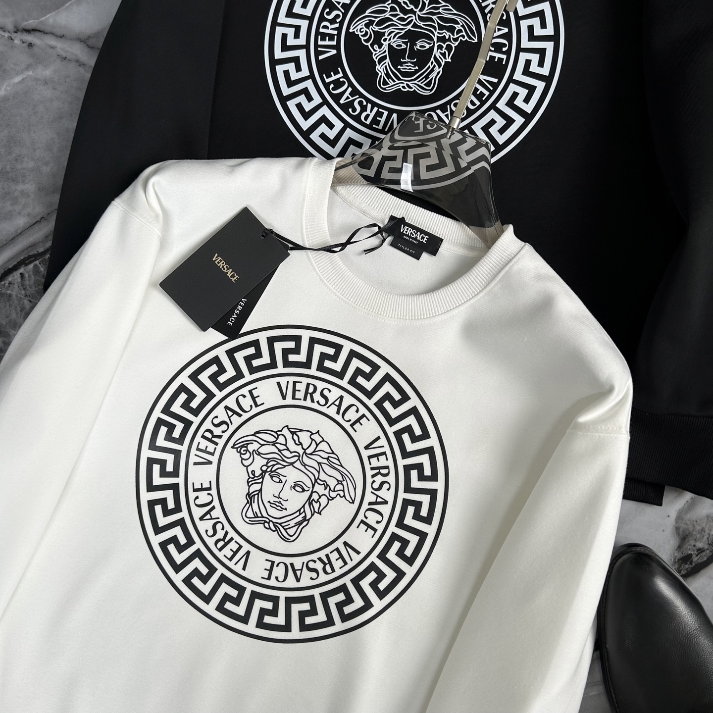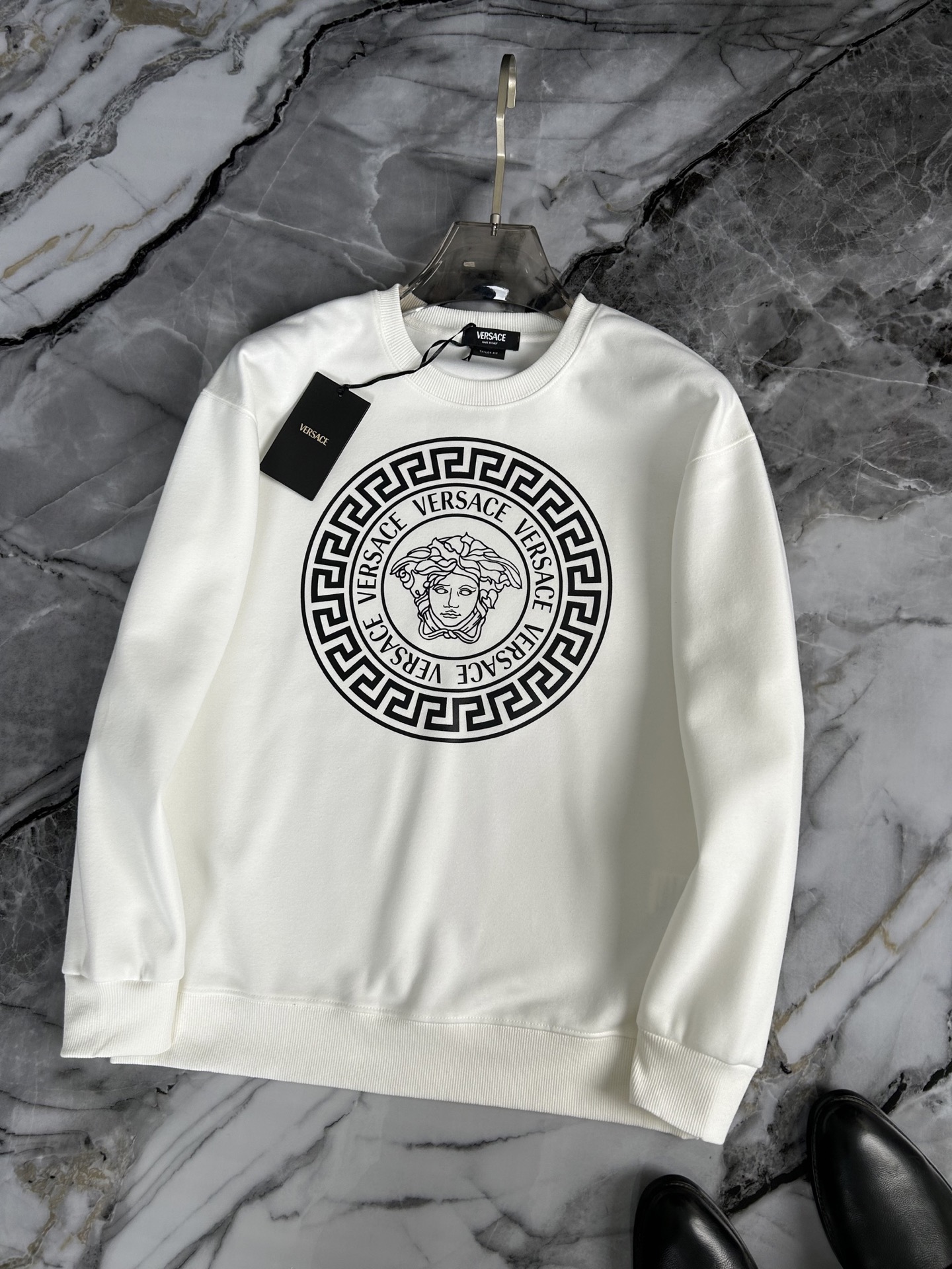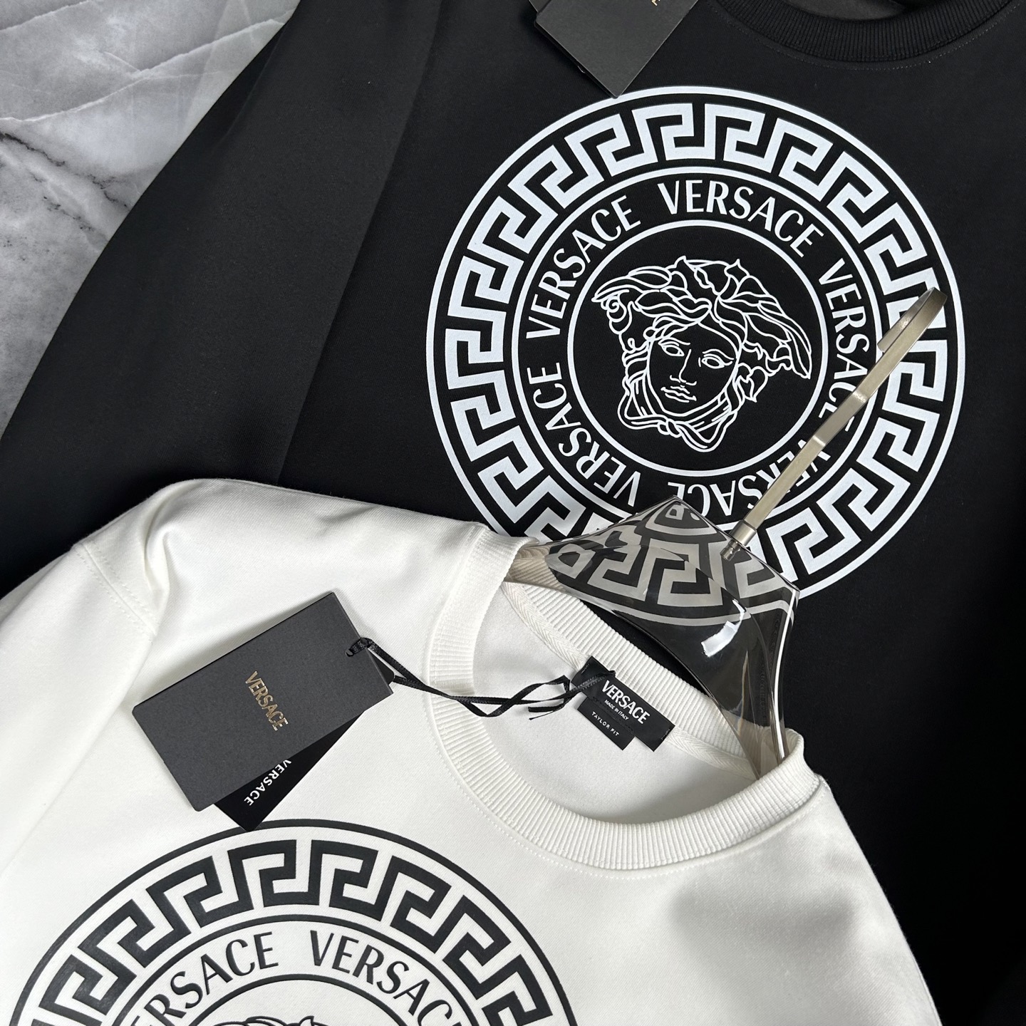 这款衣服是AAAAA 1:1 质量 (非常棒). 使用了和原版一模一样的材料. 商标部分也保持了和范思哲/Versace一样. 图片拍摄是实物衣服拍摄, 您所收到的实物保证和我们图片一模一样.