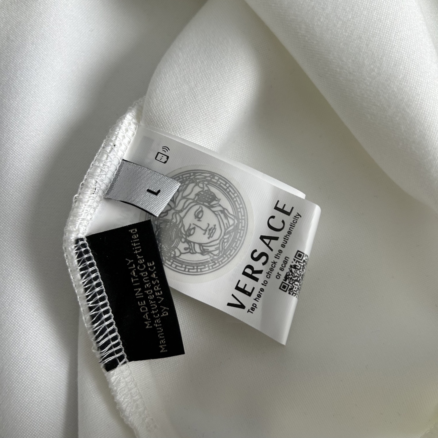 这款衣服是AAAAA 1:1 质量 (非常棒). 使用了和原版一模一样的材料. 商标部分也保持了和范思哲/Versace一样. 图片拍摄是实物衣服拍摄, 您所收到的实物保证和我们图片一模一样.