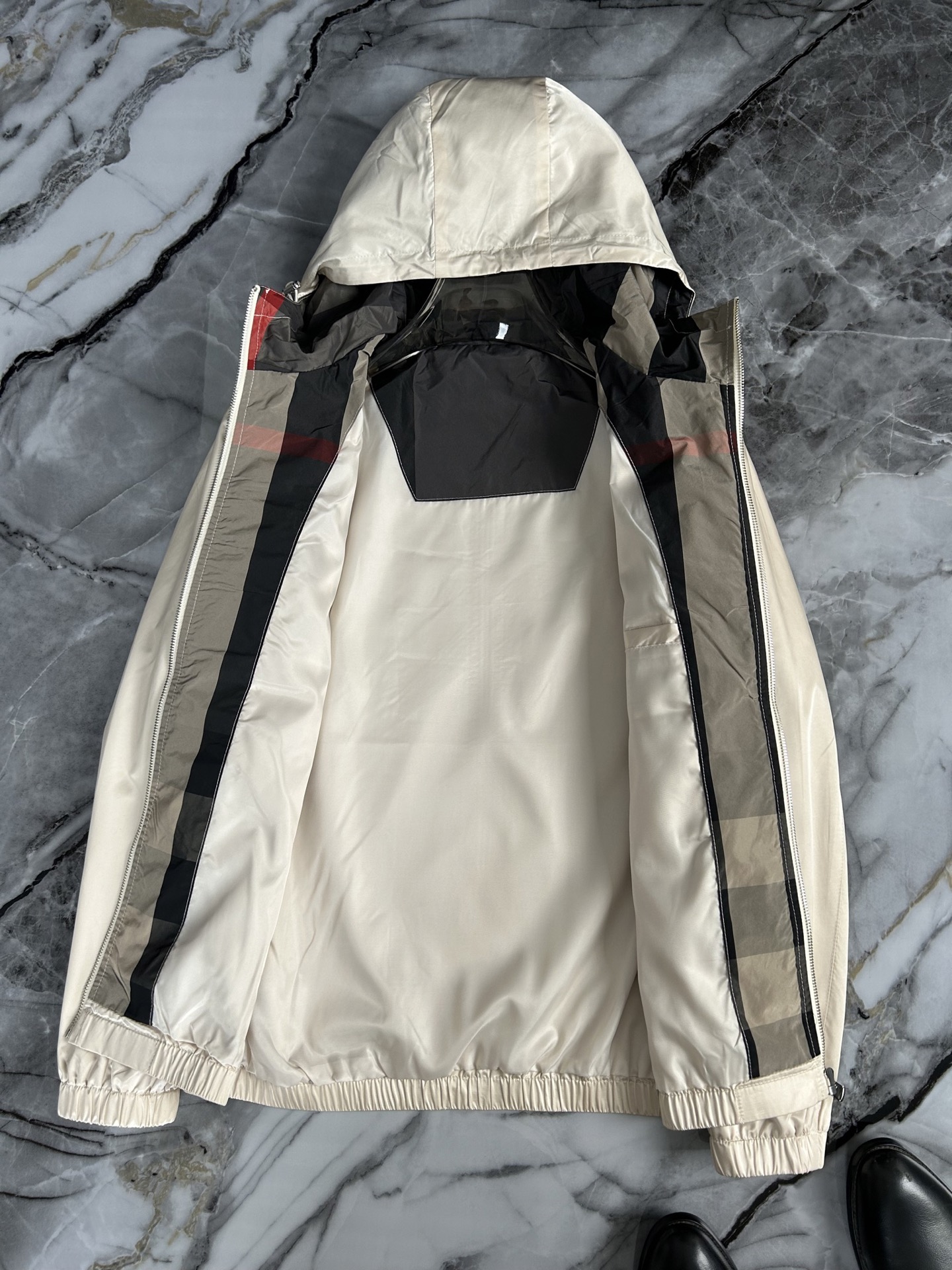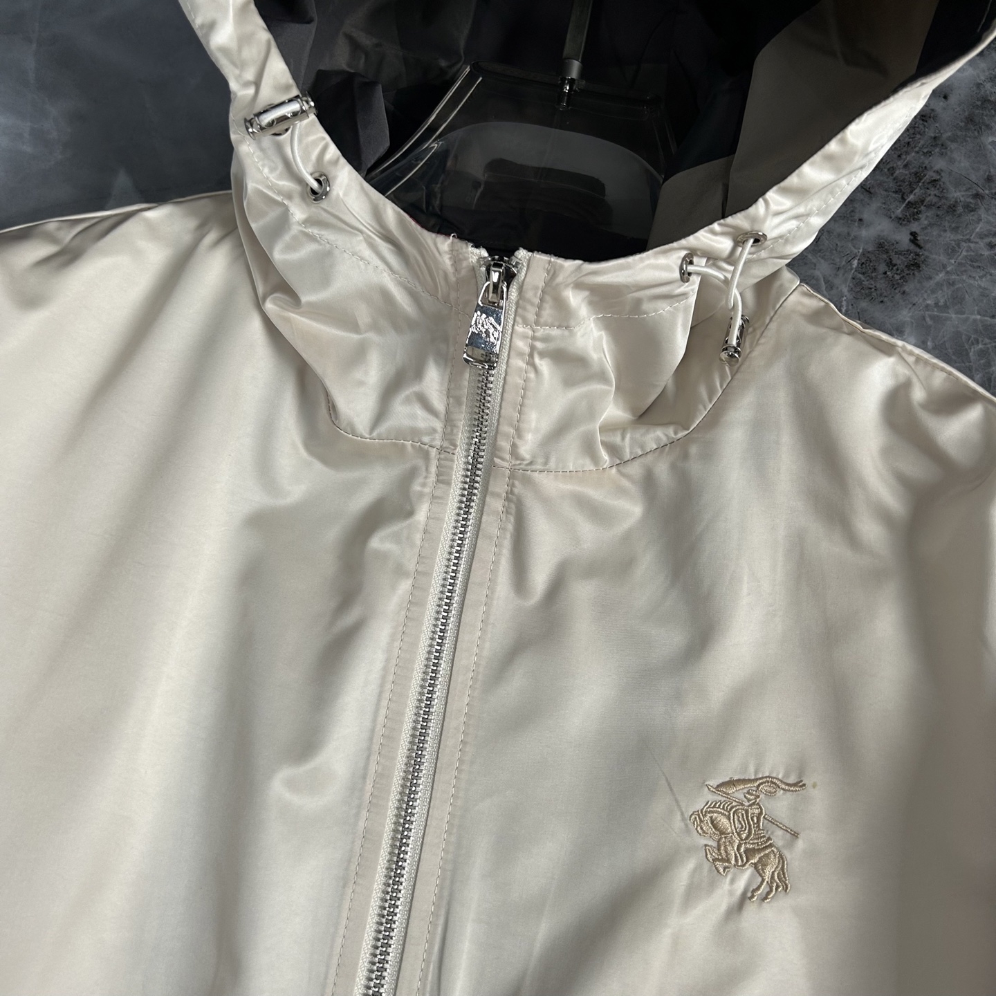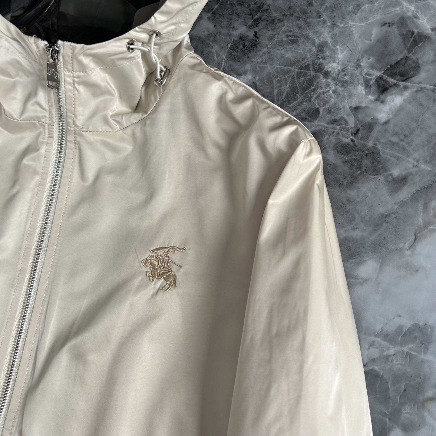 这款衣服是AAAAA 1:1 质量 (非常棒). 使用了和原版一模一样的材料. 商标部分也保持了和巴宝莉/Burberry一样. 图片拍摄是实物衣服拍摄, 您所收到的实物保证和我们图片一模一样.