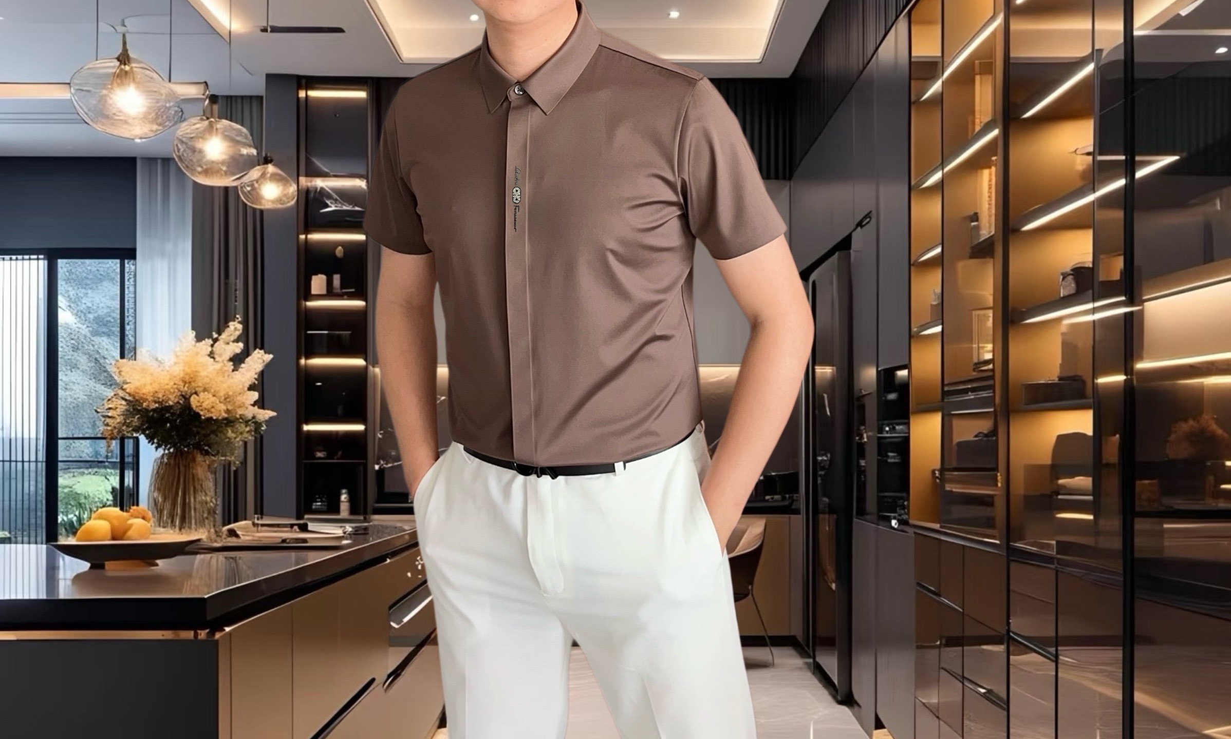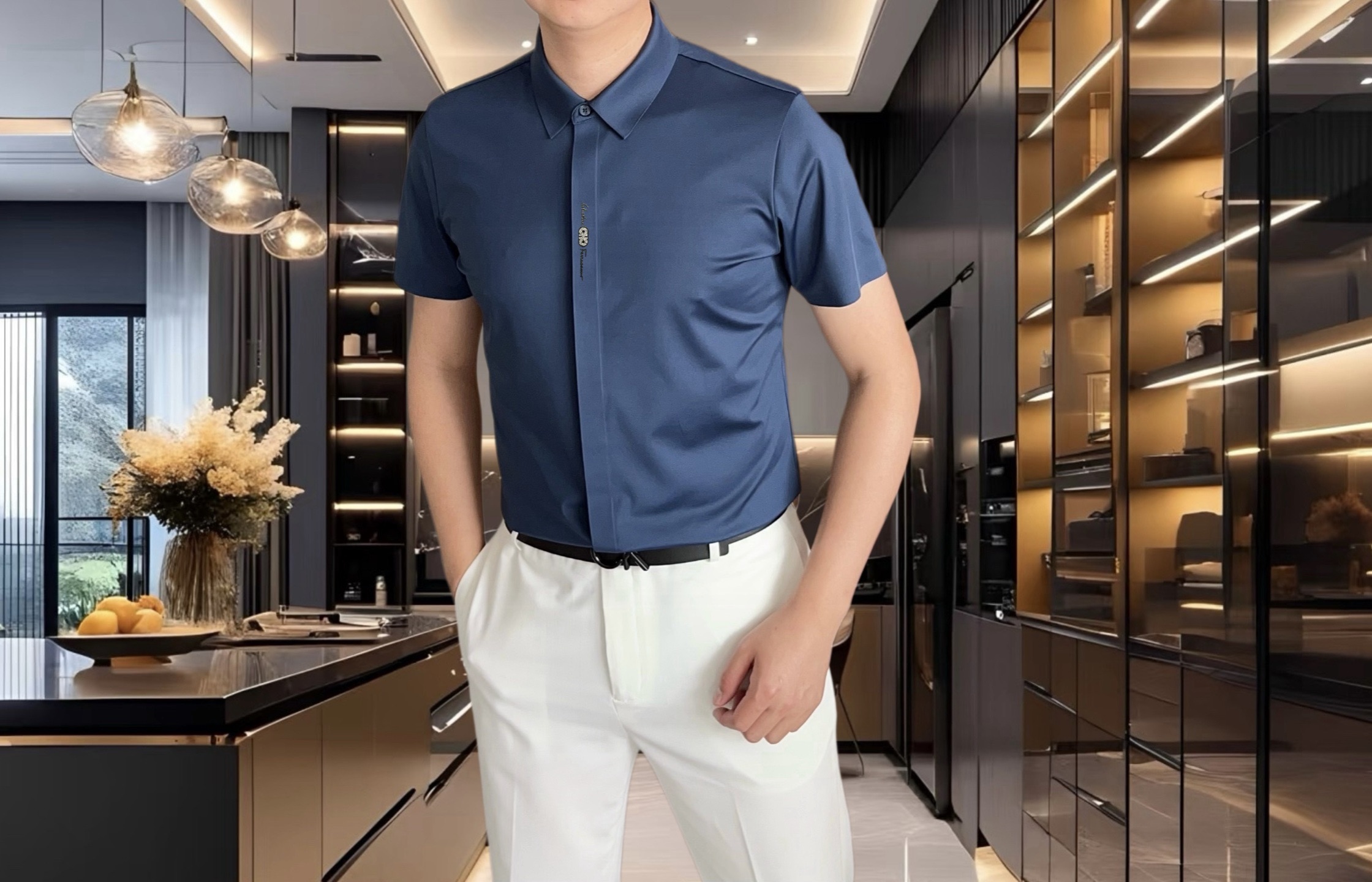 这款衣服是AAAAA 1:1 质量 (非常棒). 使用了和原版一模一样的材料. 商标部分也保持了和菲拉格慕/Salvatore Ferragamo一样. 图片拍摄是实物衣服拍摄, 您所收到的实物保证和我们图片一模一样.
