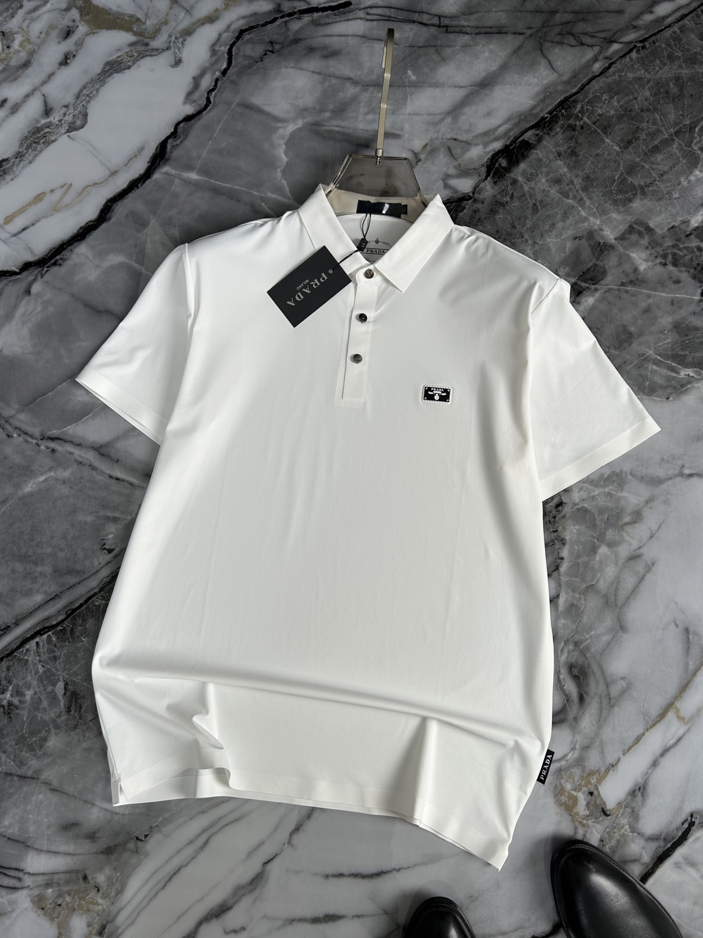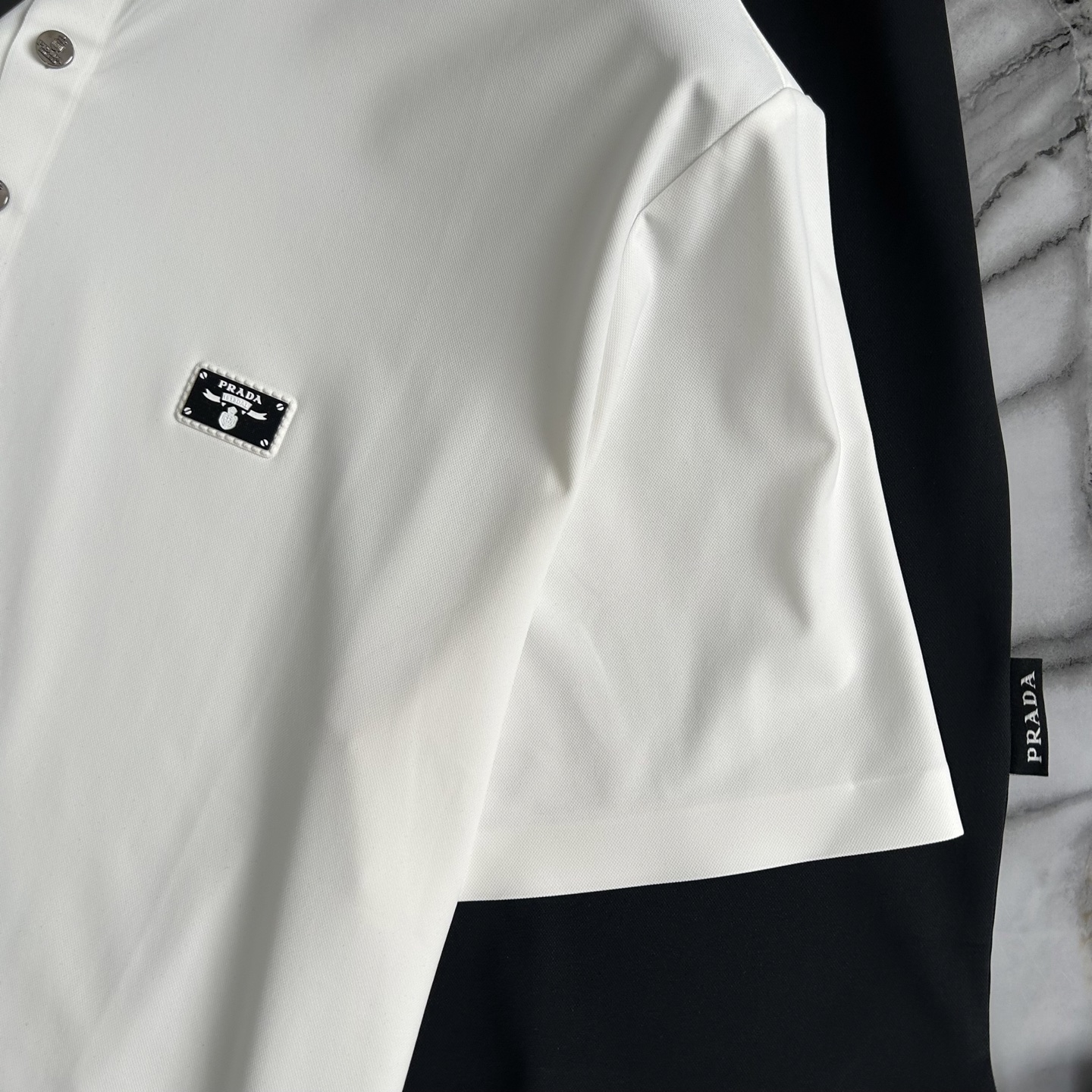 这款衣服是AAAAA 1:1 质量 (非常棒). 使用了和原版一模一样的材料. 商标部分也保持了和普拉达/Prada一样. 图片拍摄是实物衣服拍摄, 您所收到的实物保证和我们图片一模一样.