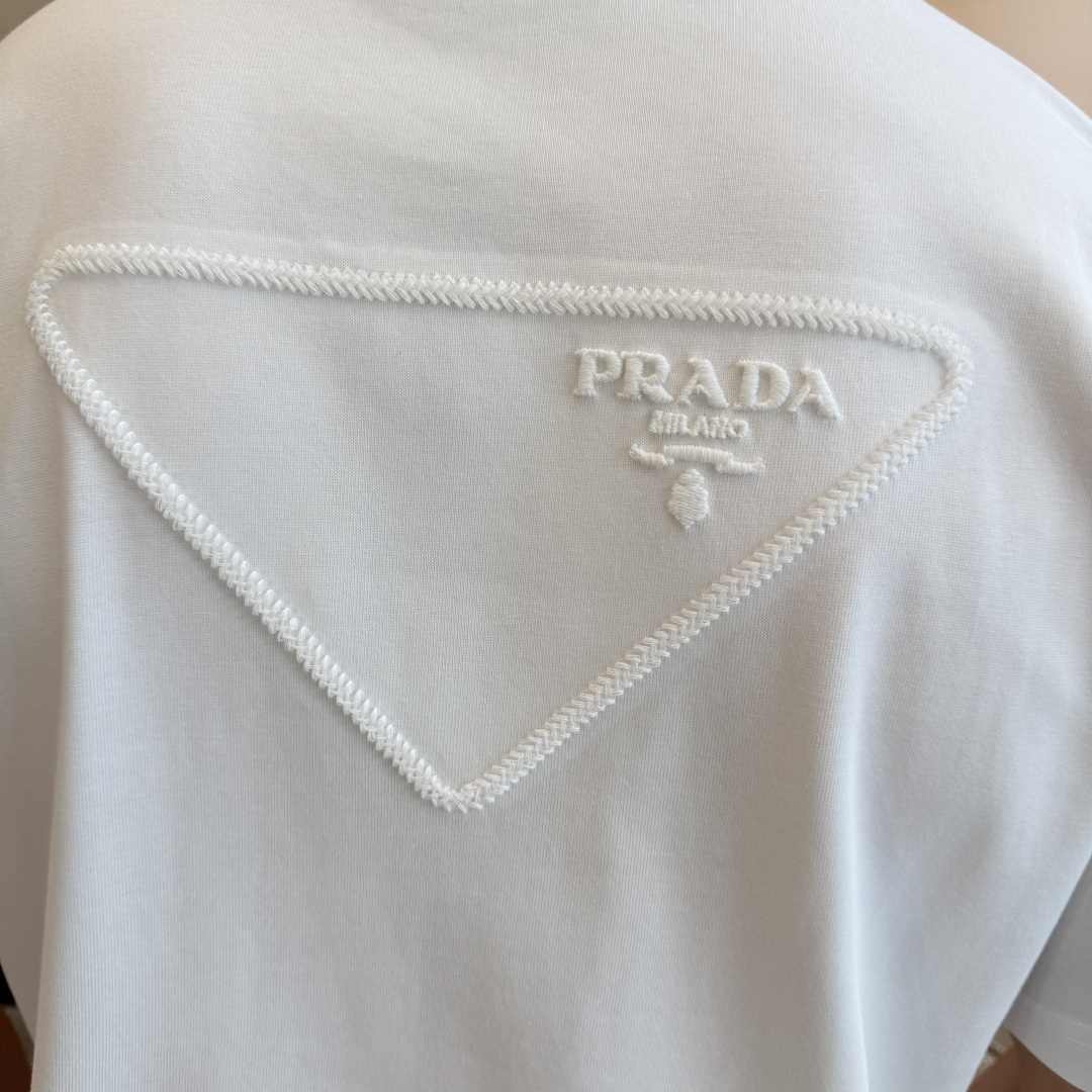 这款衣服是AAAAA 1:1 质量 (非常棒). 使用了和原版一模一样的材料. 商标部分也保持了和普拉达/Prada一样. 图片拍摄是实物衣服拍摄, 您所收到的实物保证和我们图片一模一样.