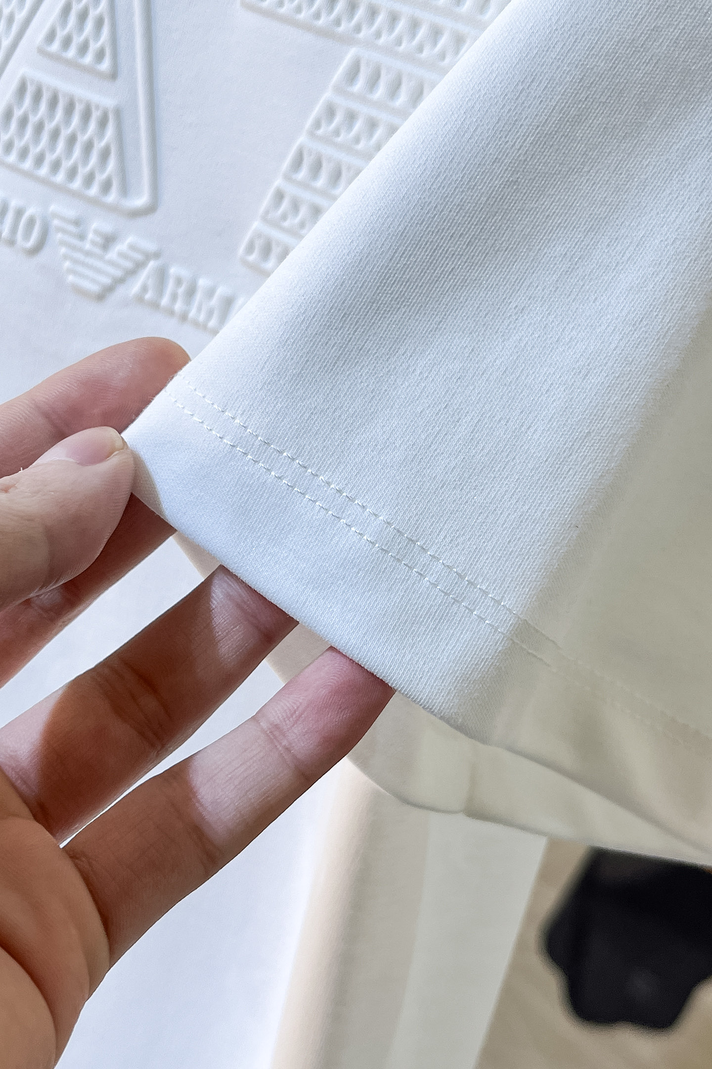 这款衣服是AAAAA 1:1 质量 (非常棒). 使用了和原版一模一样的材料. 商标部分也保持了和阿玛尼/Armani一样. 图片拍摄是实物衣服拍摄, 您所收到的实物保证和我们图片一模一样.