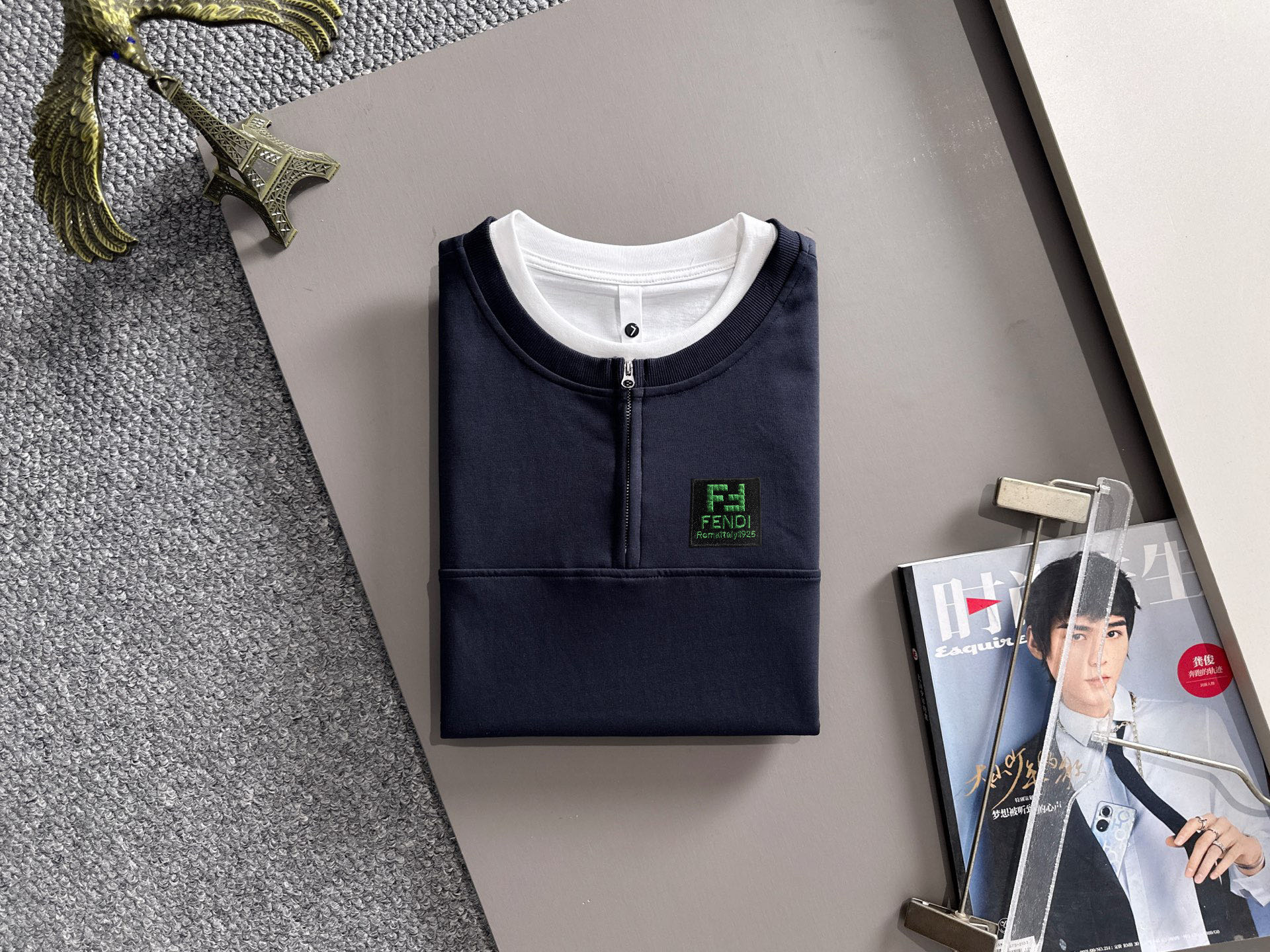 这款衣服是AAAAA 1:1 质量 (非常棒). 使用了和原版一模一样的材料. 商标部分也保持了和芬迪/Fendi一样. 图片拍摄是实物衣服拍摄, 您所收到的实物保证和我们图片一模一样.