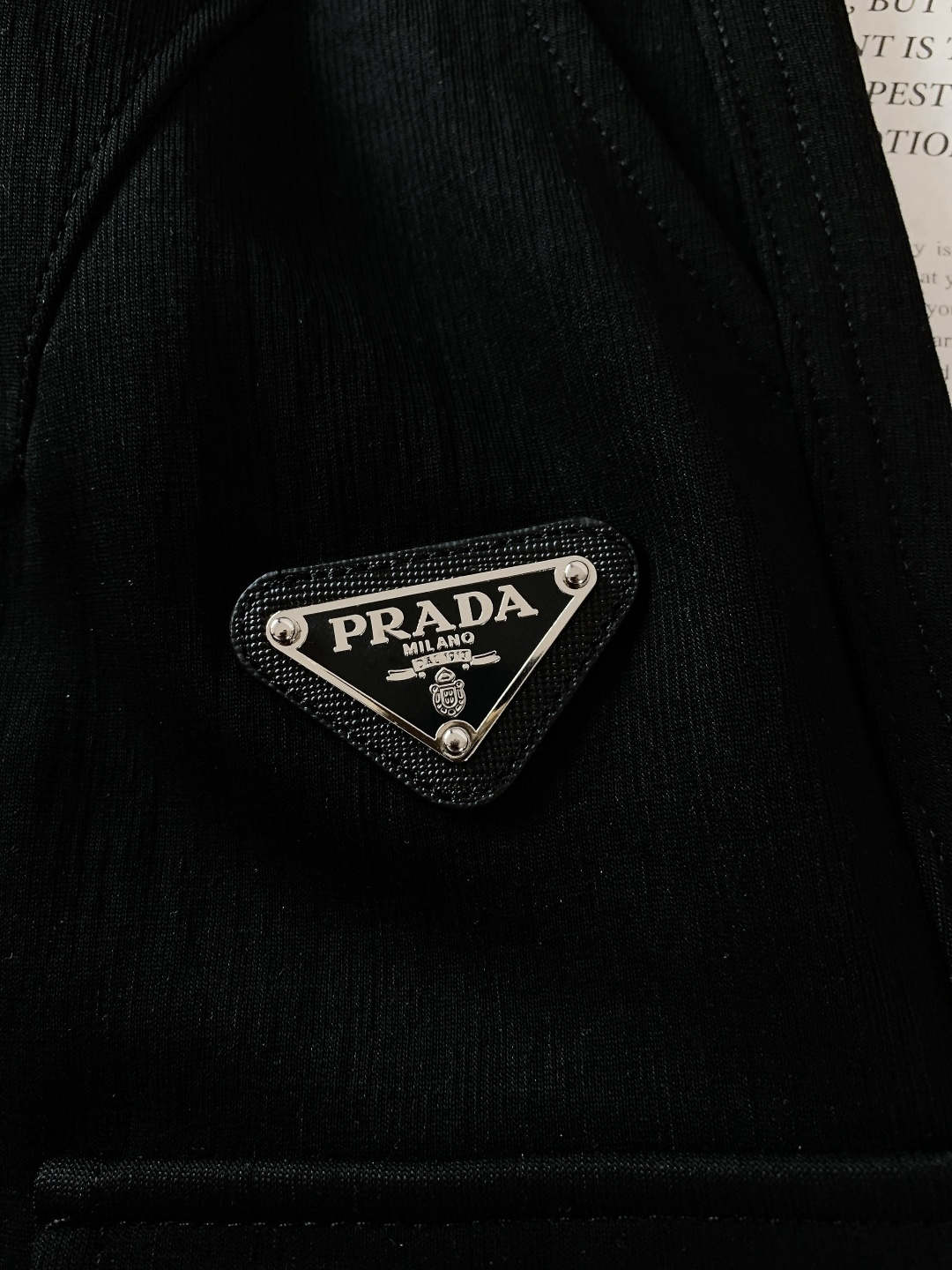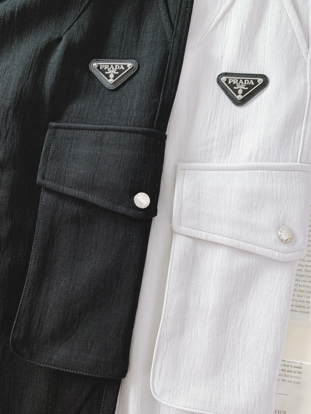 这款衣服是AAAAA 1:1 质量 (非常棒). 使用了和原版一模一样的材料. 商标部分也保持了和普拉达/Prada一样. 图片拍摄是实物衣服拍摄, 您所收到的实物保证和我们图片一模一样.