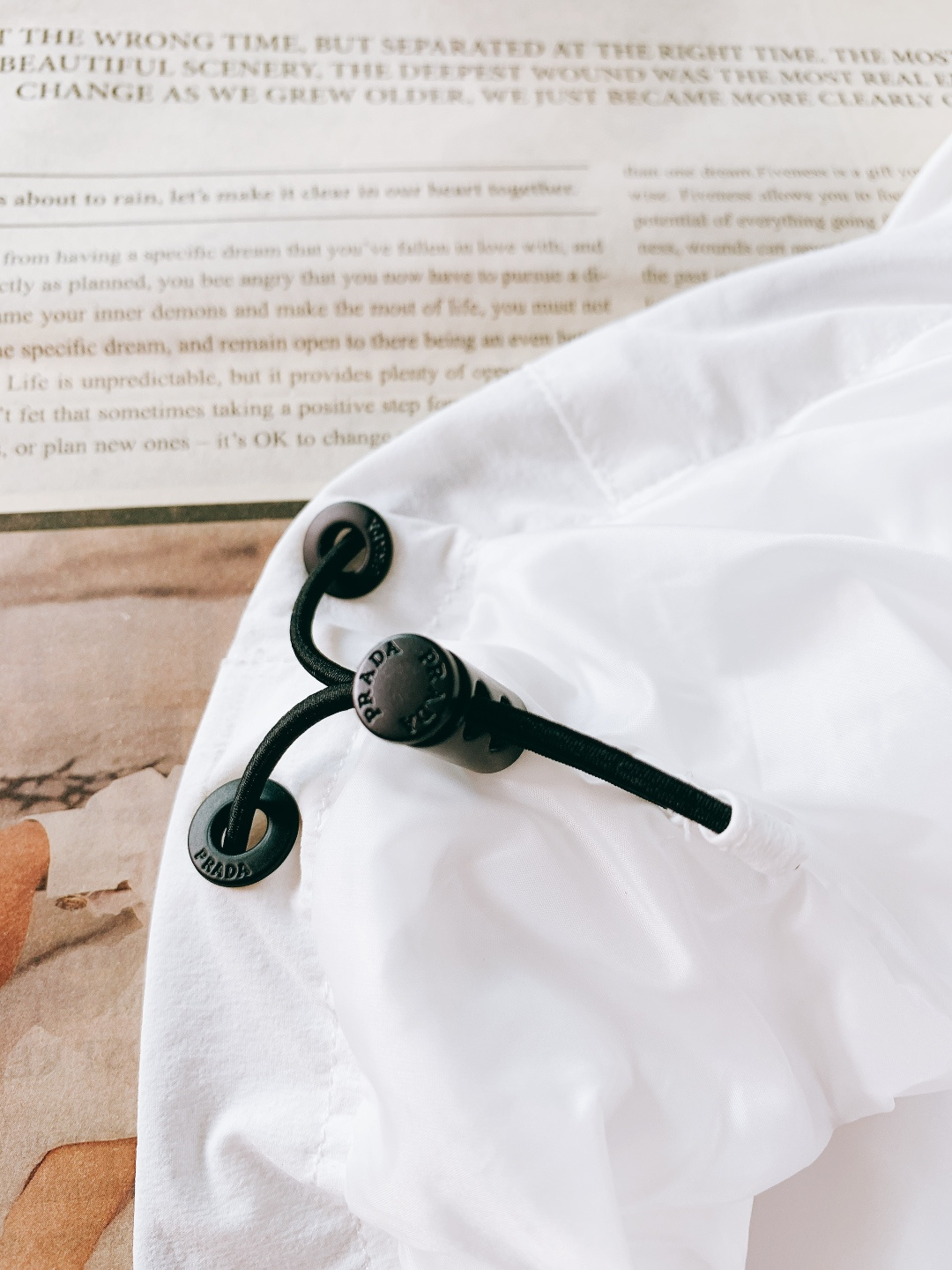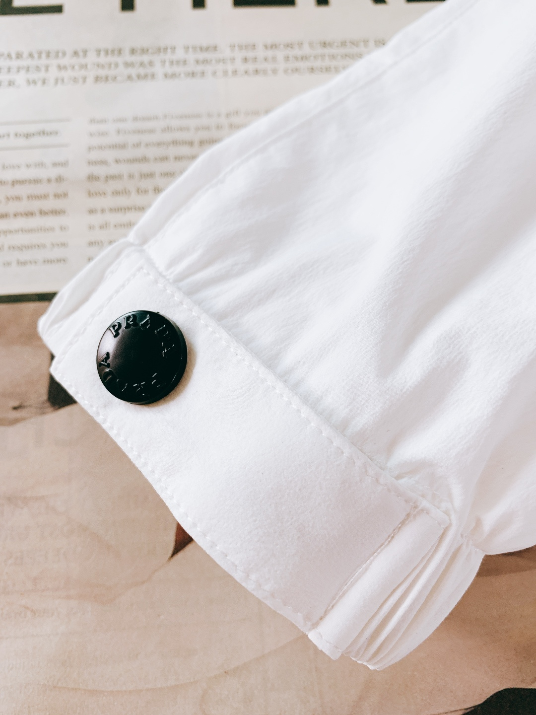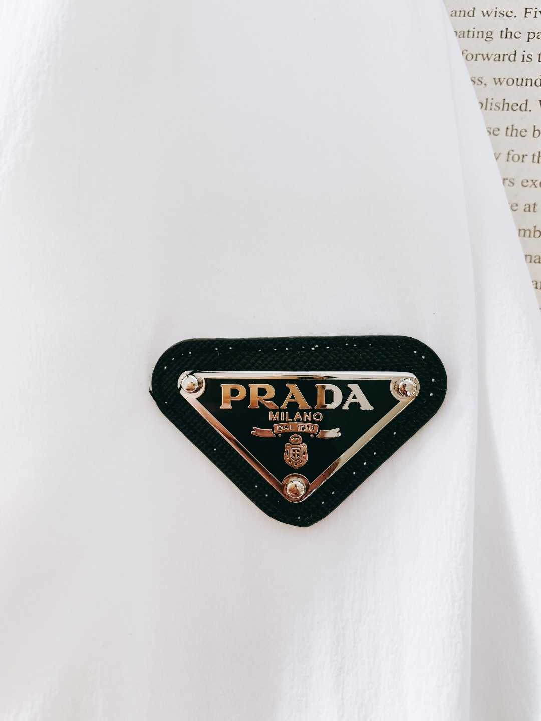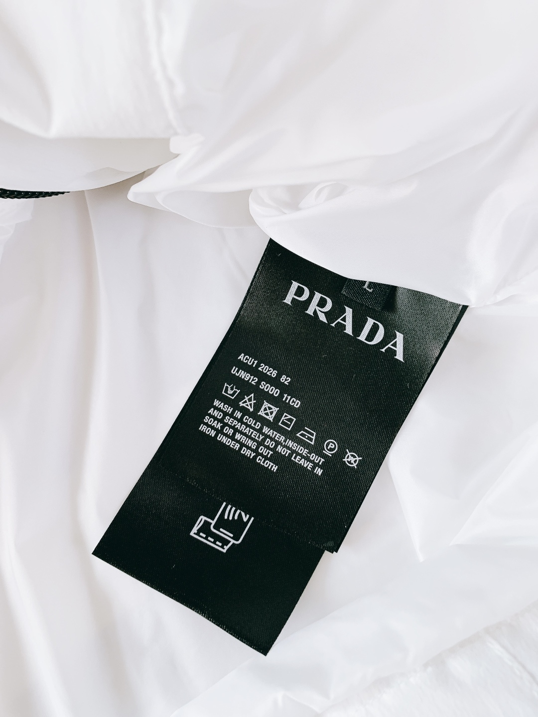 这款衣服是AAAAA 1:1 质量 (非常棒). 使用了和原版一模一样的材料. 商标部分也保持了和普拉达/Prada一样. 图片拍摄是实物衣服拍摄, 您所收到的实物保证和我们图片一模一样.