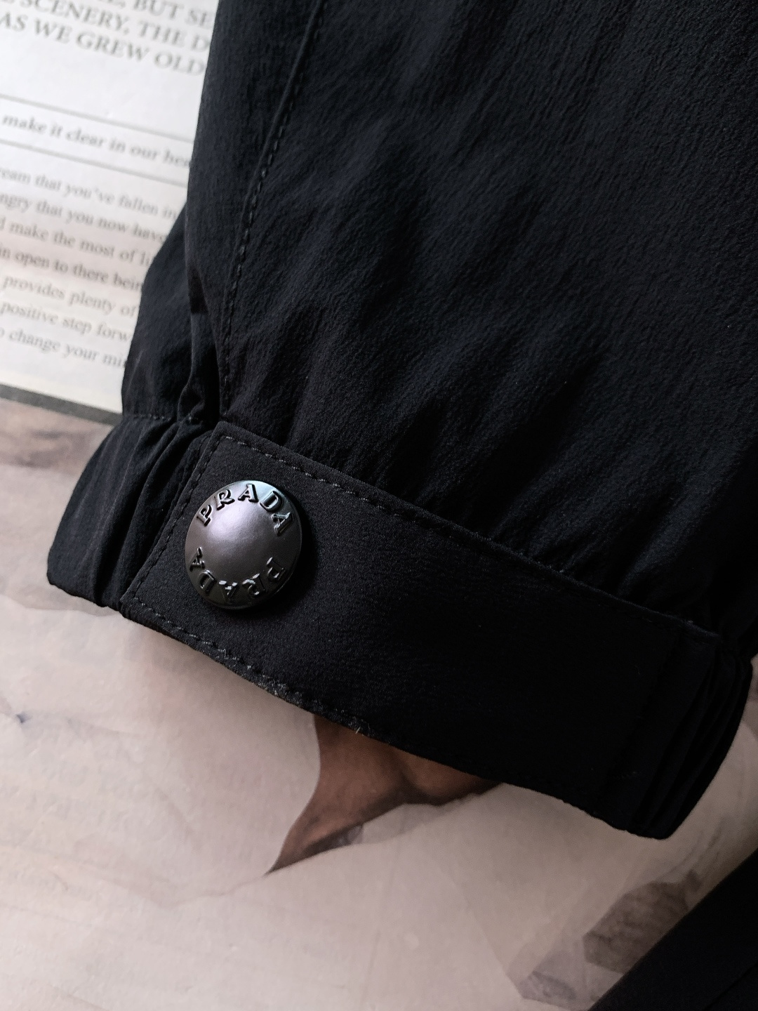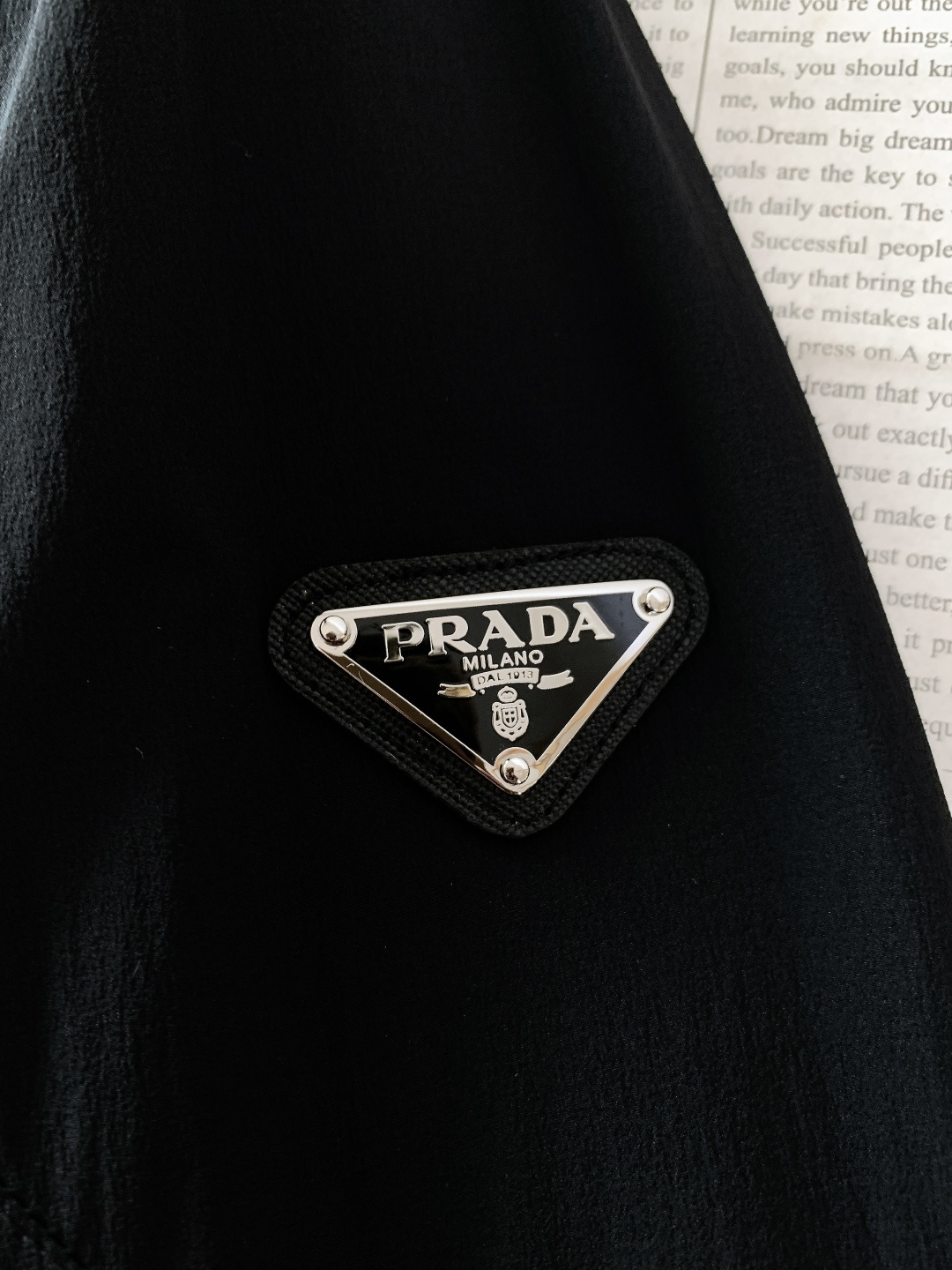 这款衣服是AAAAA 1:1 质量 (非常棒). 使用了和原版一模一样的材料. 商标部分也保持了和普拉达/Prada一样. 图片拍摄是实物衣服拍摄, 您所收到的实物保证和我们图片一模一样.