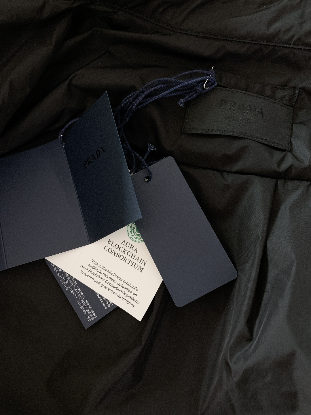 这款衣服是AAAAA 1:1 质量 (非常棒). 使用了和原版一模一样的材料. 商标部分也保持了和普拉达/Prada一样. 图片拍摄是实物衣服拍摄, 您所收到的实物保证和我们图片一模一样.