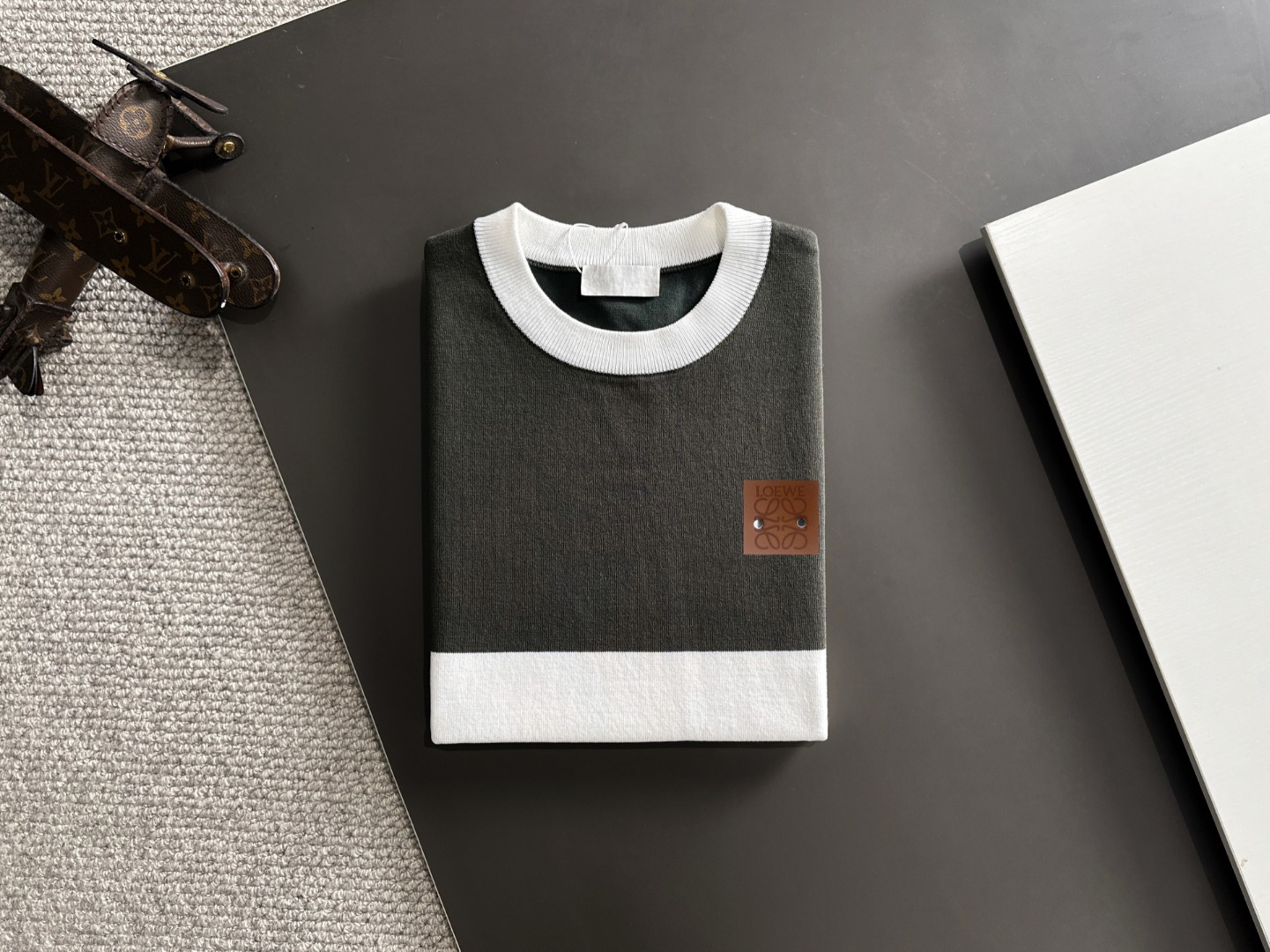 这款衣服是AAAAA 1:1 质量 (非常棒). 使用了和原版一模一样的材料. 商标部分也保持了和罗意威/Loewe一样. 图片拍摄是实物衣服拍摄, 您所收到的实物保证和我们图片一模一样.