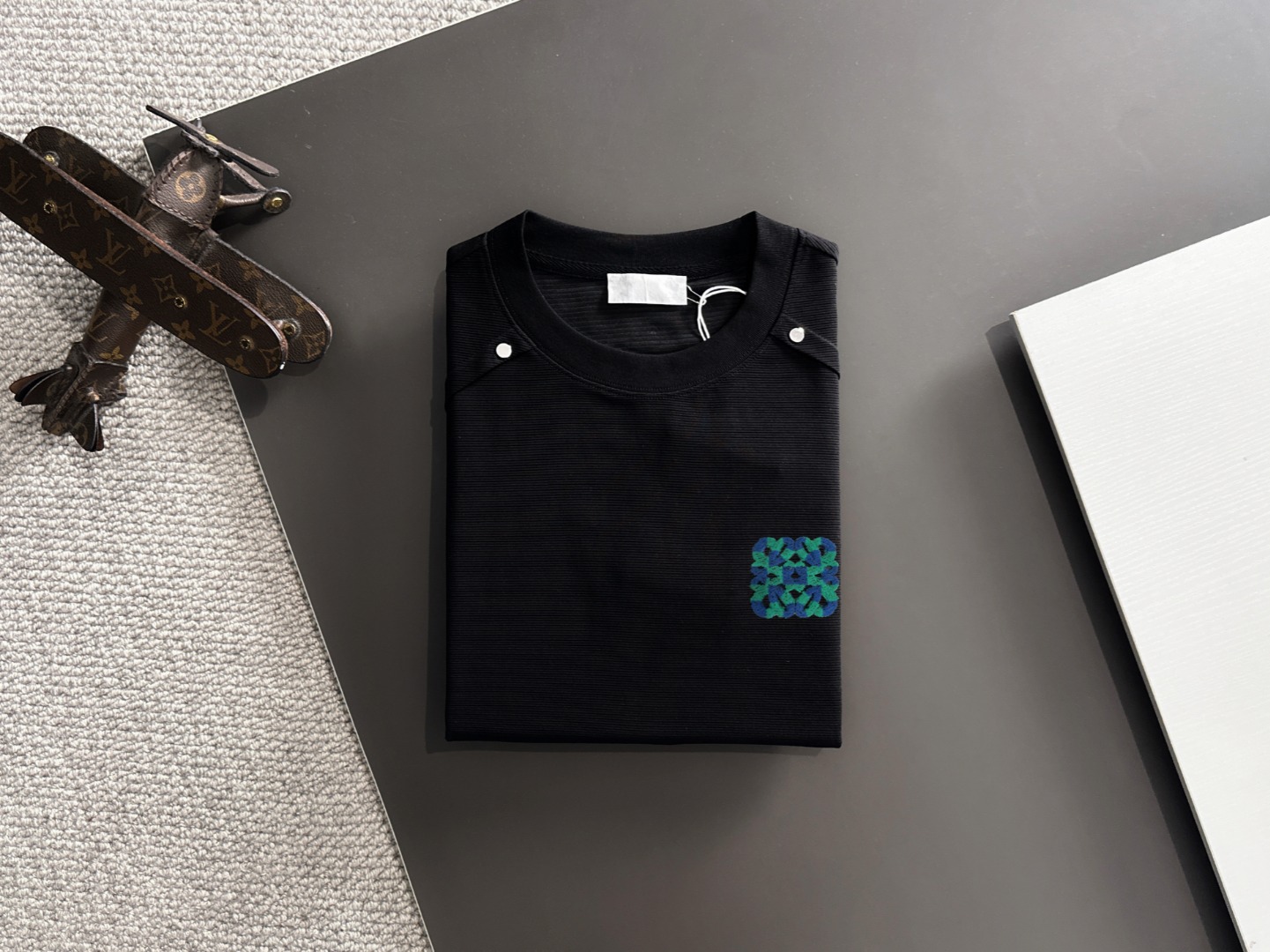 这款衣服是AAAAA 1:1 质量 (非常棒). 使用了和原版一模一样的材料. 商标部分也保持了和罗意威/Loewe一样. 图片拍摄是实物衣服拍摄, 您所收到的实物保证和我们图片一模一样.
