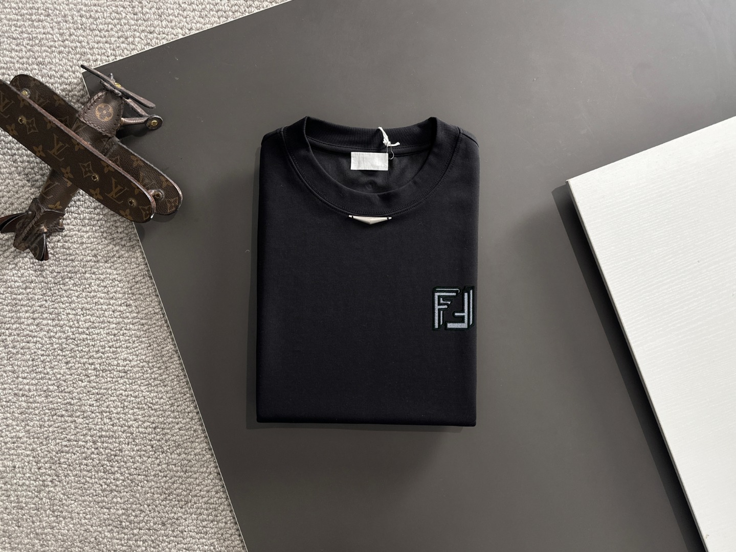 这款衣服是AAAAA 1:1 质量 (非常棒). 使用了和原版一模一样的材料. 商标部分也保持了和芬迪/Fendi一样. 图片拍摄是实物衣服拍摄, 您所收到的实物保证和我们图片一模一样.