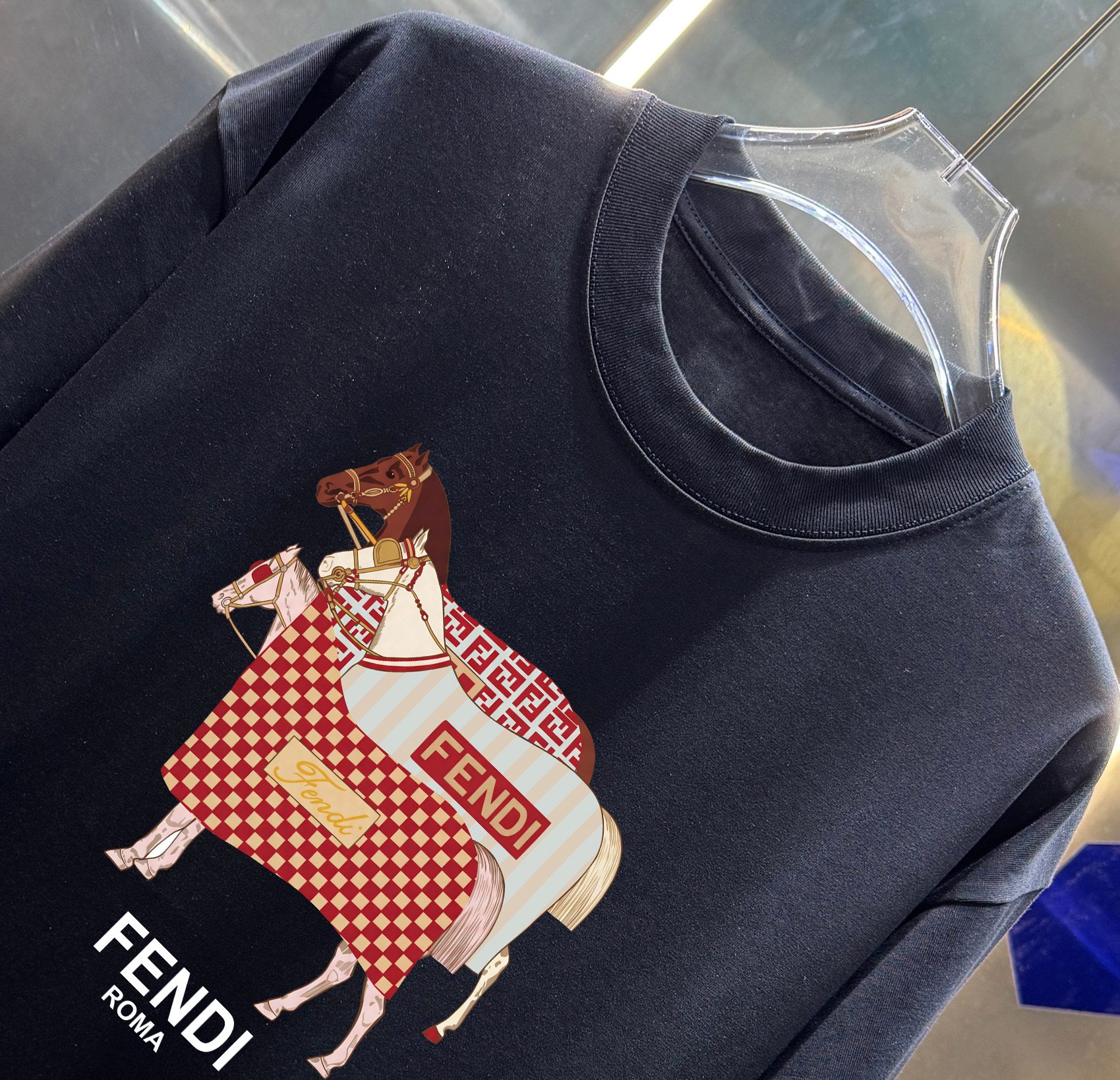 这款衣服是AAAAA 1:1 质量 (非常棒). 使用了和原版一模一样的材料. 商标部分也保持了和芬迪/Fendi一样. 图片拍摄是实物衣服拍摄, 您所收到的实物保证和我们图片一模一样.