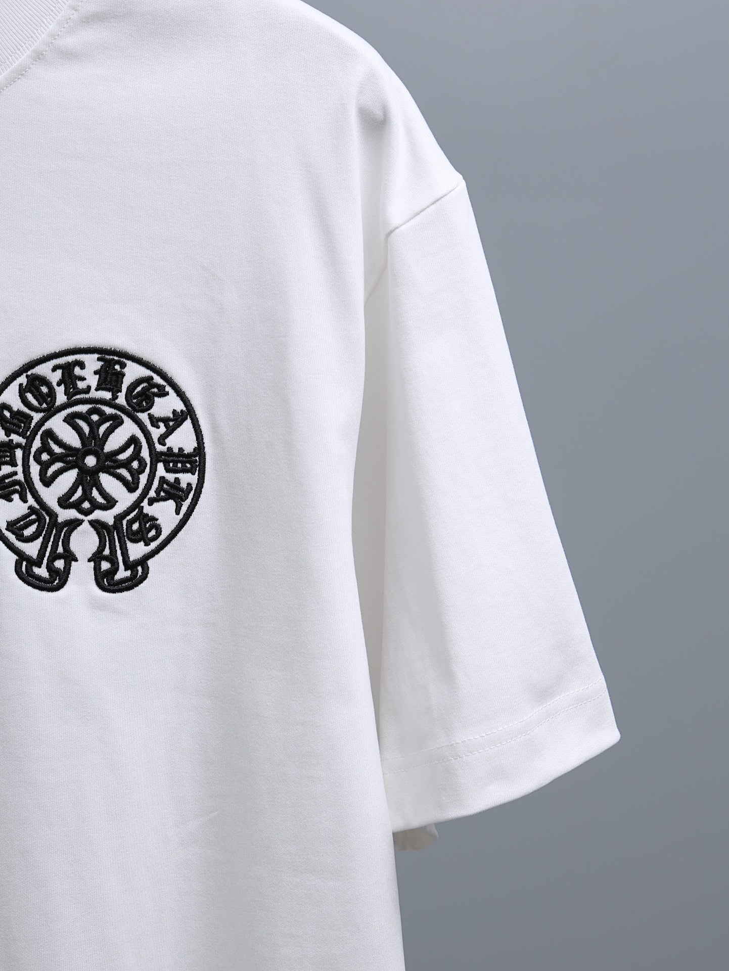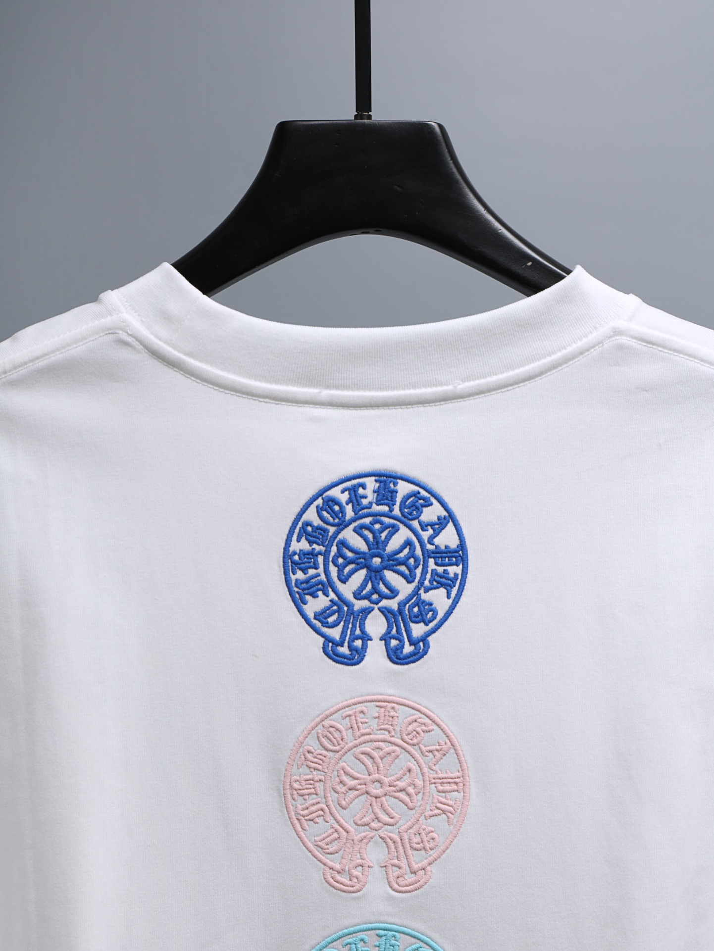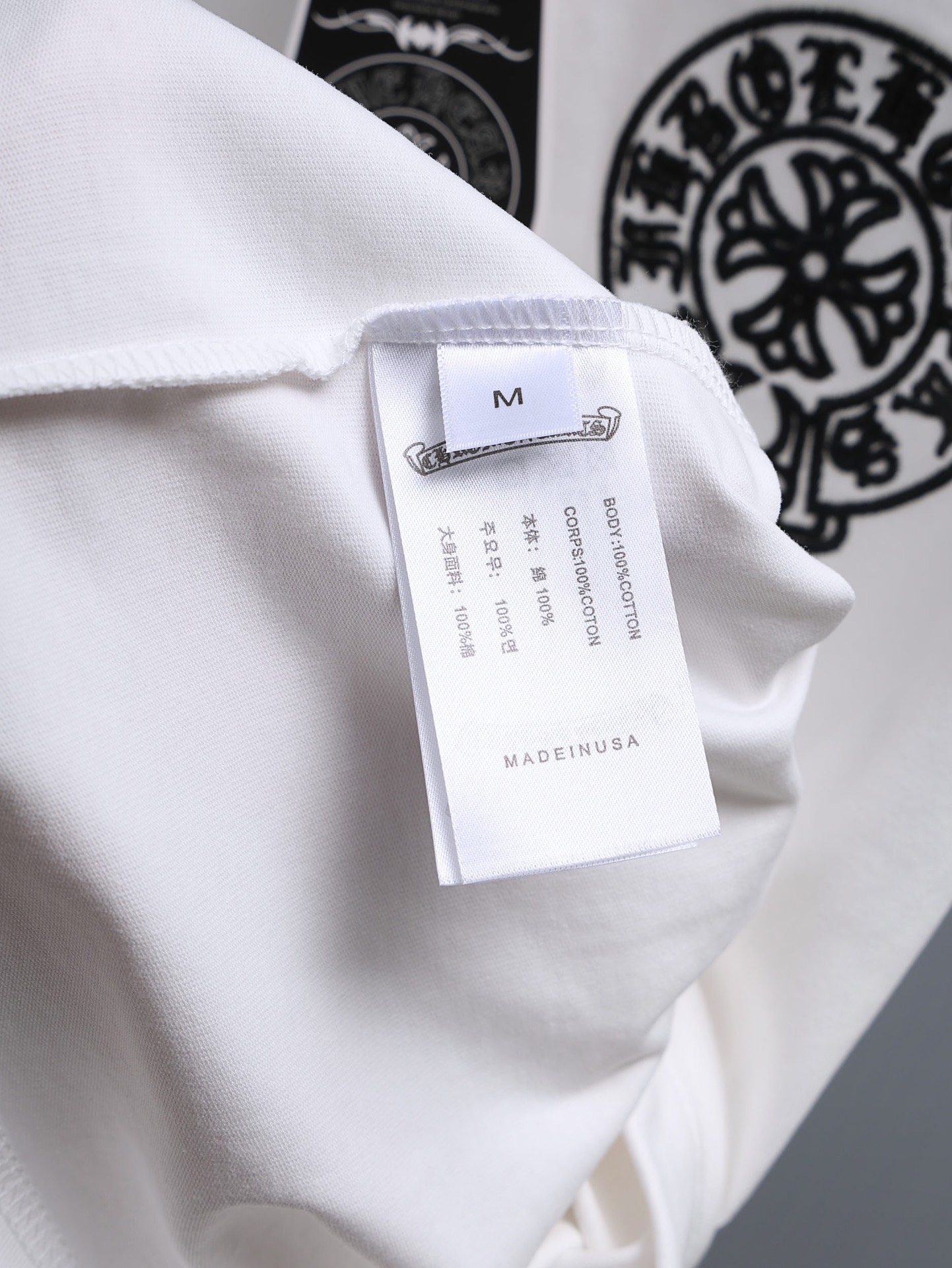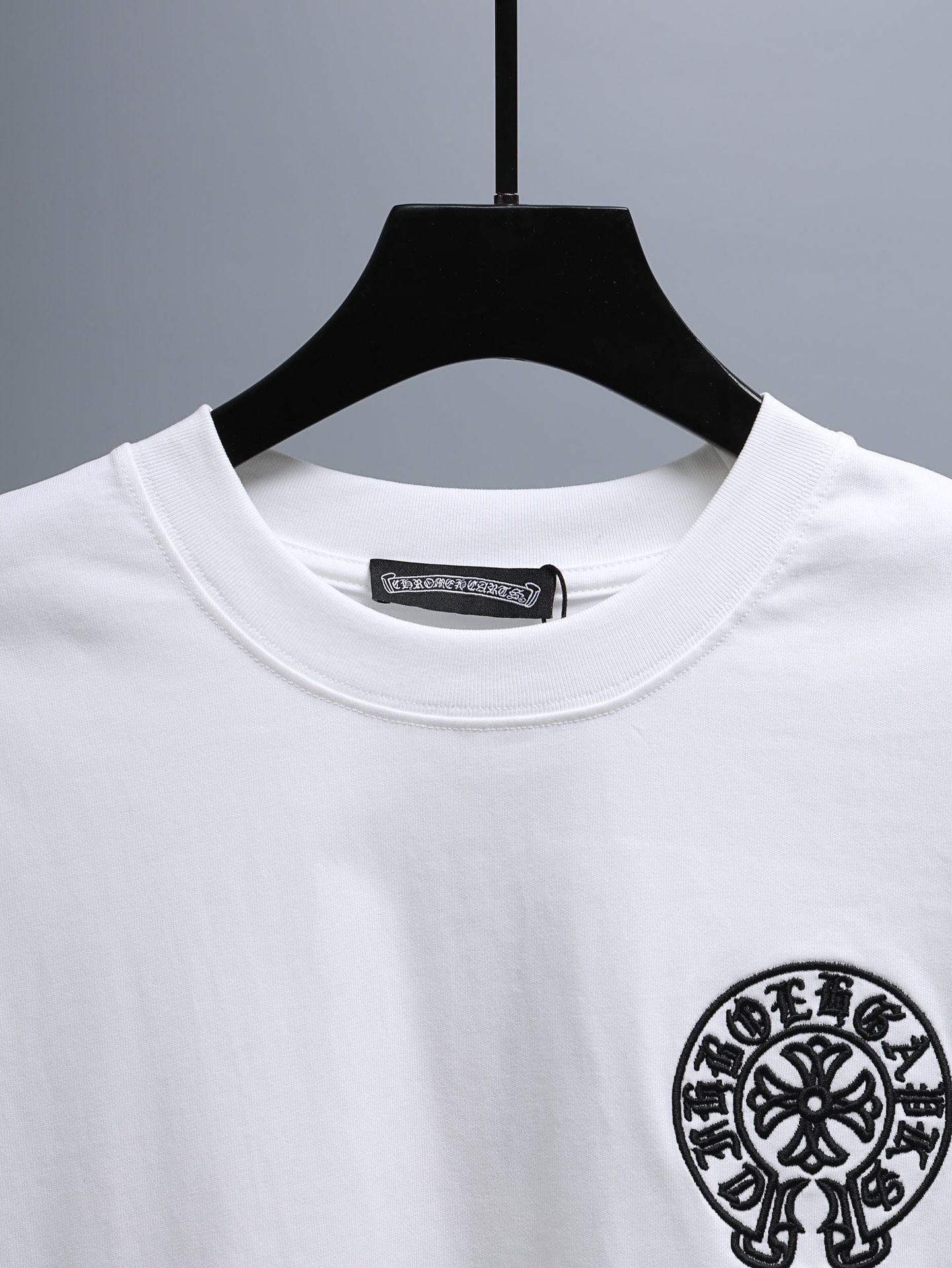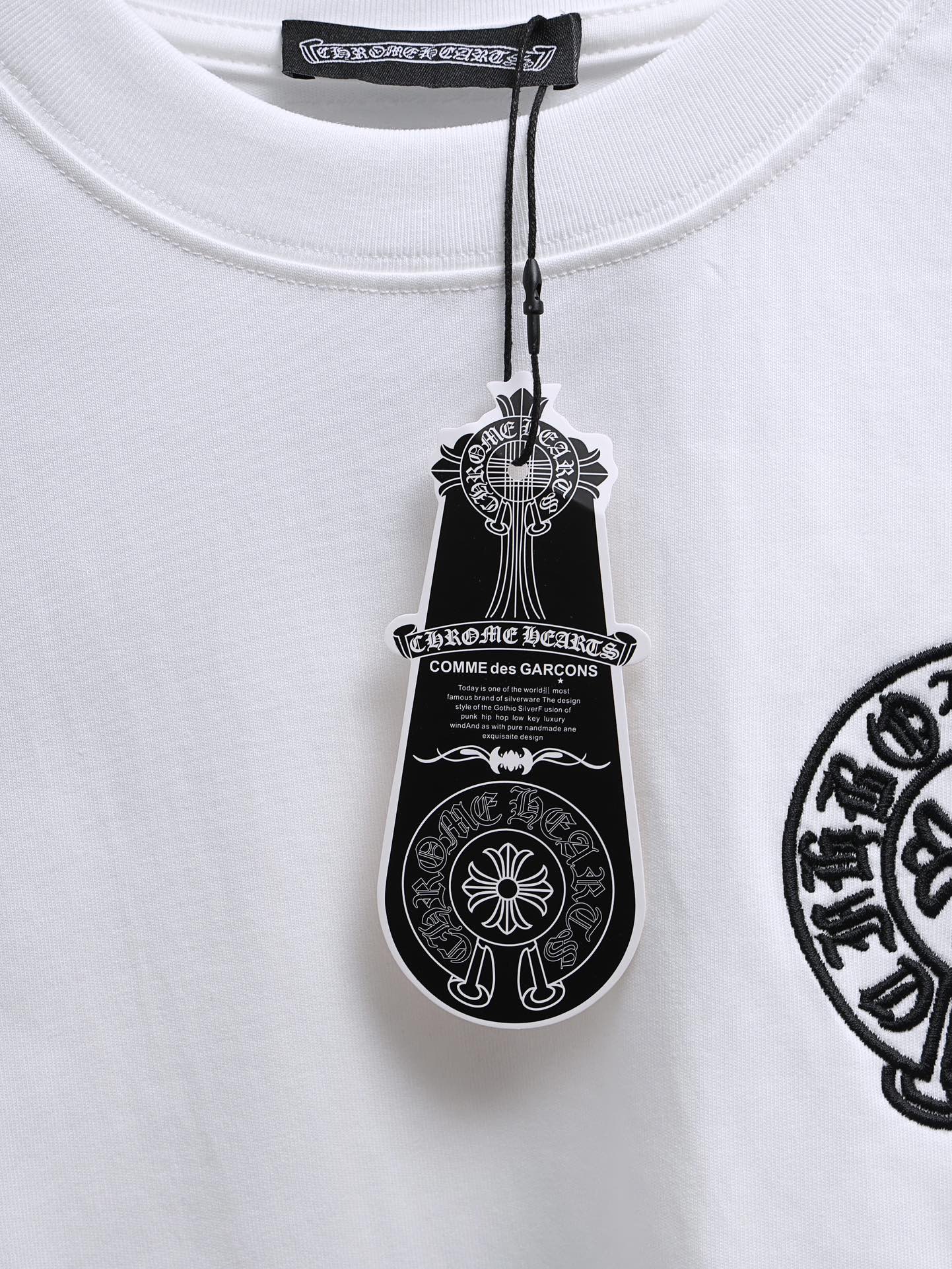 这款衣服是AAAAA 1:1 质量 (非常棒). 使用了和原版一模一样的材料. 商标部分也保持了和克罗心/Chrome Hearts一样. 图片拍摄是实物衣服拍摄, 您所收到的实物保证和我们图片一模一样.
