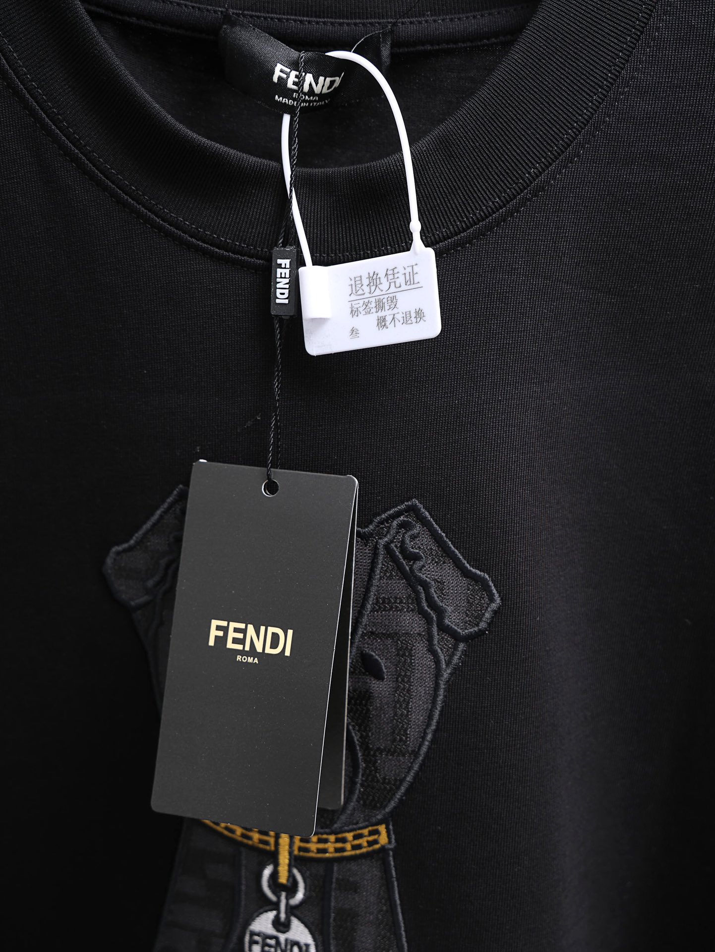 这款衣服是AAAAA 1:1 质量 (非常棒). 使用了和原版一模一样的材料. 商标部分也保持了和芬迪/Fendi一样. 图片拍摄是实物衣服拍摄, 您所收到的实物保证和我们图片一模一样.