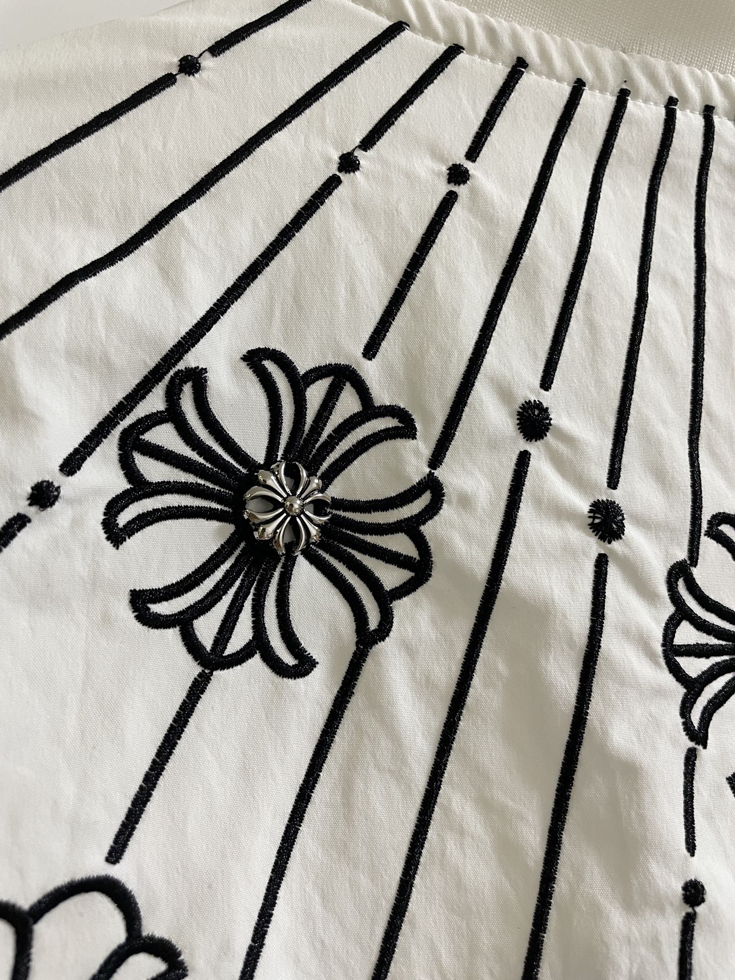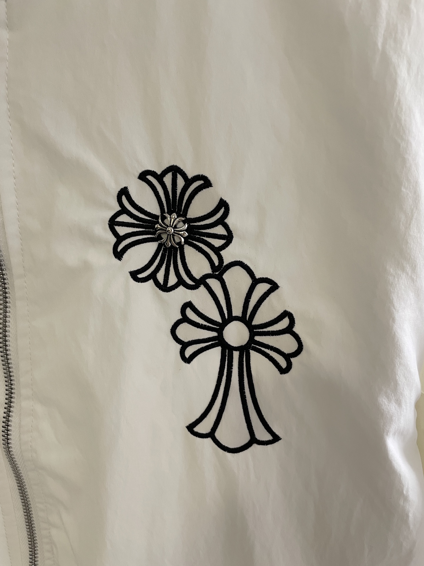 这款衣服是AAAAA 1:1 质量 (非常棒). 使用了和原版一模一样的材料. 商标部分也保持了和克罗心/Chrome Hearts一样. 图片拍摄是实物衣服拍摄, 您所收到的实物保证和我们图片一模一样.