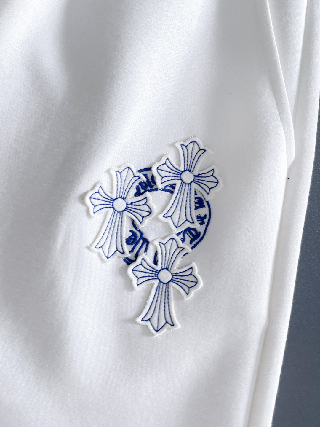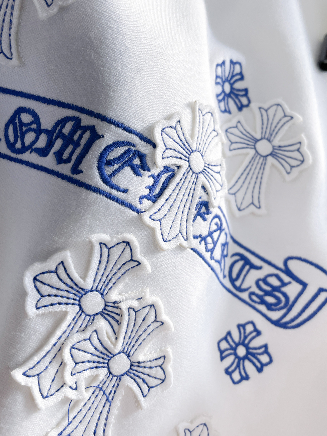 这款衣服是AAAAA 1:1 质量 (非常棒). 使用了和原版一模一样的材料. 商标部分也保持了和克罗心/Chrome Hearts一样. 图片拍摄是实物衣服拍摄, 您所收到的实物保证和我们图片一模一样.