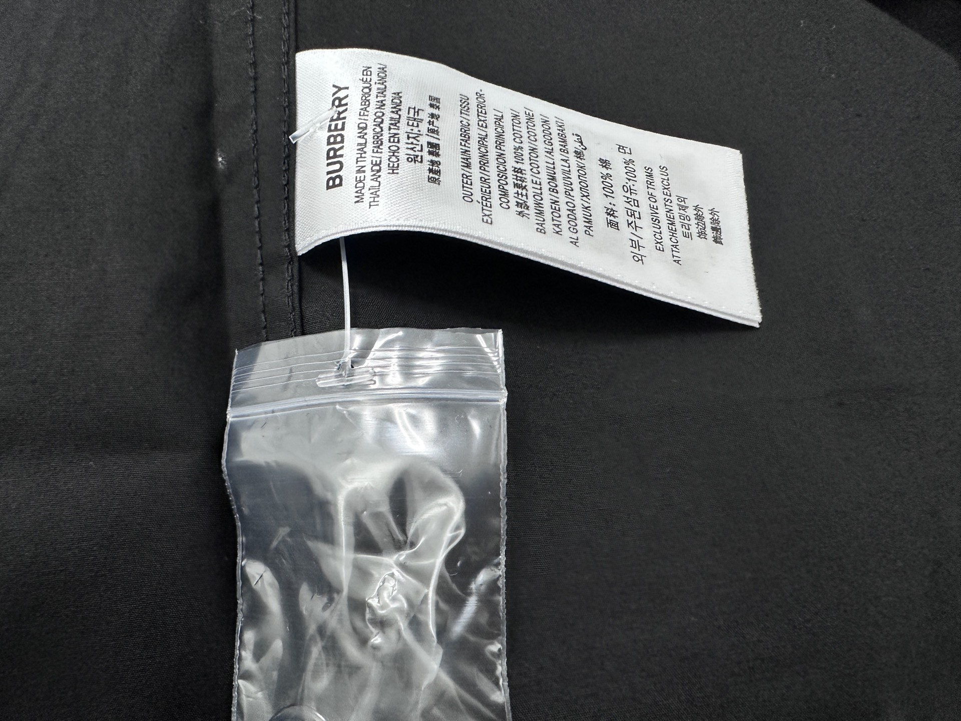 这款衣服是AAAAA 1:1 质量 (非常棒). 使用了和原版一模一样的材料. 商标部分也保持了和巴宝莉/Burberry一样. 图片拍摄是实物衣服拍摄, 您所收到的实物保证和我们图片一模一样.