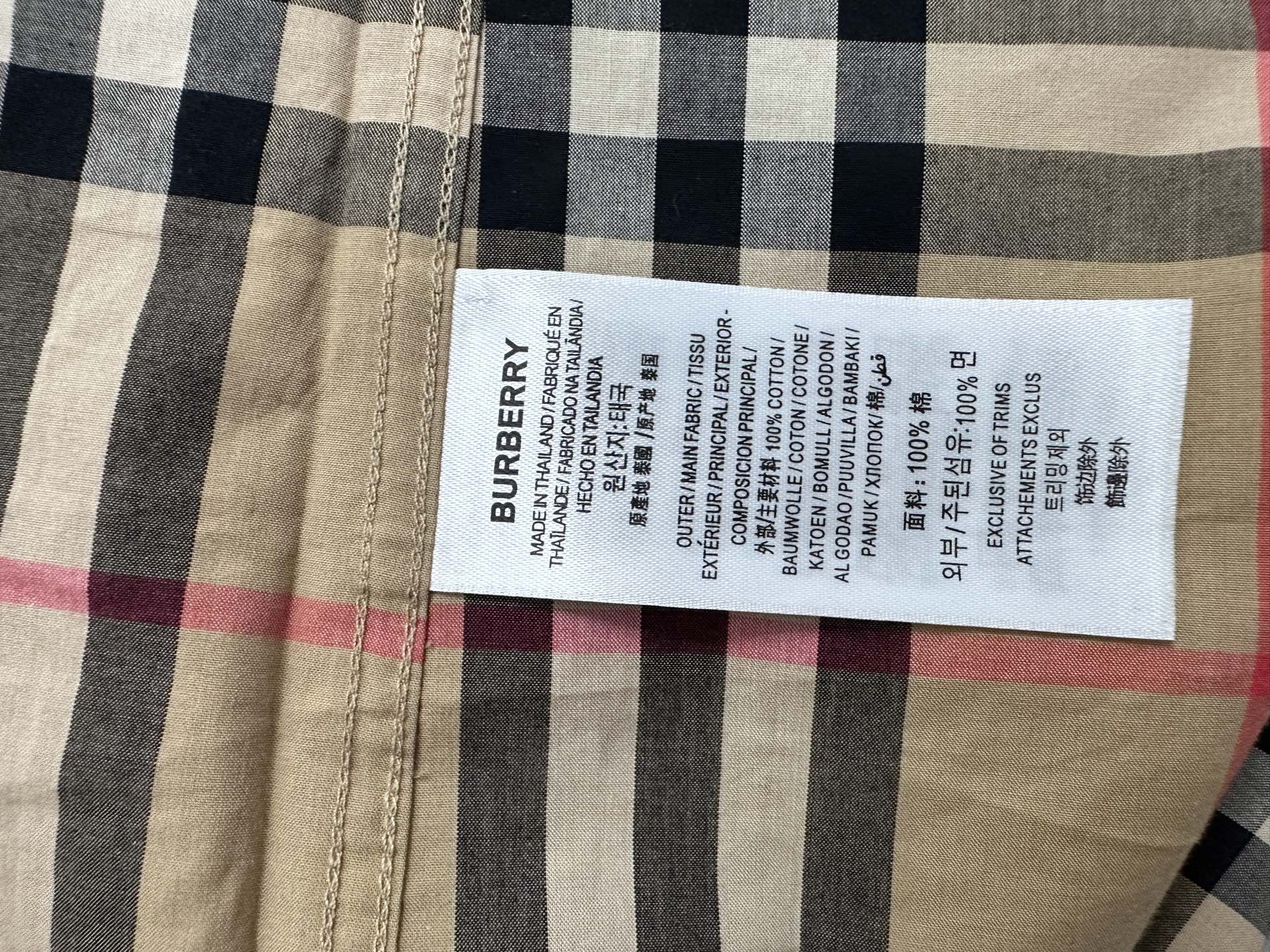 这款衣服是AAAAA 1:1 质量 (非常棒). 使用了和原版一模一样的材料. 商标部分也保持了和巴宝莉/Burberry一样. 图片拍摄是实物衣服拍摄, 您所收到的实物保证和我们图片一模一样.