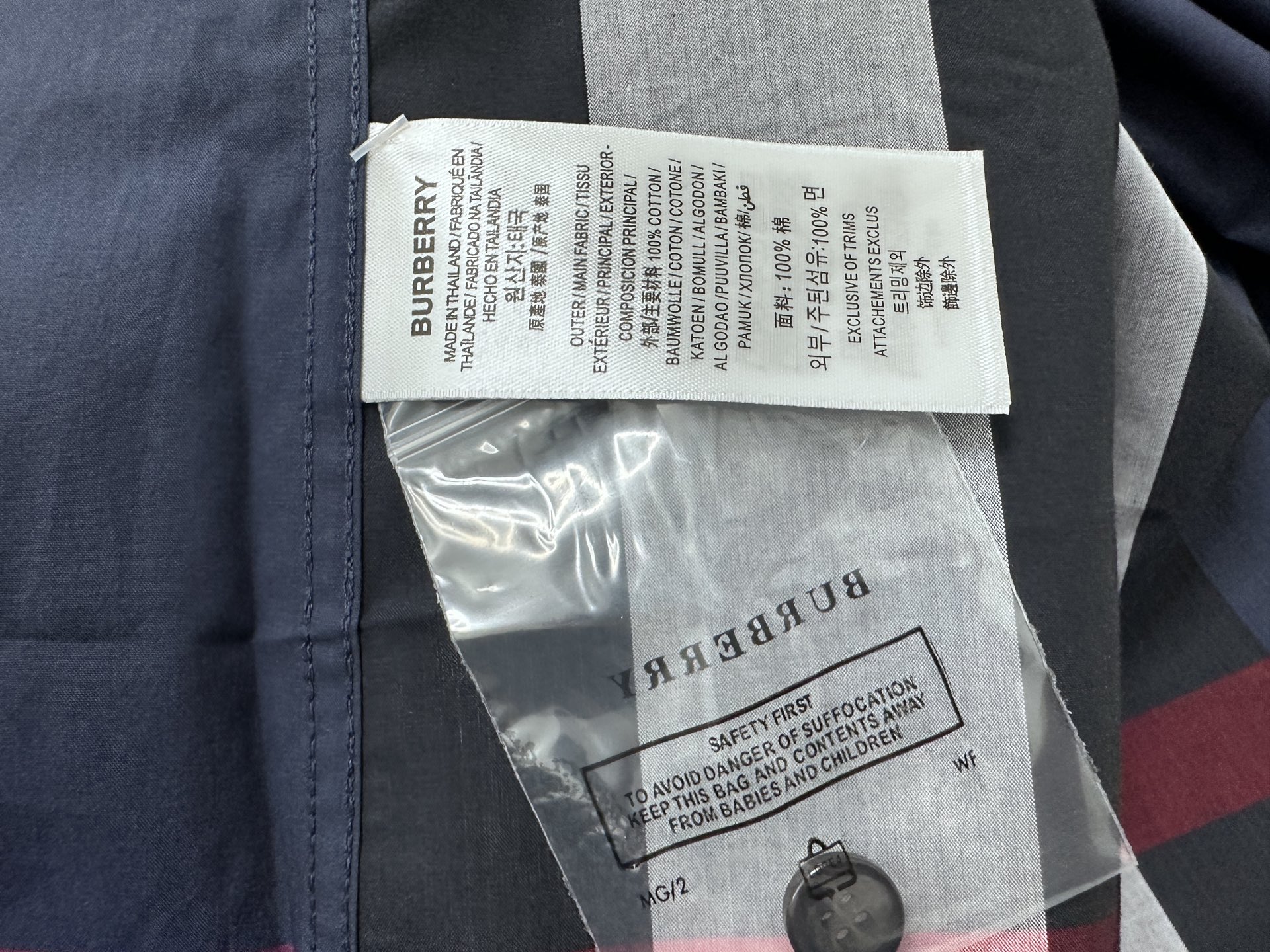 这款衣服是AAAAA 1:1 质量 (非常棒). 使用了和原版一模一样的材料. 商标部分也保持了和巴宝莉/Burberry一样. 图片拍摄是实物衣服拍摄, 您所收到的实物保证和我们图片一模一样.