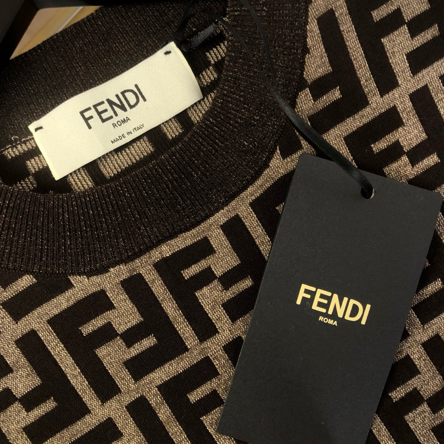这款衣服是AAAAA 1:1 质量 (非常棒). 使用了和原版一模一样的材料. 商标部分也保持了和芬迪/Fendi一样. 图片拍摄是实物衣服拍摄, 您所收到的实物保证和我们图片一模一样.