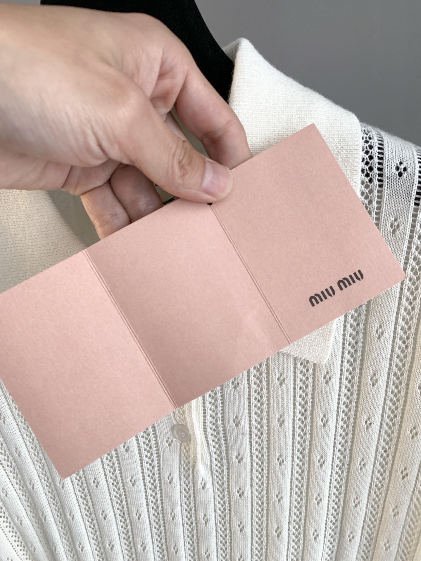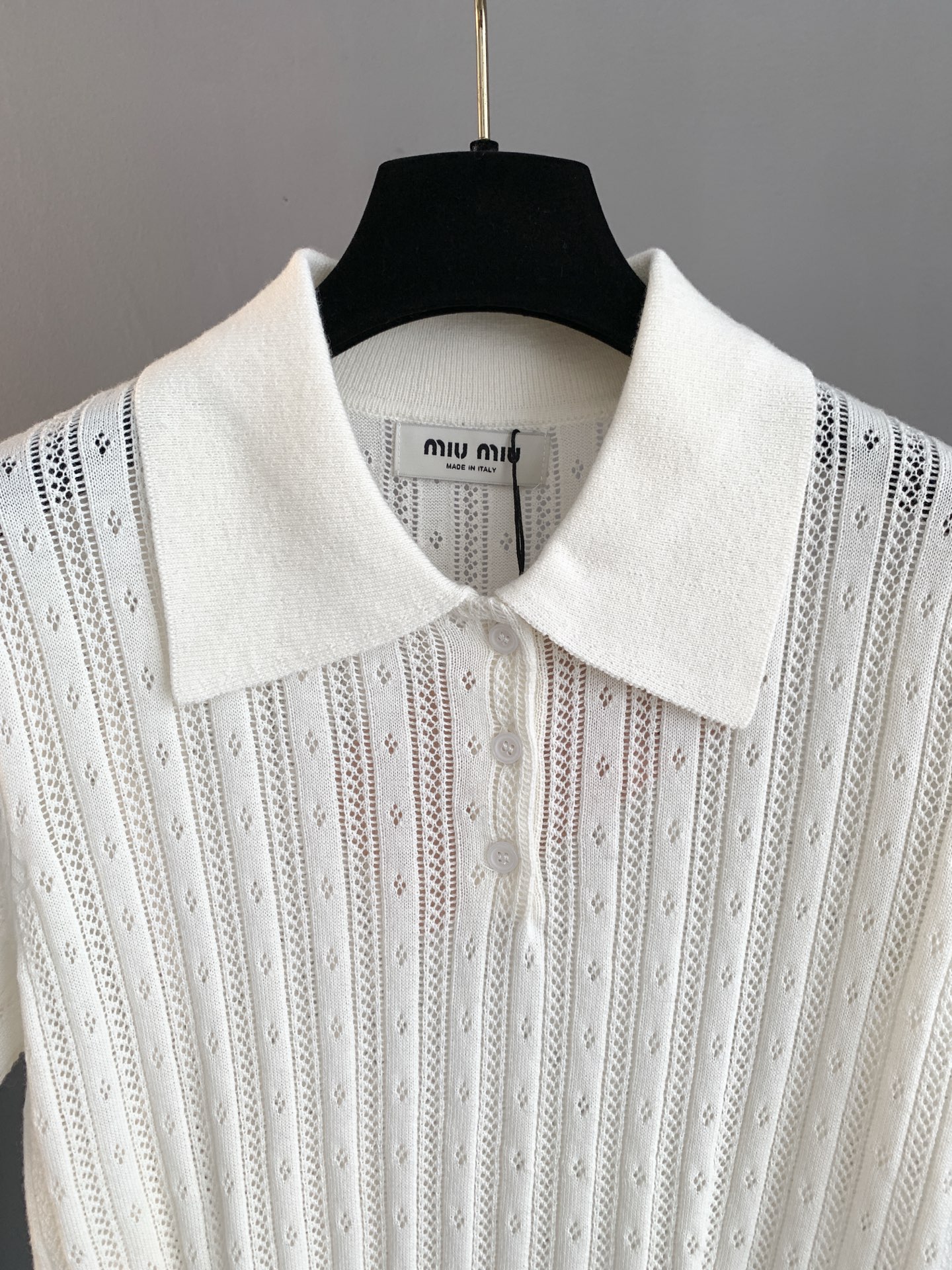 这款衣服是AAAAA 1:1 质量 (非常棒). 使用了和原版一模一样的材料. 商标部分也保持了和缪缪/Miu Miu一样. 图片拍摄是实物衣服拍摄, 您所收到的实物保证和我们图片一模一样.