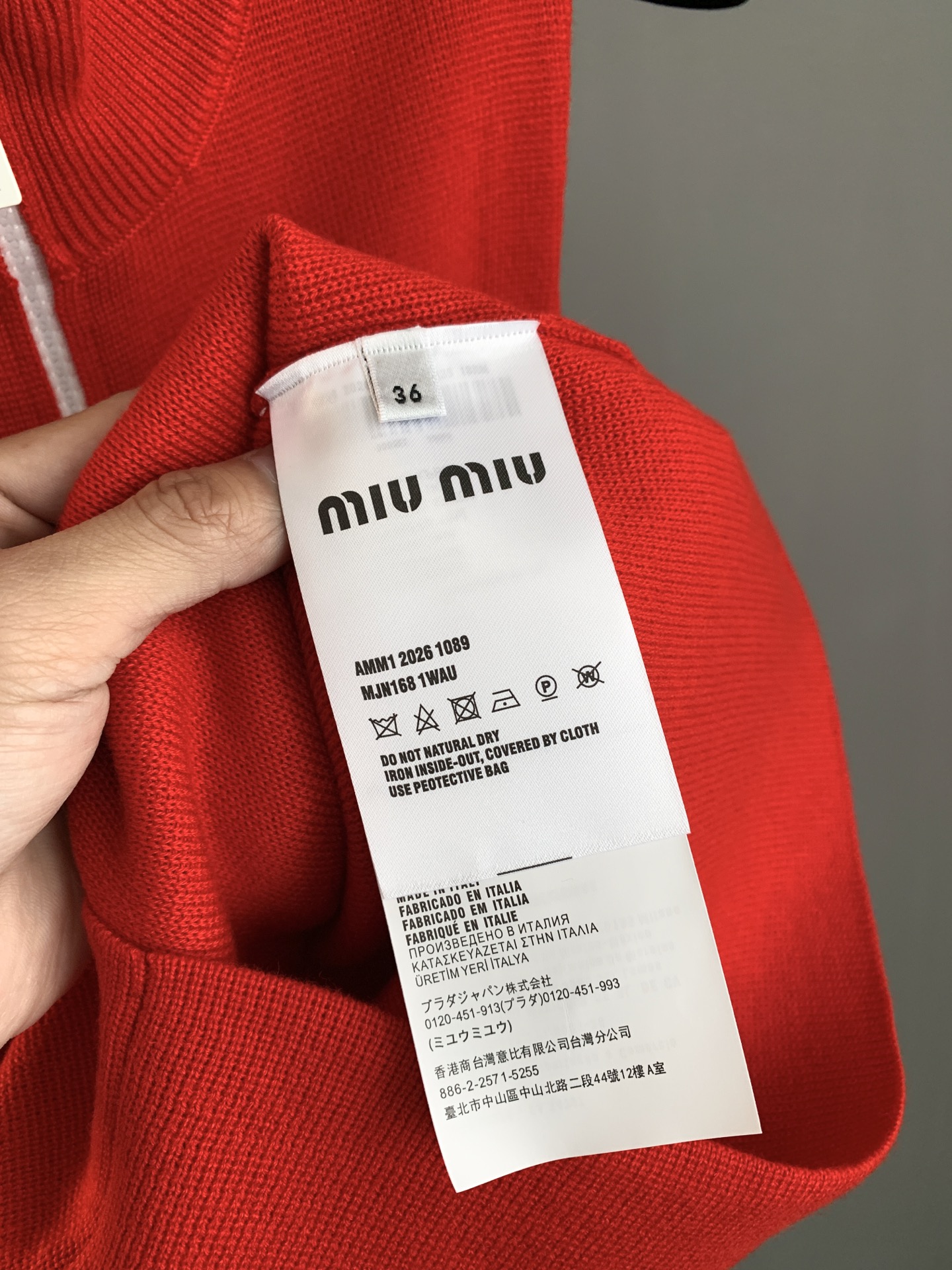 这款衣服是AAAAA 1:1 质量 (非常棒). 使用了和原版一模一样的材料. 商标部分也保持了和缪缪/Miu Miu一样. 图片拍摄是实物衣服拍摄, 您所收到的实物保证和我们图片一模一样.