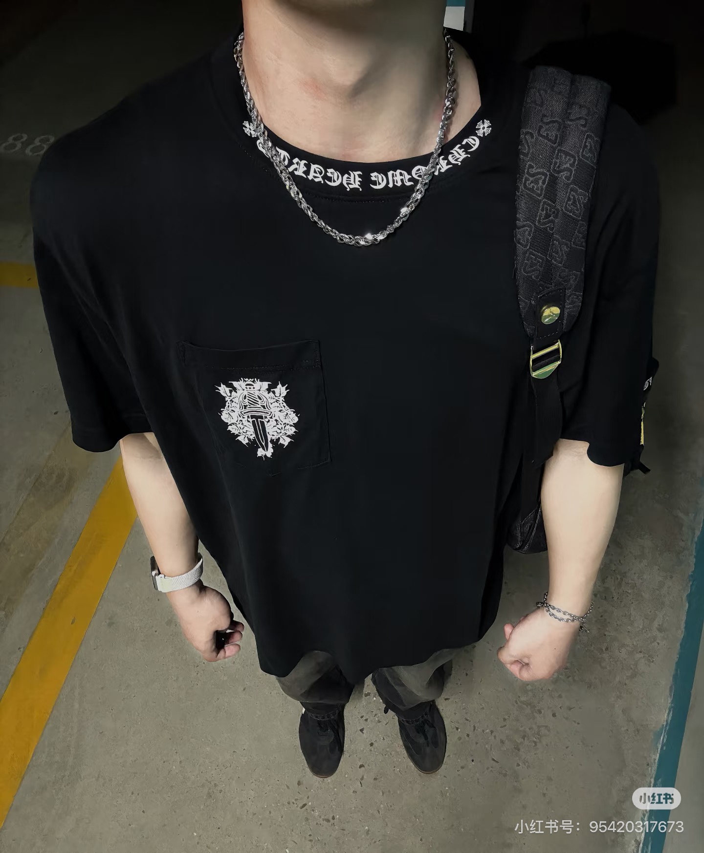 这款衣服是AAAAA 1:1 质量 (非常棒). 使用了和原版一模一样的材料. 商标部分也保持了和克罗心/Chrome Hearts一样. 图片拍摄是实物衣服拍摄, 您所收到的实物保证和我们图片一模一样.