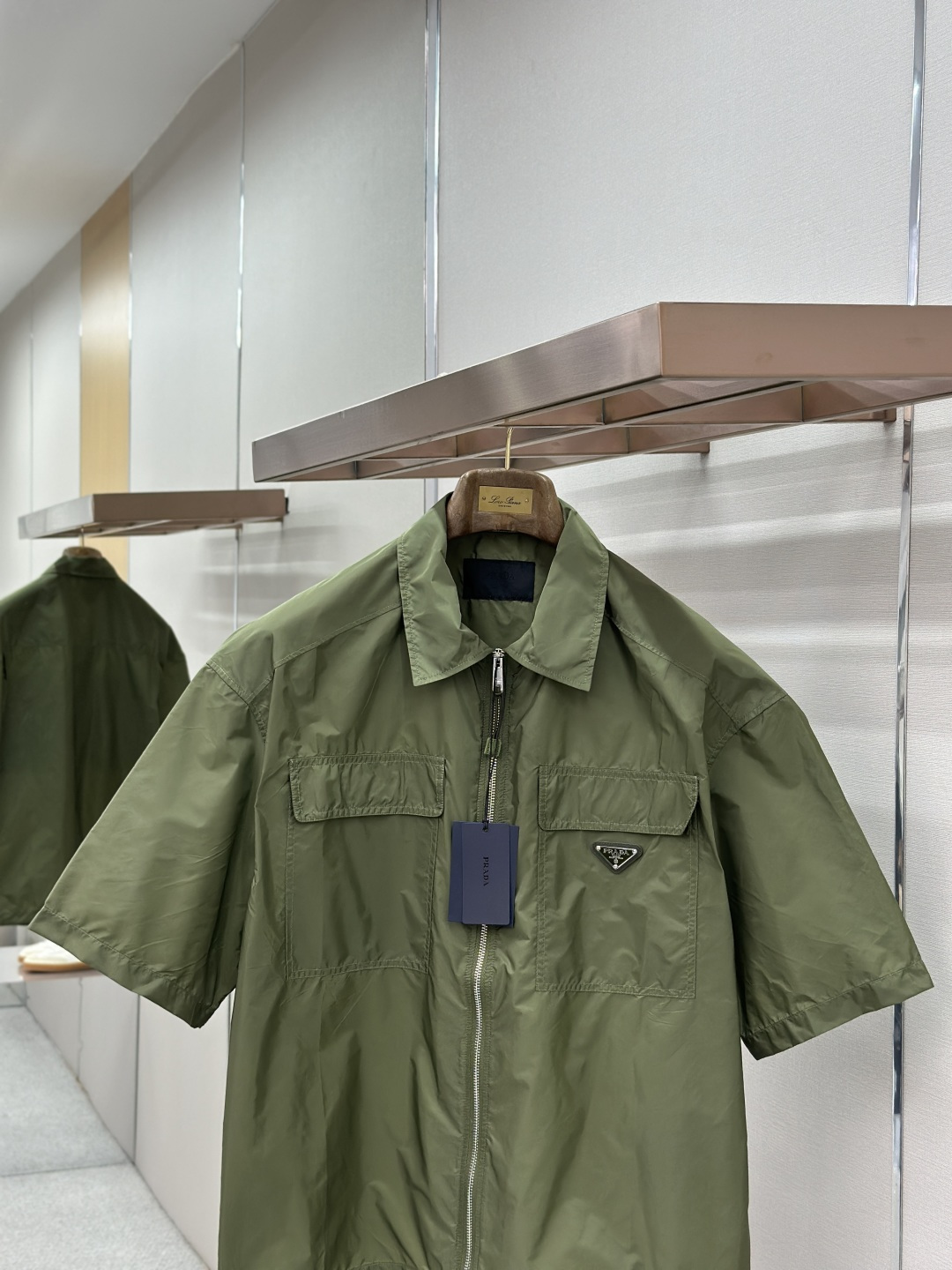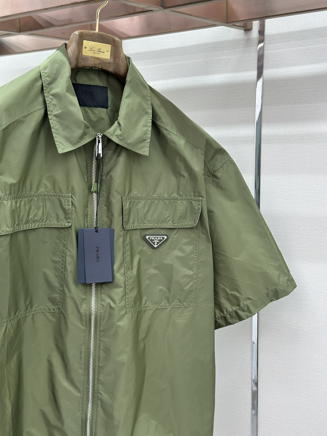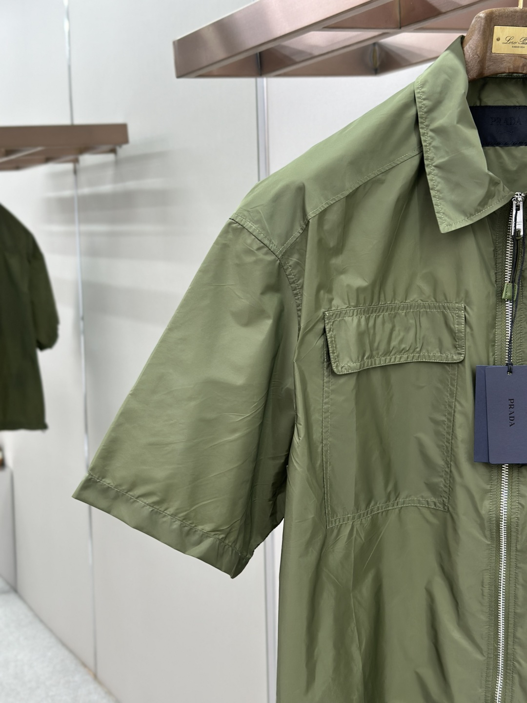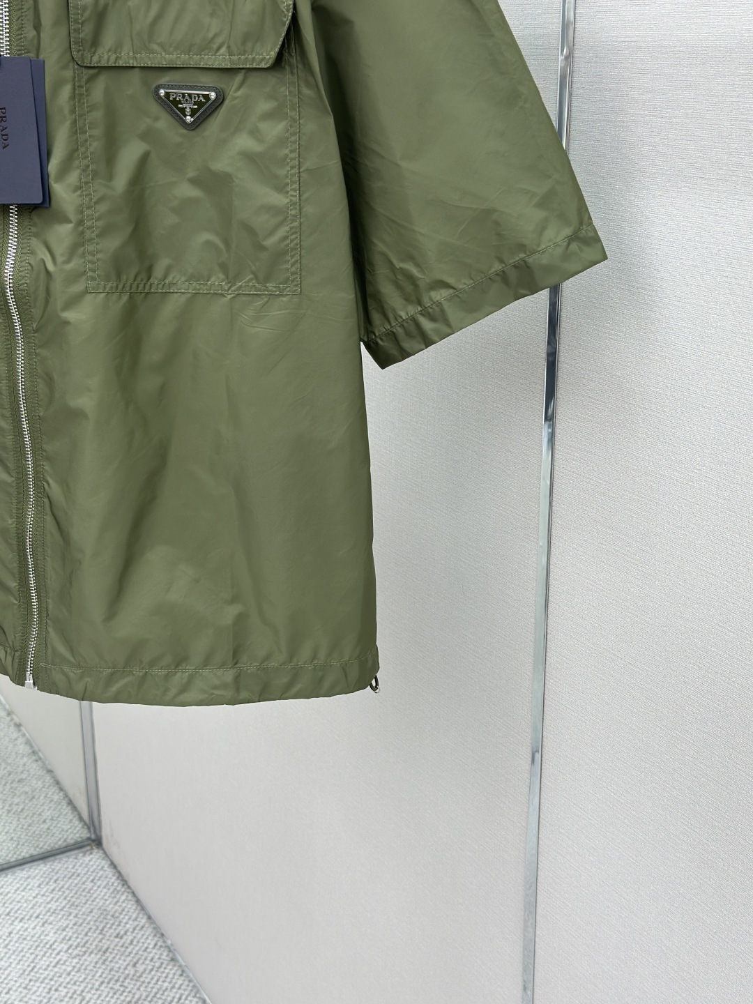 这款衣服是AAAAA 1:1 质量 (非常棒). 使用了和原版一模一样的材料. 商标部分也保持了和普拉达/Prada一样. 图片拍摄是实物衣服拍摄, 您所收到的实物保证和我们图片一模一样.