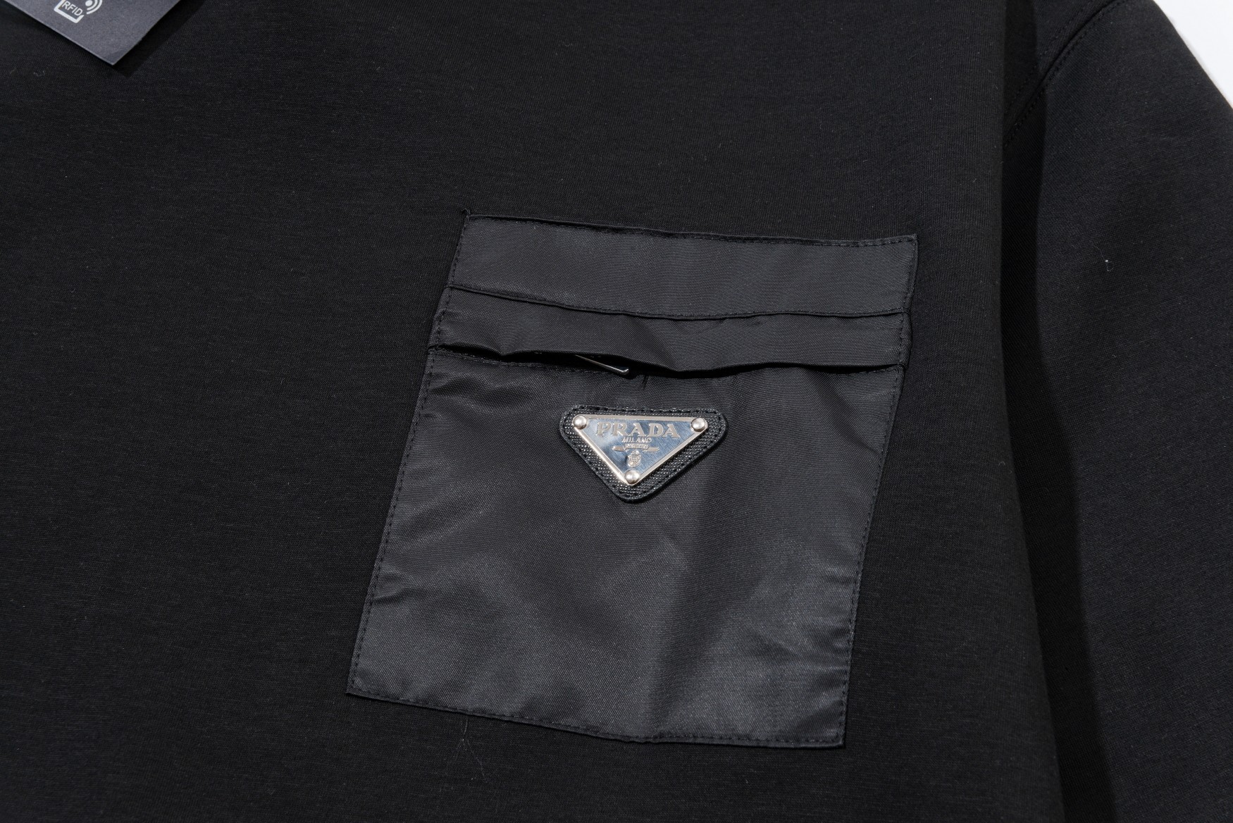 这款衣服是AAAAA 1:1 质量 (非常棒). 使用了和原版一模一样的材料. 商标部分也保持了和普拉达/Prada一样. 图片拍摄是实物衣服拍摄, 您所收到的实物保证和我们图片一模一样.