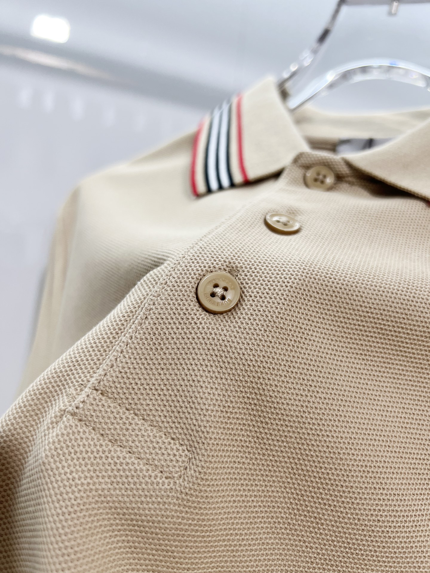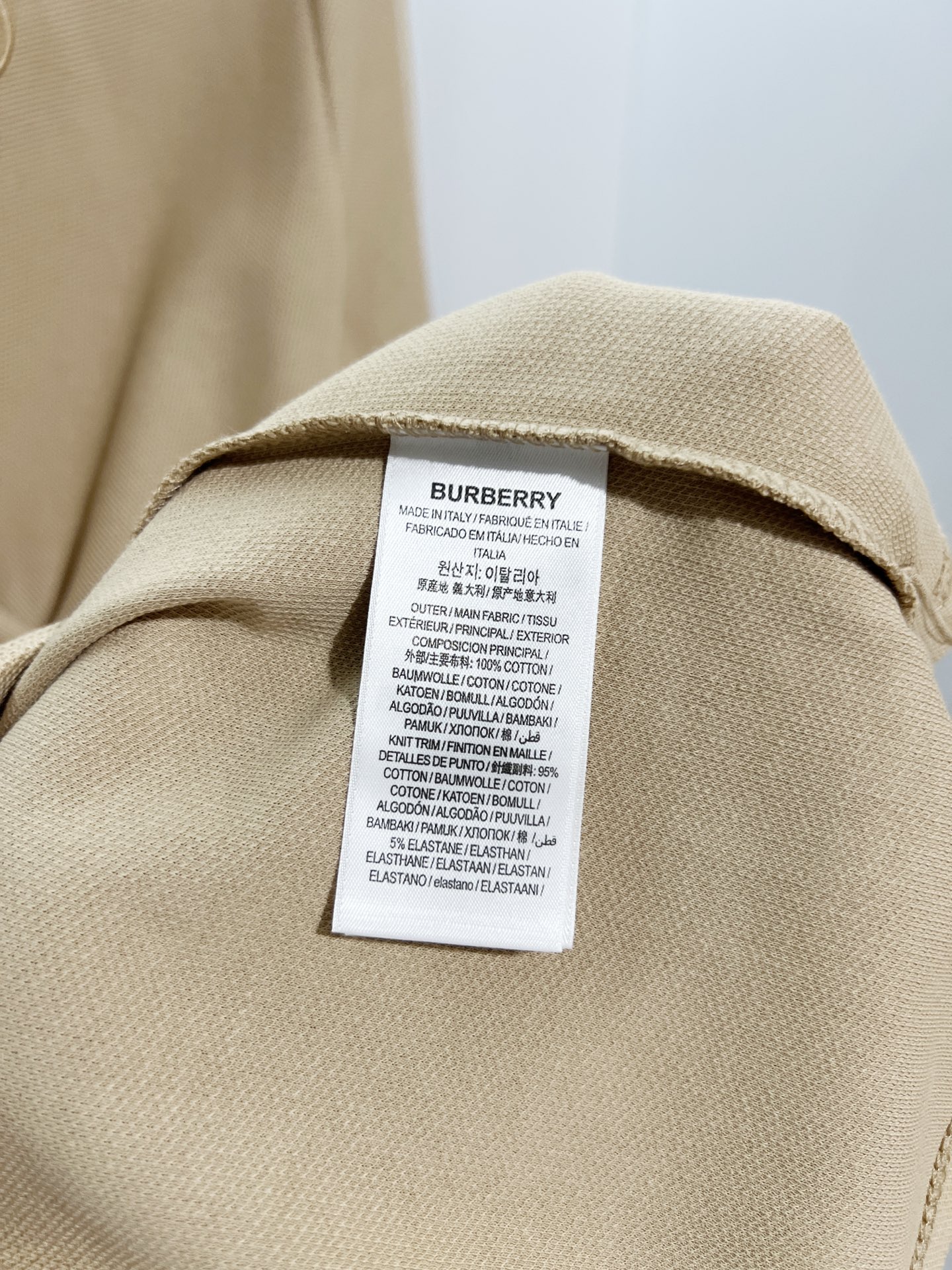 这款衣服是AAAAA 1:1 质量 (非常棒). 使用了和原版一模一样的材料. 商标部分也保持了和巴宝莉/Burberry一样. 图片拍摄是实物衣服拍摄, 您所收到的实物保证和我们图片一模一样.