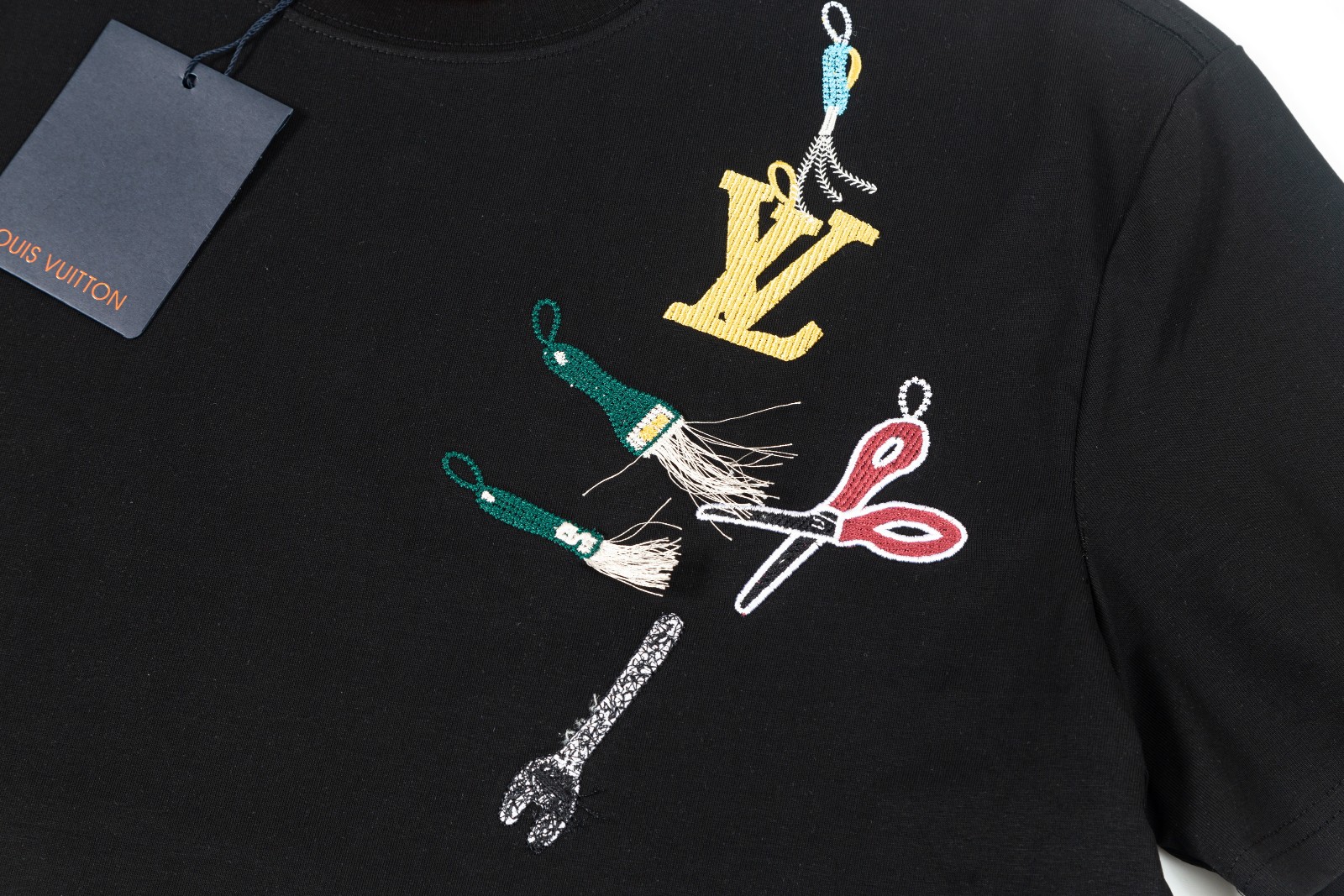 这款衣服是AAAAA 1:1 质量 (非常棒). 使用了和原版一模一样的材料. 商标部分也保持了和路易威登/Louis Vuitton一样. 图片拍摄是实物衣服拍摄, 您所收到的实物保证和我们图片一模一样.