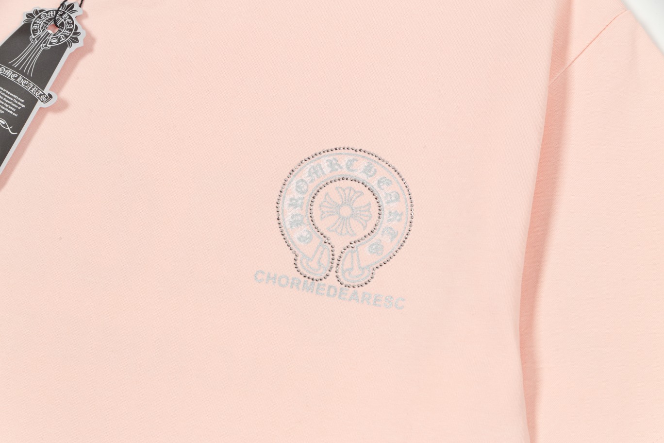 这款衣服是AAAAA 1:1 质量 (非常棒). 使用了和原版一模一样的材料. 商标部分也保持了和克罗心/Chrome Hearts一样. 图片拍摄是实物衣服拍摄, 您所收到的实物保证和我们图片一模一样.