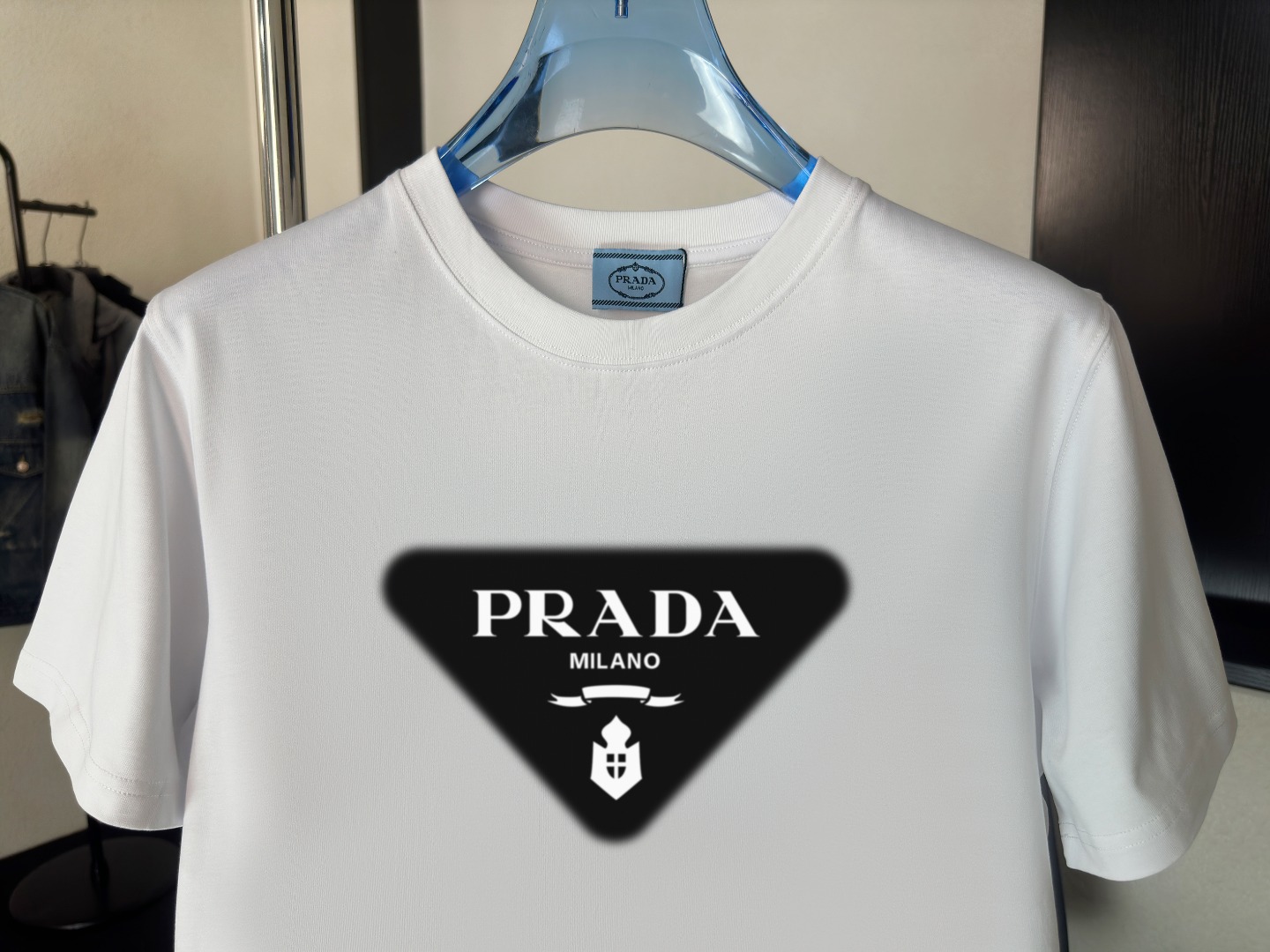 这款衣服是AAAAA 1:1 质量 (非常棒). 使用了和原版一模一样的材料. 商标部分也保持了和普拉达/Prada一样. 图片拍摄是实物衣服拍摄, 您所收到的实物保证和我们图片一模一样.