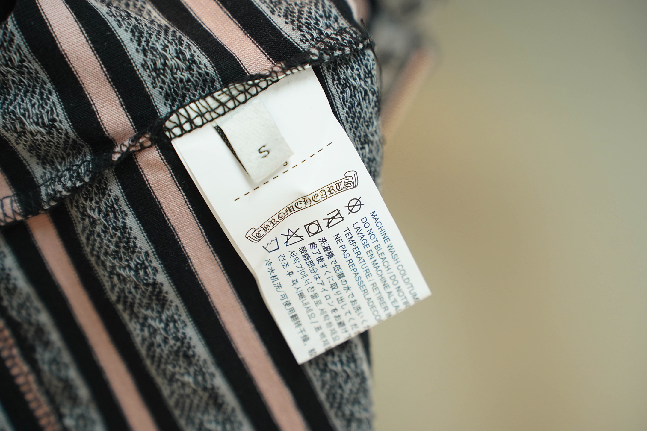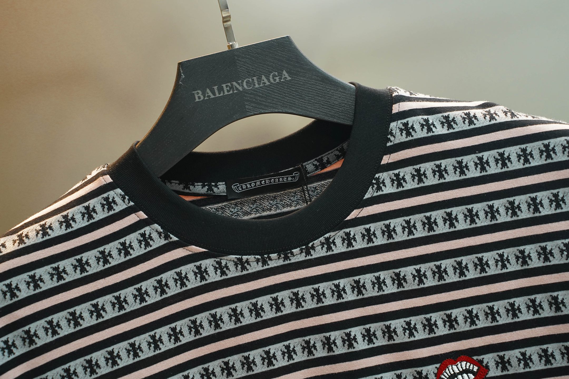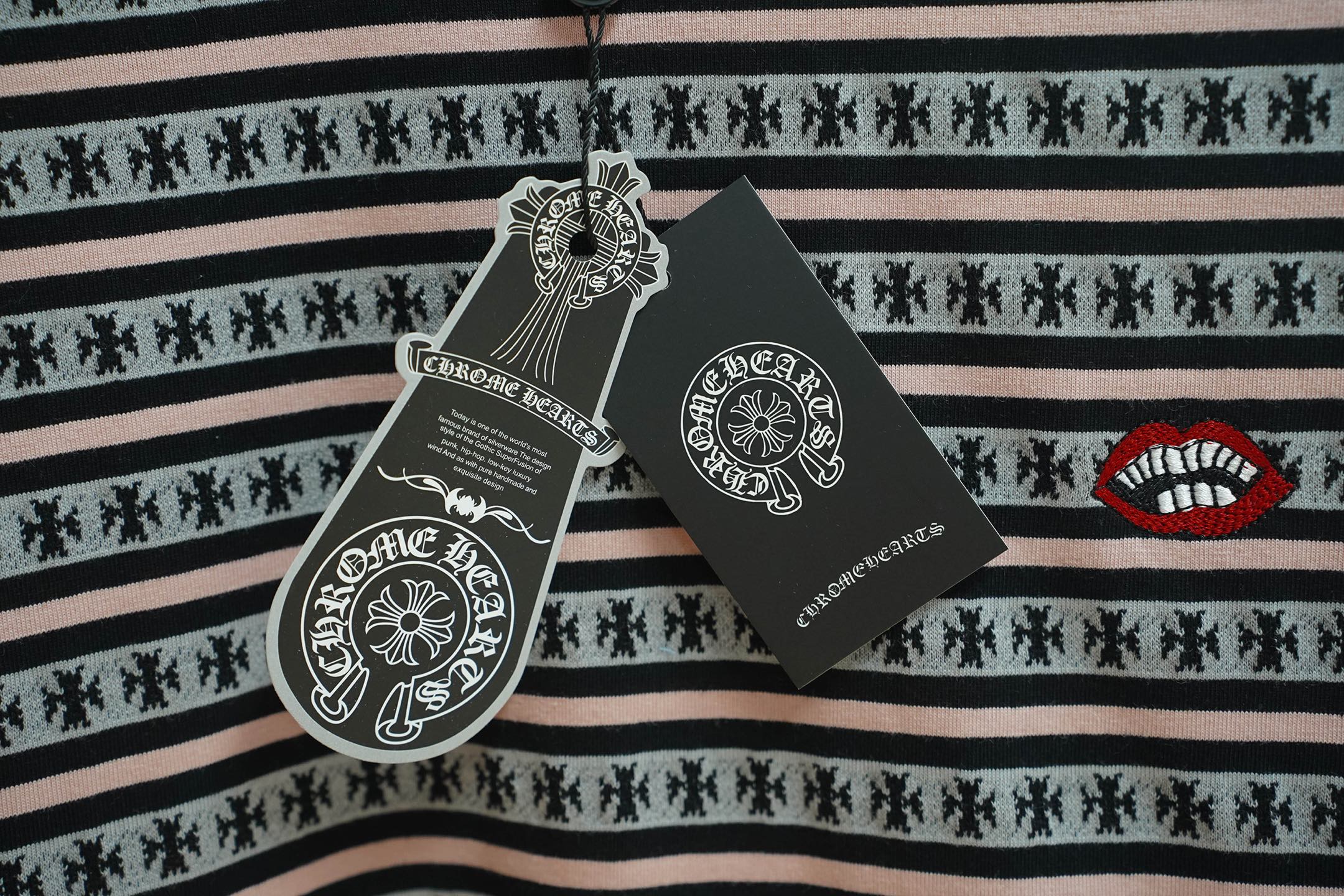 这款衣服是AAAAA 1:1 质量 (非常棒). 使用了和原版一模一样的材料. 商标部分也保持了和克罗心/Chrome Hearts一样. 图片拍摄是实物衣服拍摄, 您所收到的实物保证和我们图片一模一样.
