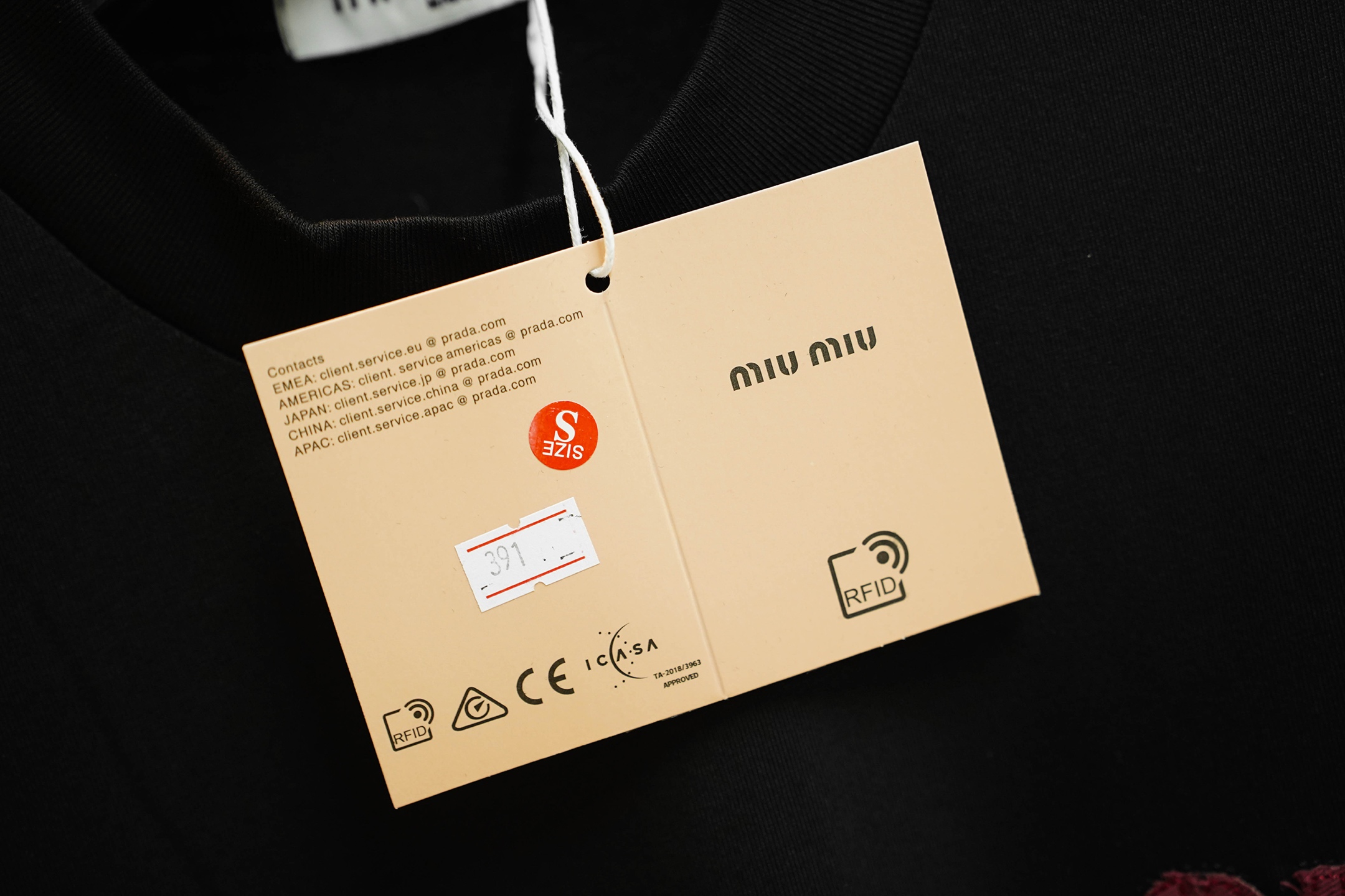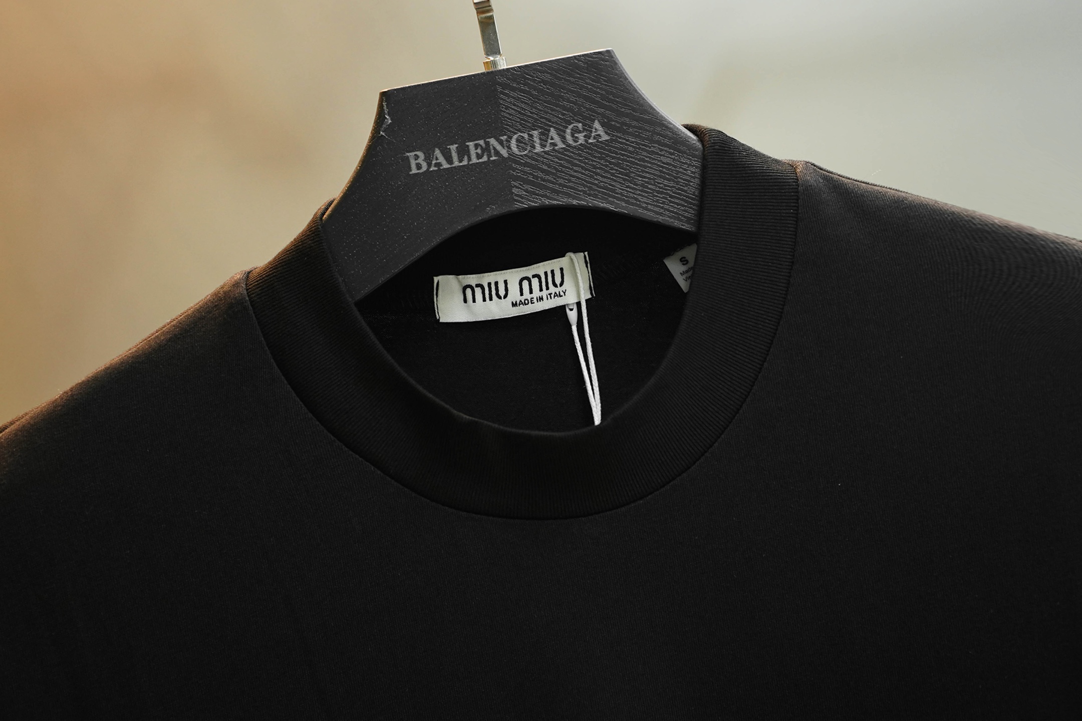 这款衣服是AAAAA 1:1 质量 (非常棒). 使用了和原版一模一样的材料. 商标部分也保持了和缪缪/Miu Miu一样. 图片拍摄是实物衣服拍摄, 您所收到的实物保证和我们图片一模一样.