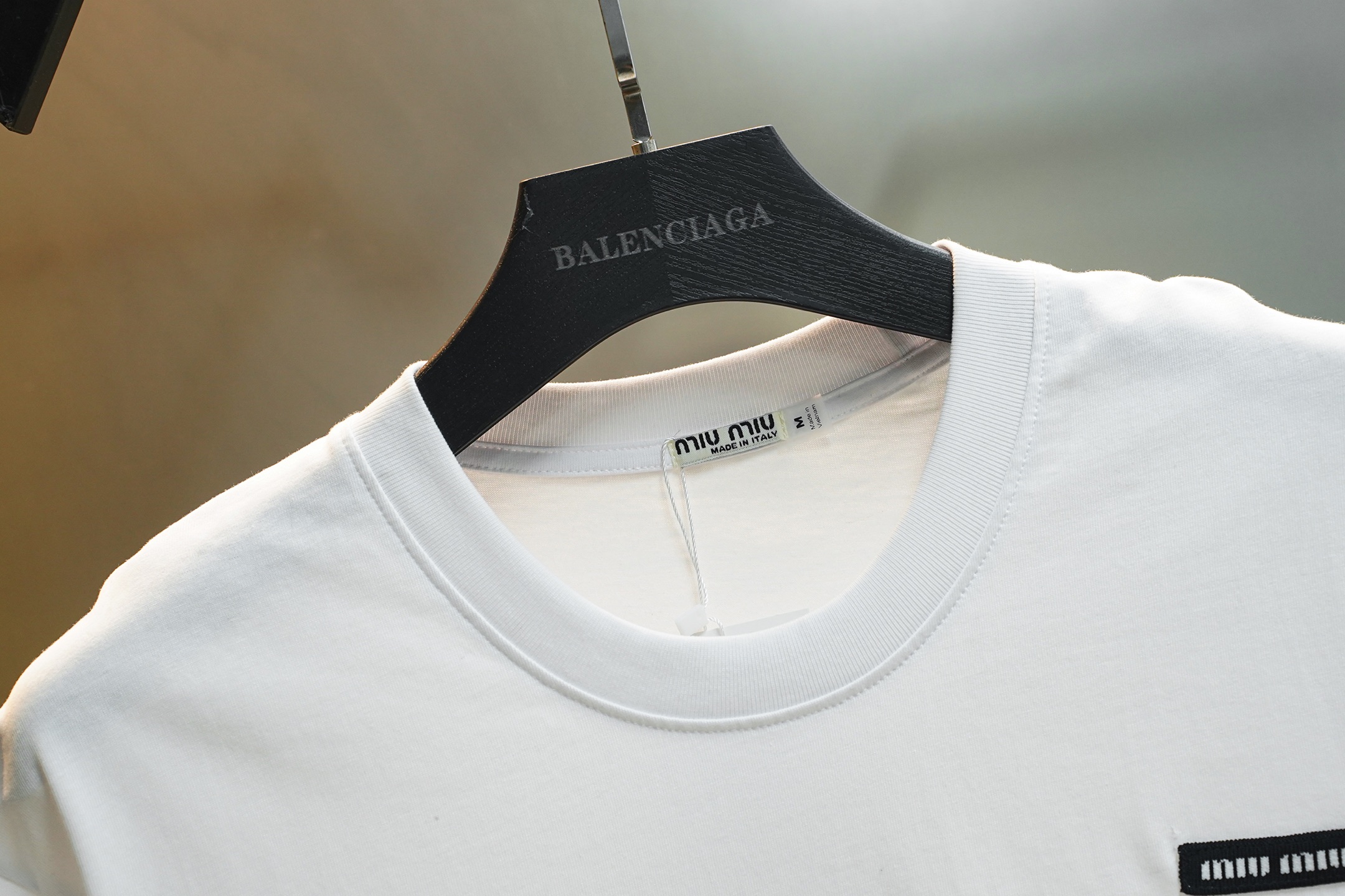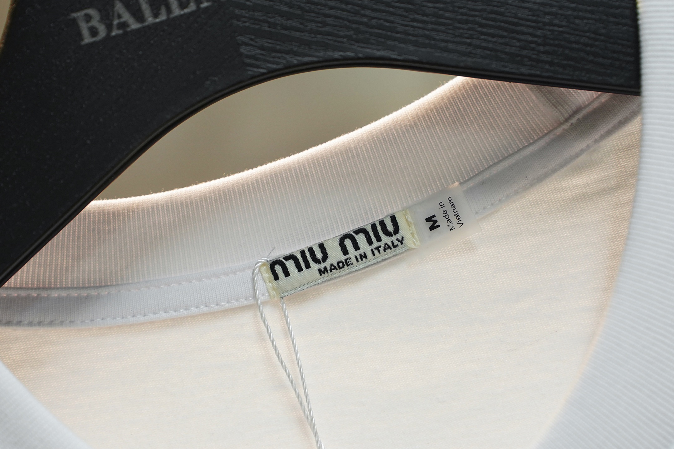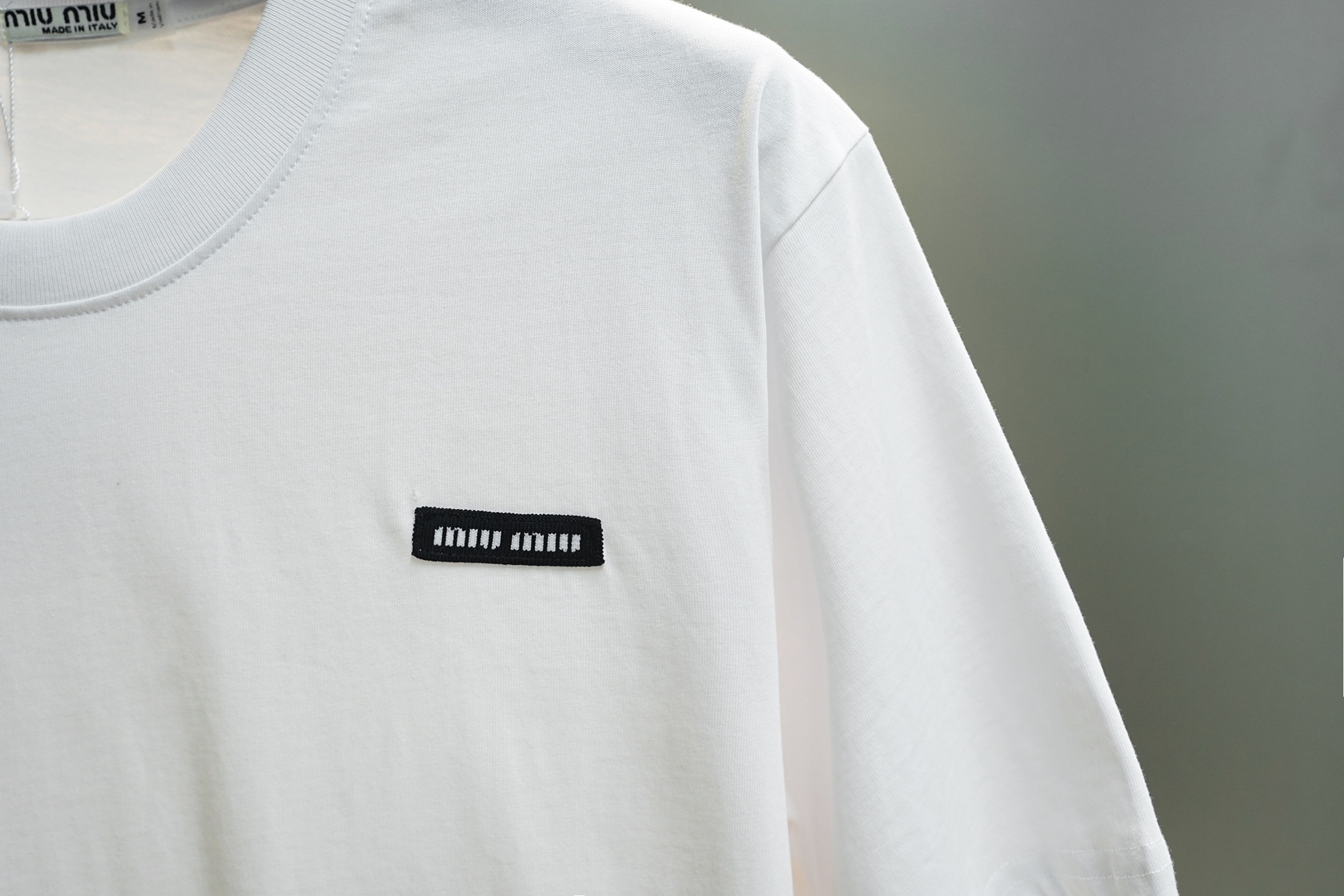这款衣服是AAAAA 1:1 质量 (非常棒). 使用了和原版一模一样的材料. 商标部分也保持了和缪缪/Miu Miu一样. 图片拍摄是实物衣服拍摄, 您所收到的实物保证和我们图片一模一样.