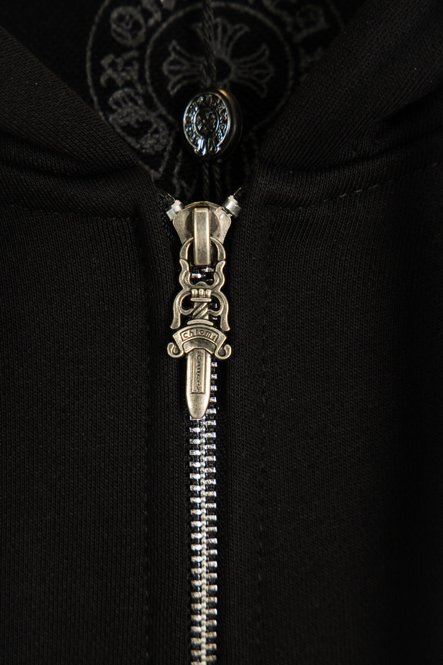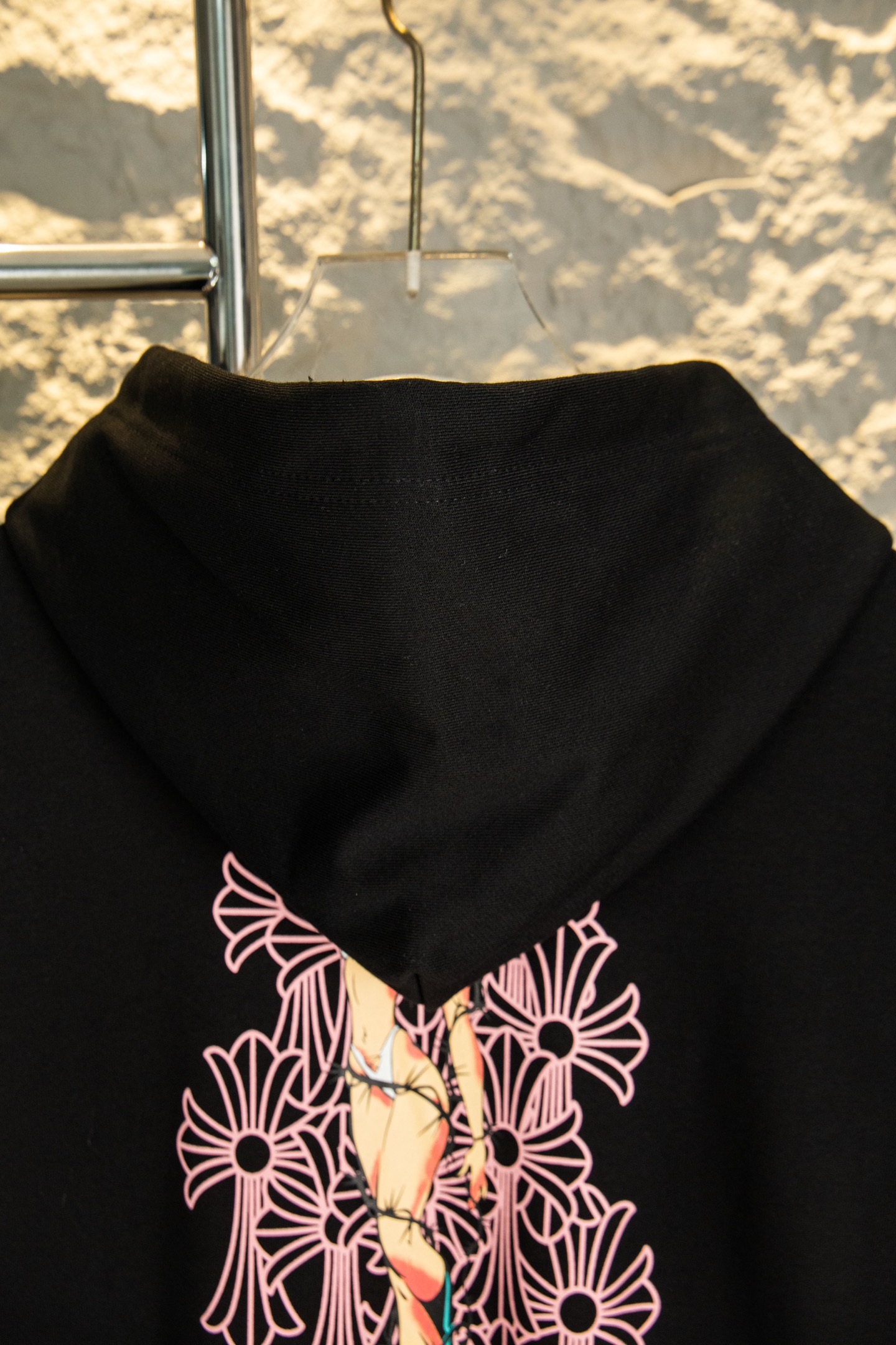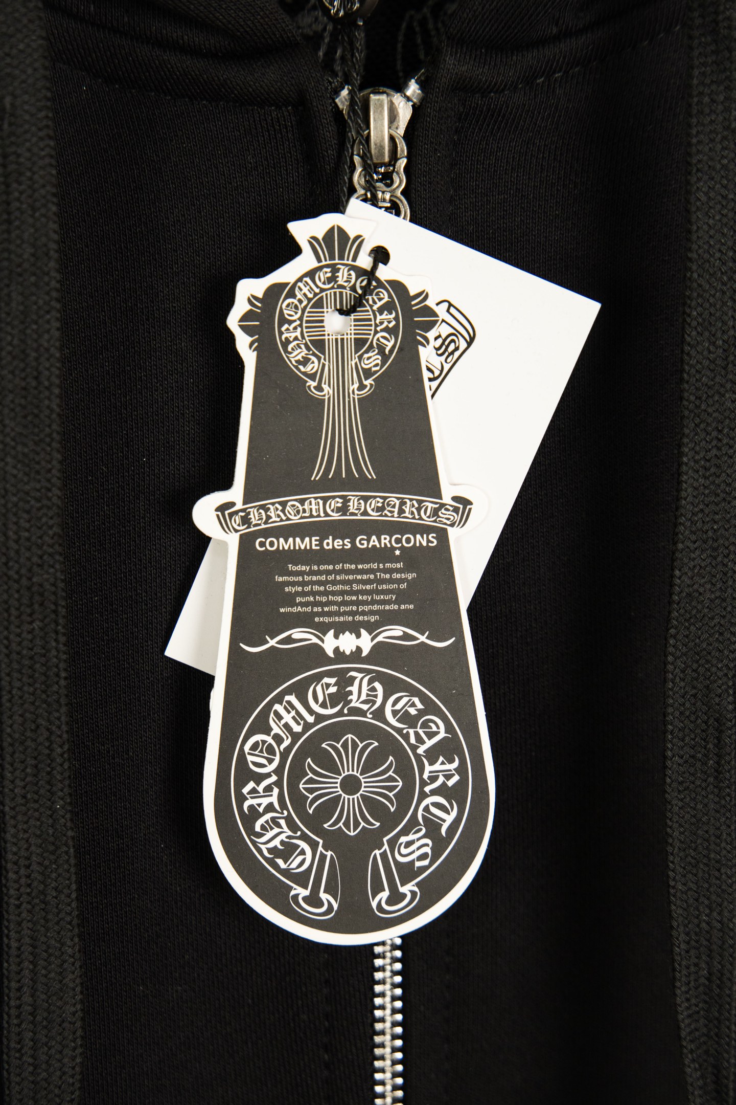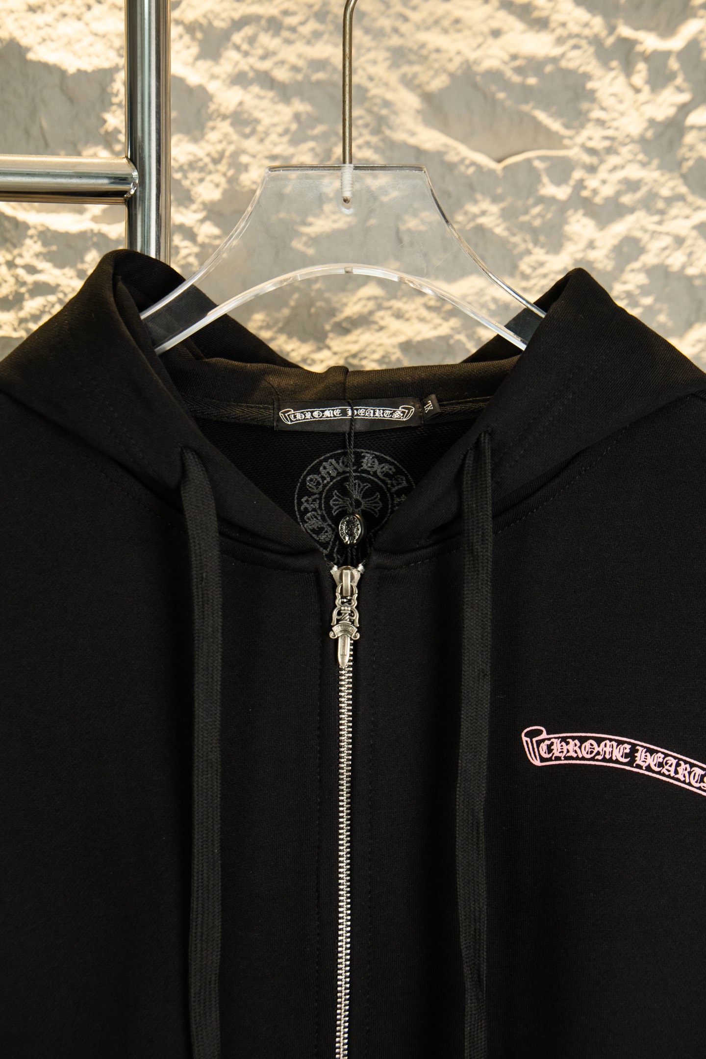 这款衣服是AAAAA 1:1 质量 (非常棒). 使用了和原版一模一样的材料. 商标部分也保持了和克罗心/Chrome Hearts一样. 图片拍摄是实物衣服拍摄, 您所收到的实物保证和我们图片一模一样.