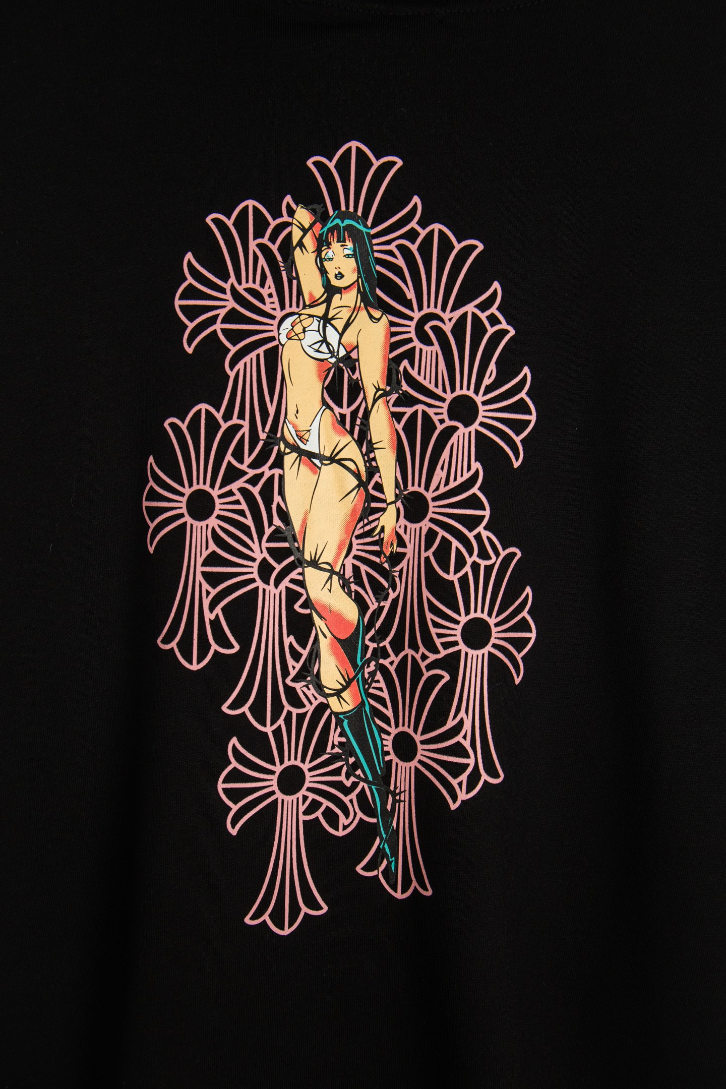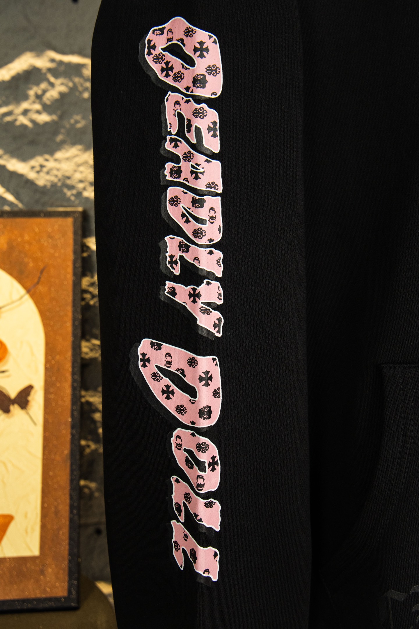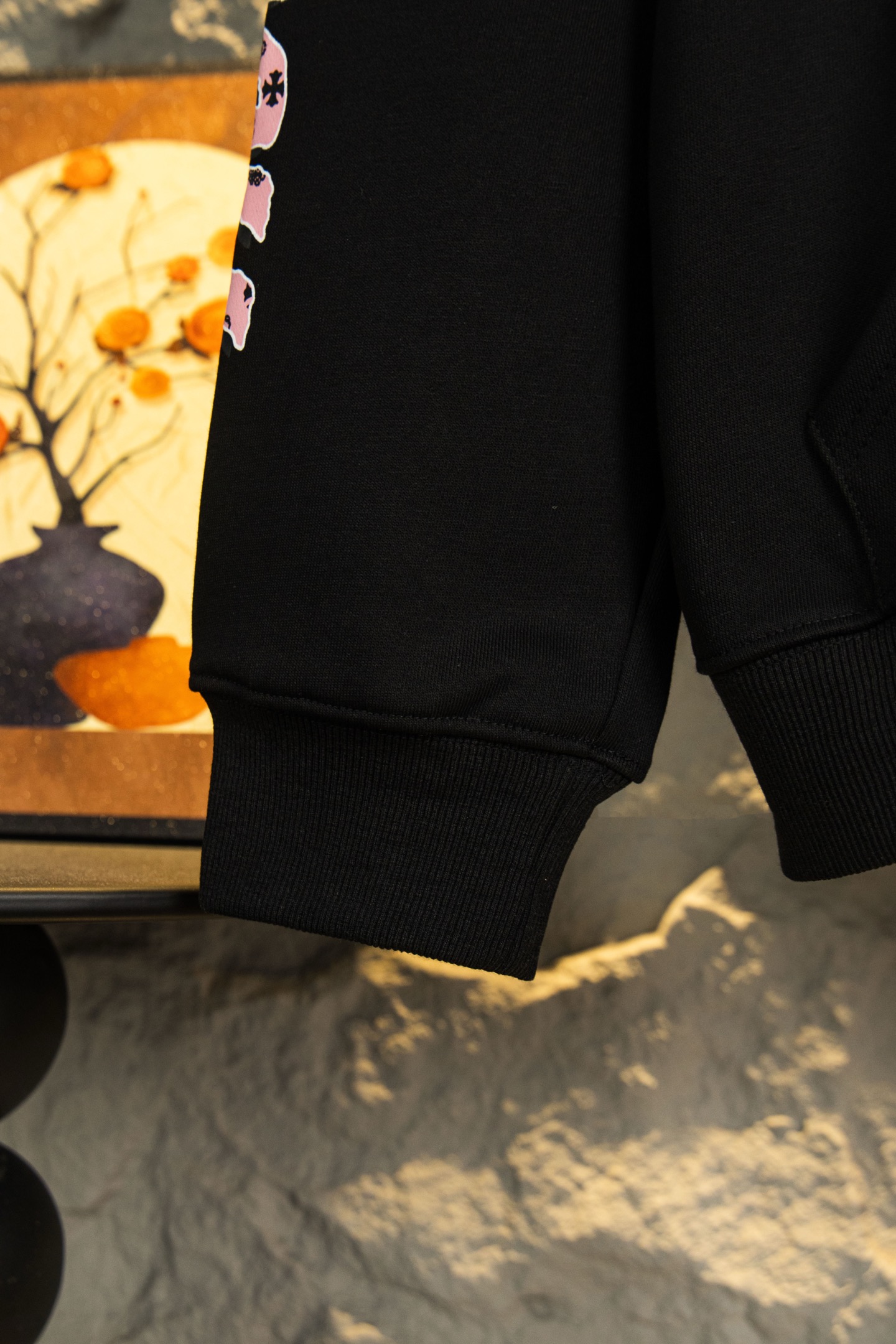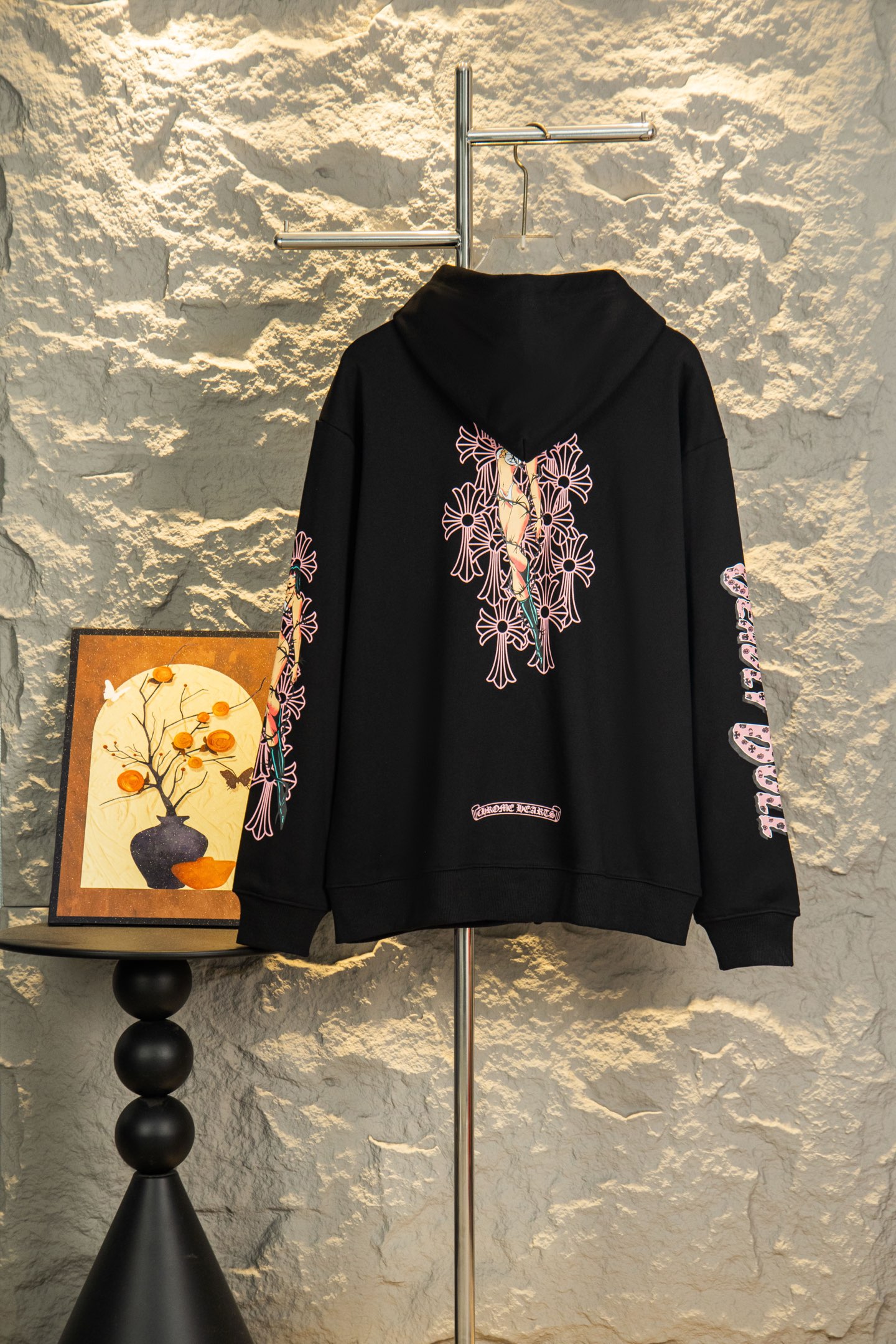 这款衣服是AAAAA 1:1 质量 (非常棒). 使用了和原版一模一样的材料. 商标部分也保持了和克罗心/Chrome Hearts一样. 图片拍摄是实物衣服拍摄, 您所收到的实物保证和我们图片一模一样.
